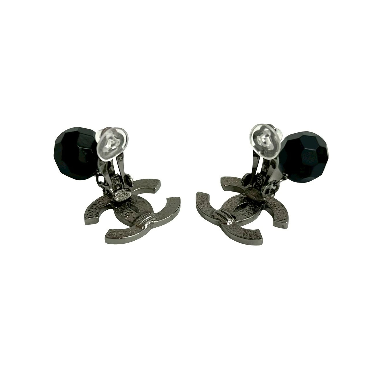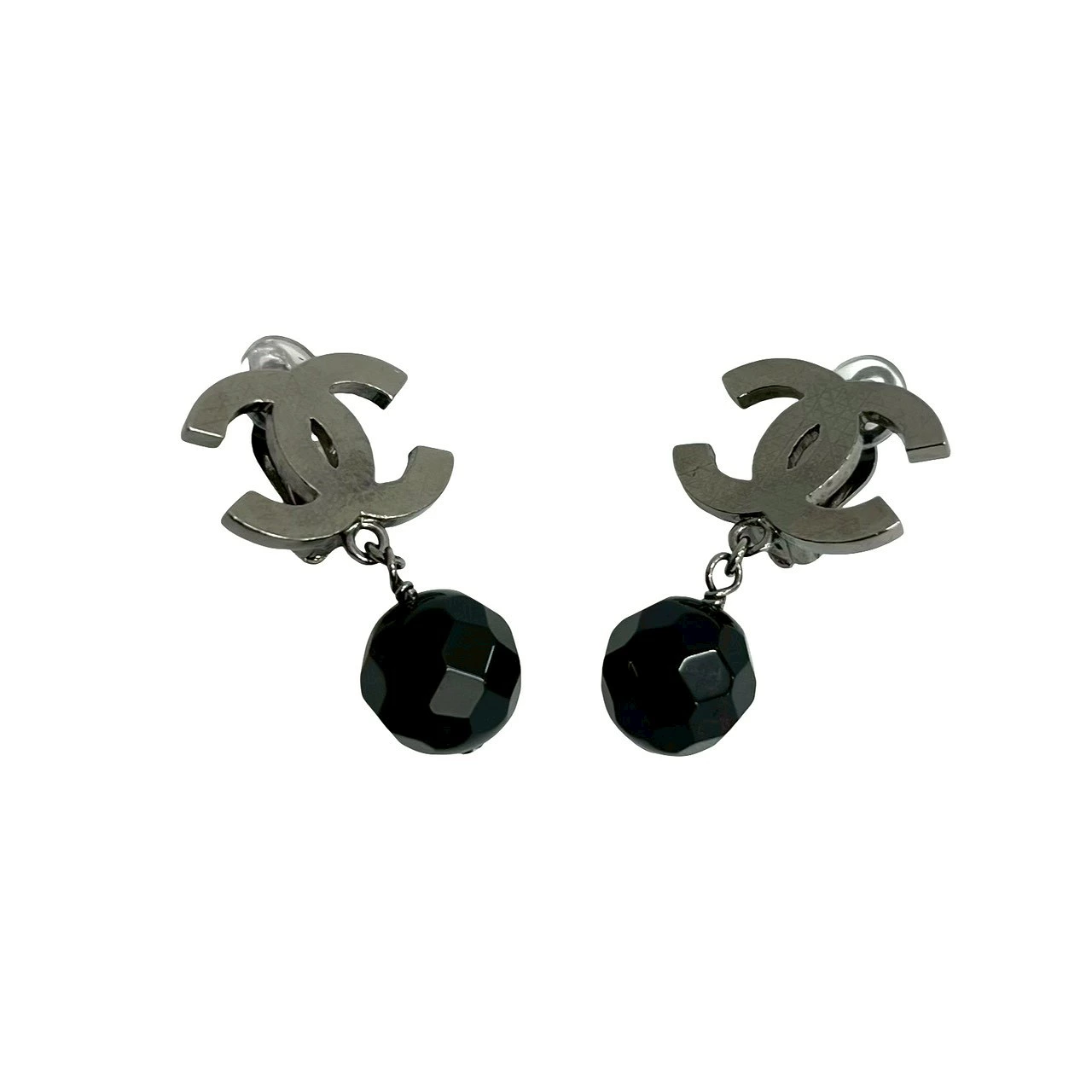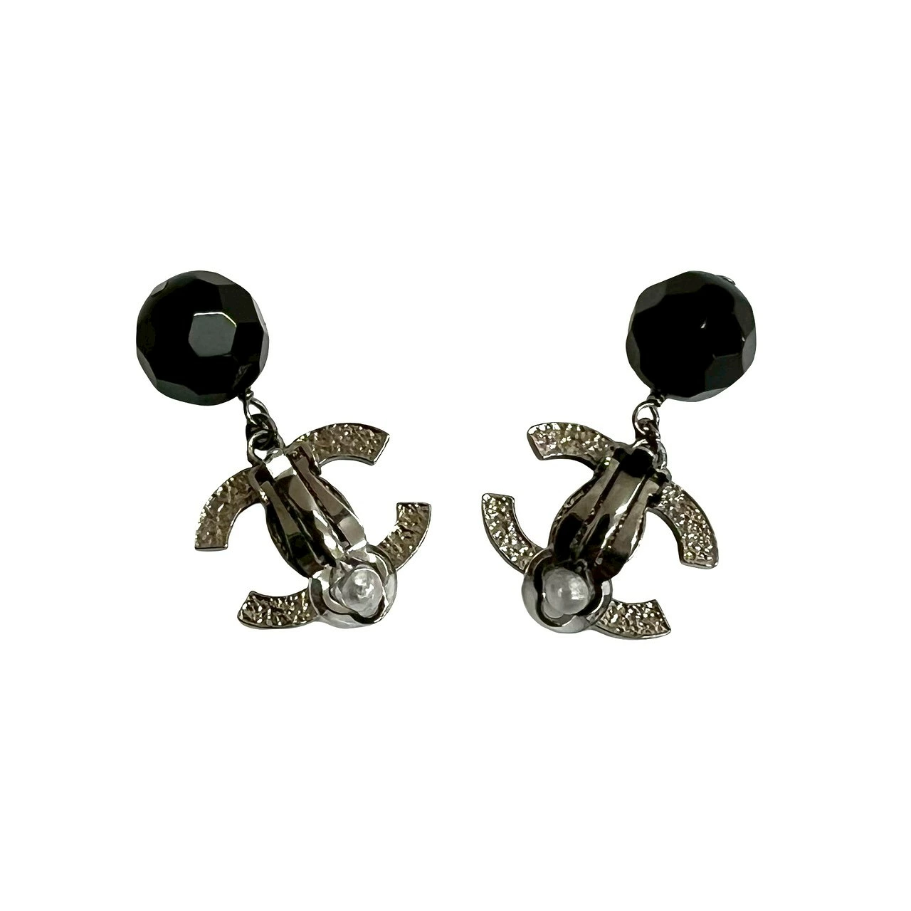 Excellent condition, with some comments. 11V CHANEL Coco Mark motif plated earrings/ear cuffs, silver/black, accessory, 75134 [Pre-owned]