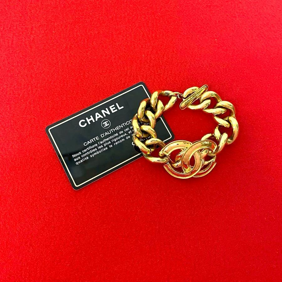 Earn double points! Excellent condition, with comments. 94P CHANEL Coco Mark motif GP chain bracelet/bangle accessory, gold, 102-9. Pre-owned.