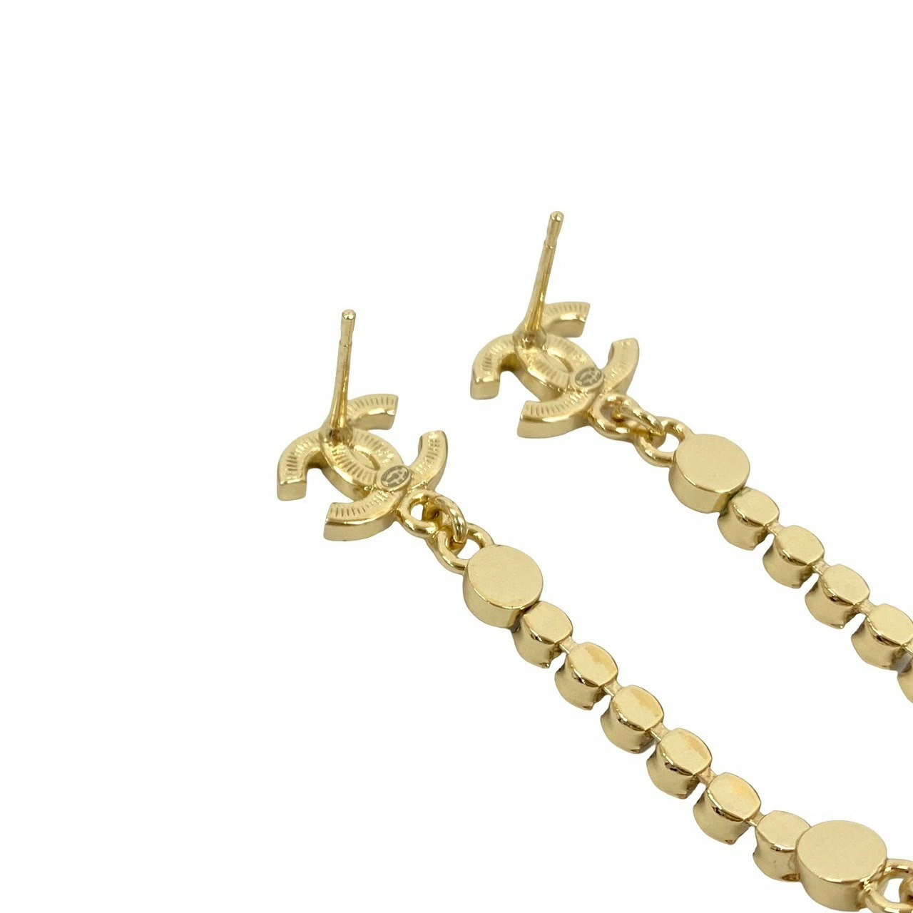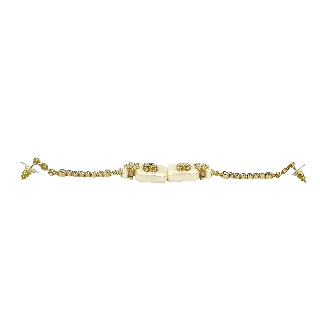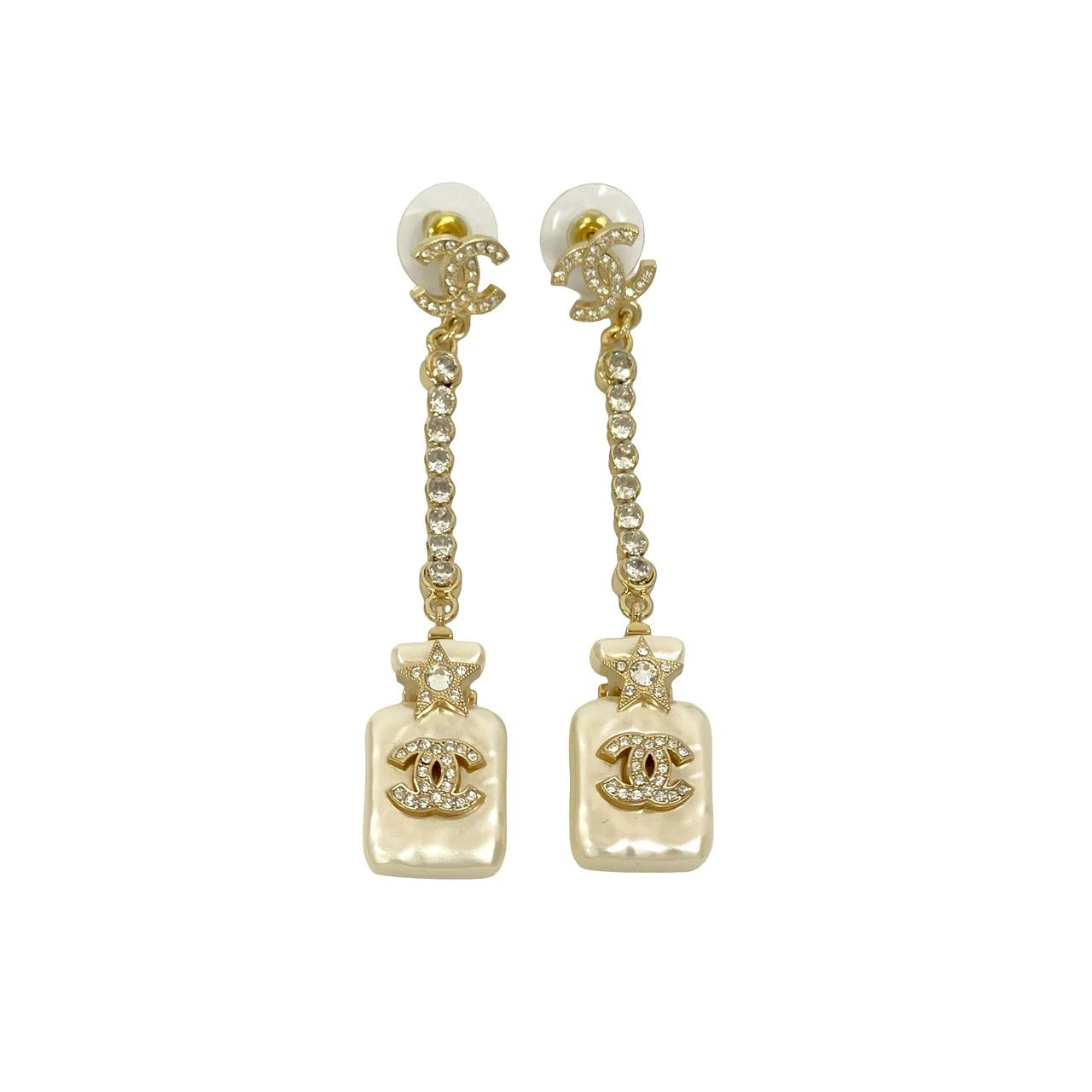 Excellent condition, with some comments. B23S CHANEL Perfume Bottle Swing Earrings with Coco Mark and Faux Pearls, Gold, 89817 [Pre-owned]