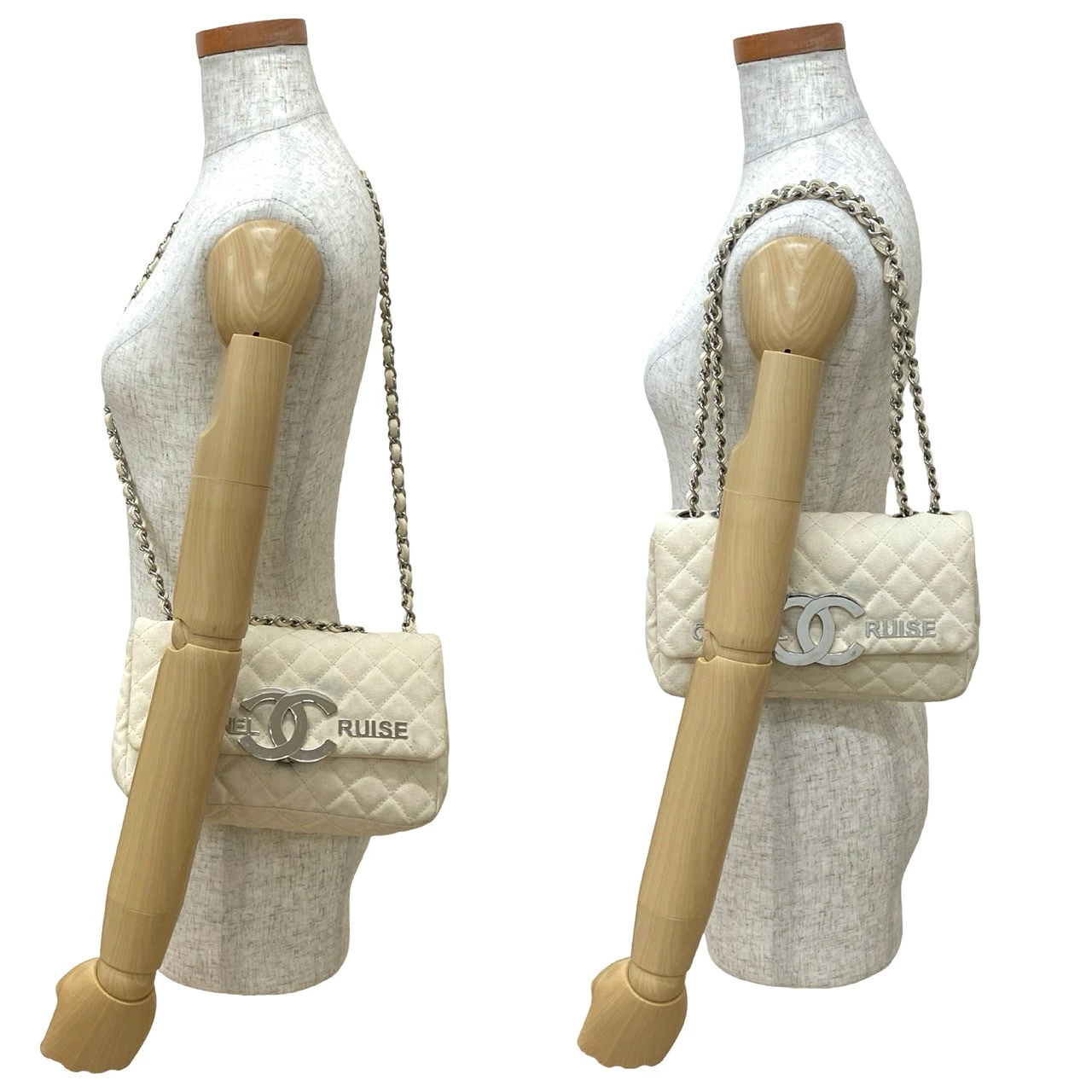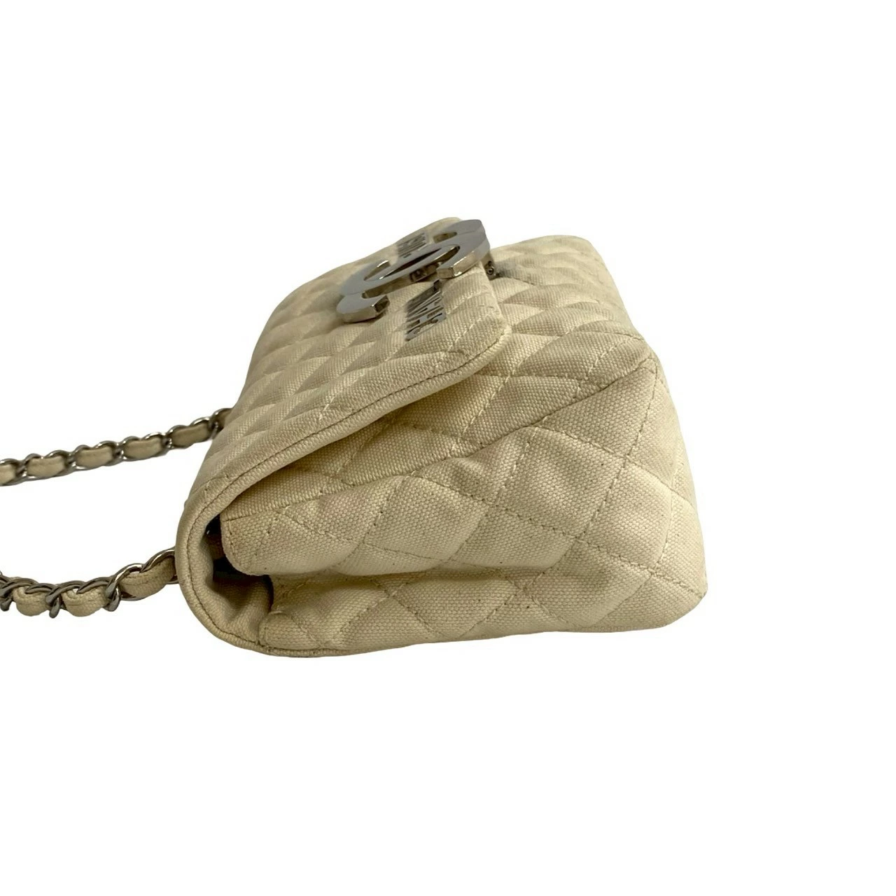 Earn double points! Excellent condition, sticker included, CHANEL Cruise Collection Matelasse Coco Mark Canvas Shoulder Bag, Ivory, 415-9 (Pre-owned)
