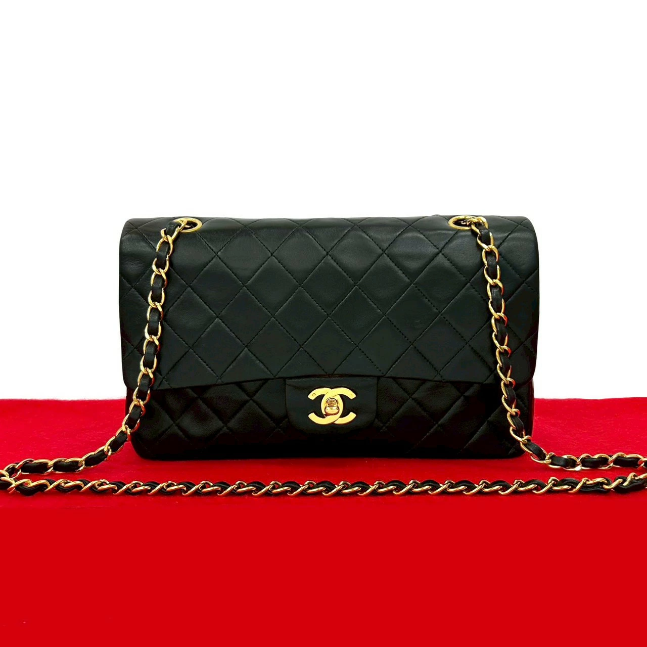 Excellent condition, with sticker, #2 CHANEL Matelasse Double Flap Coco Mark Lambskin Leather Chain Shoulder Bag, Black, 39868 (Pre-owned)