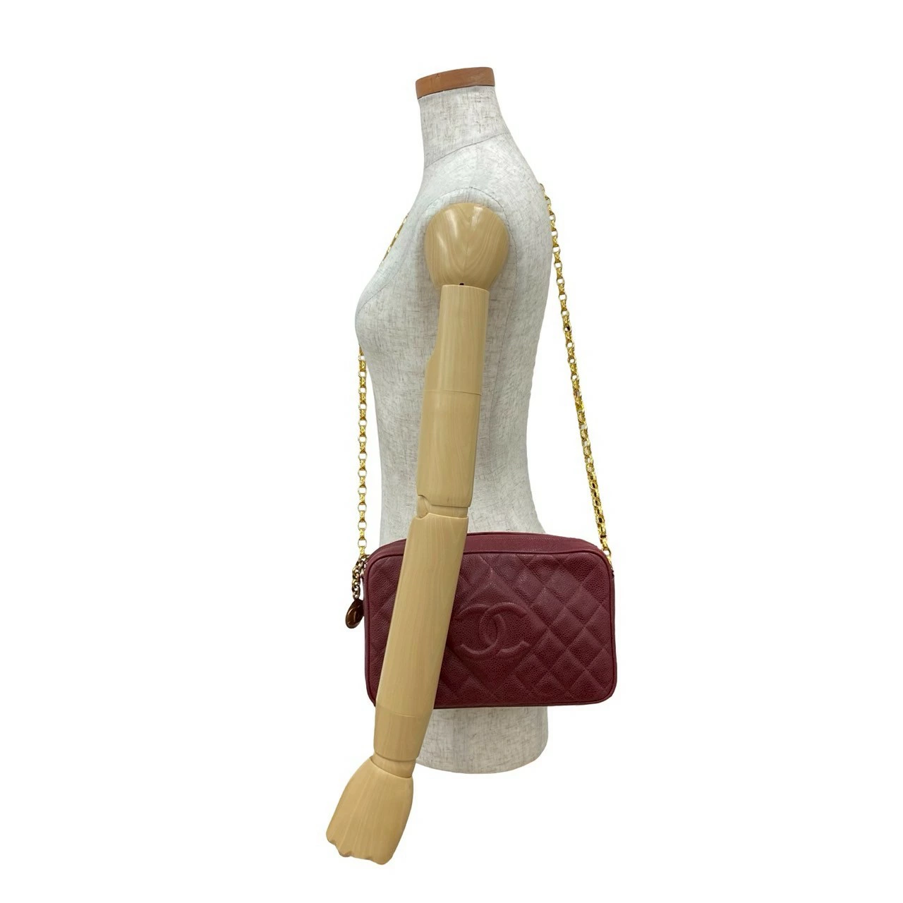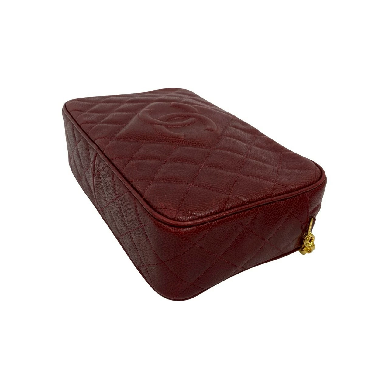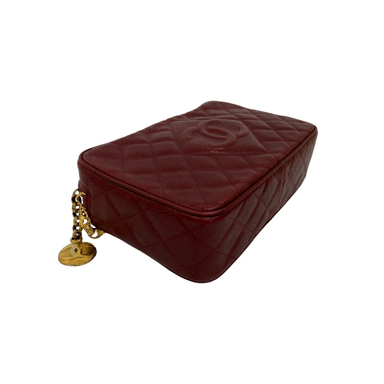 Double Points! Excellent Condition, Seal Included, Series 3 CHANEL Matelasse Coco Mark Caviar Leather Chain Shoulder Bag Pochette Bordeaux 57295 [Pre-owned]