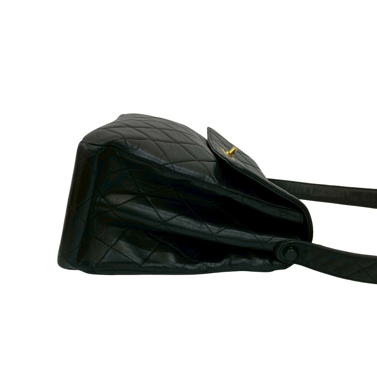 Earn double points! Excellent condition, sticker included, CHANEL Vintage Matelasse Coco Mark Lambskin Semi-One Shoulder Bag, Black, 88836 (Pre-owned)