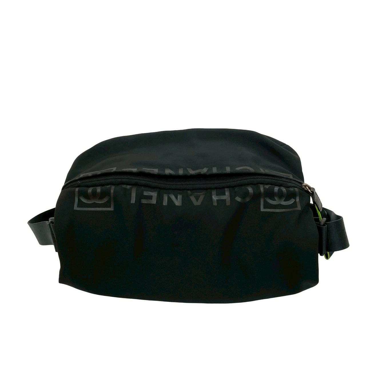 Excellent condition, sticker attached, CHANEL Sport Coco Mark logo, nylon, rubber, and leather shoulder/body bag, black, model 34688 (pre-owned)