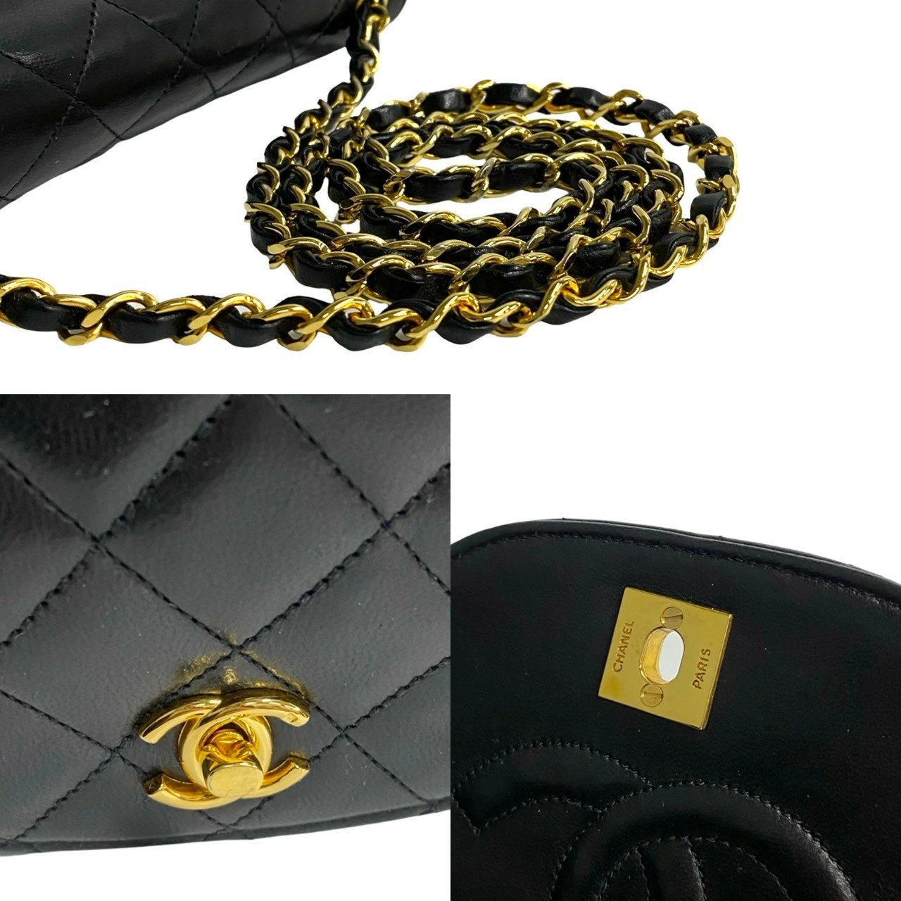 [Double Points] Excellent Condition, Sticker, Card Included, CHANEL Matelasse Coco Mark Lambskin Chain Shoulder Bag, Black, 21404 [Pre-owned]