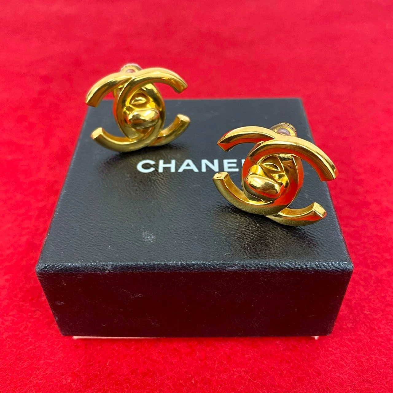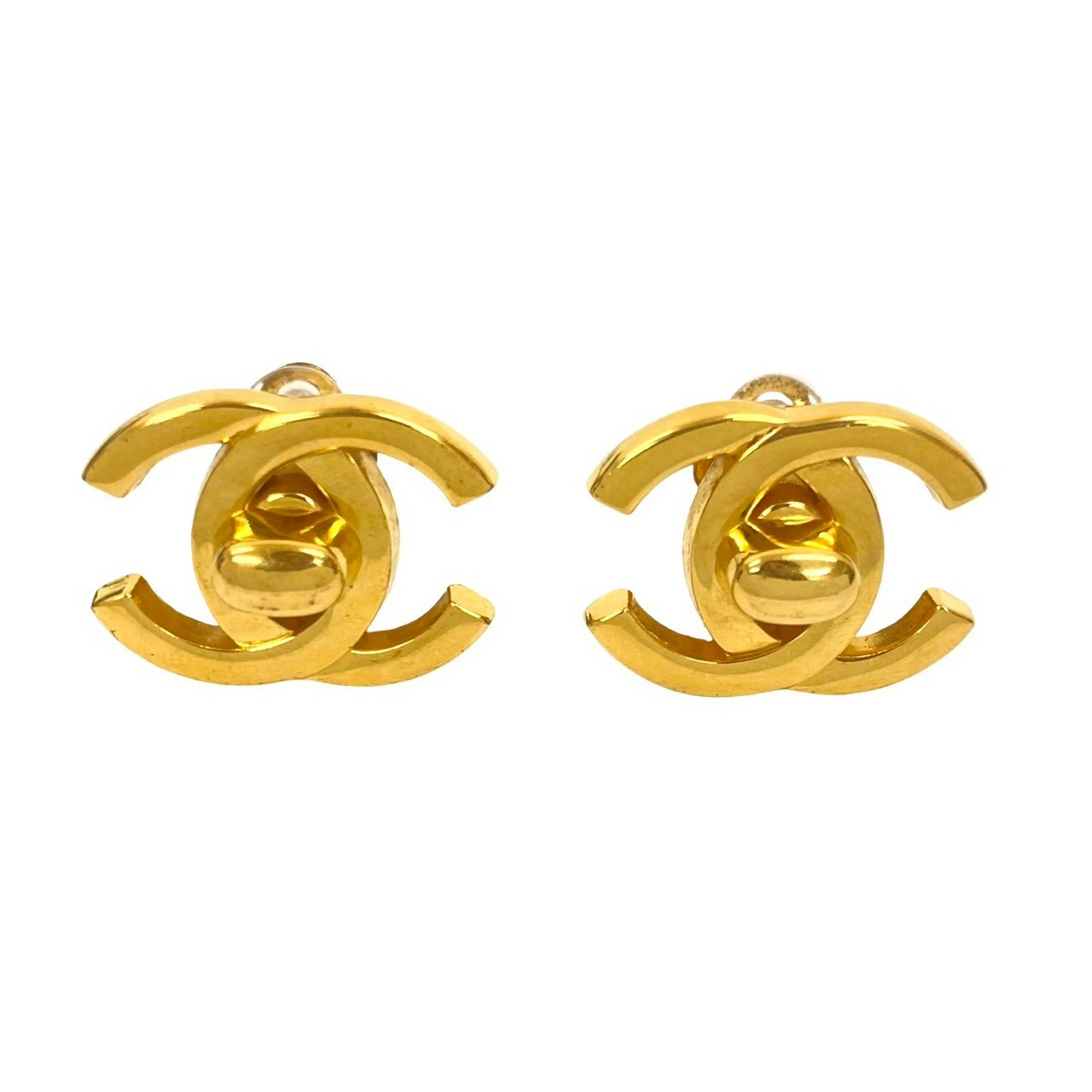 Excellent condition, with storage box and some marks. 95A CHANEL Coco Mark Turnlock Motif GP Earrings, Gold, 41458 [Pre-owned]