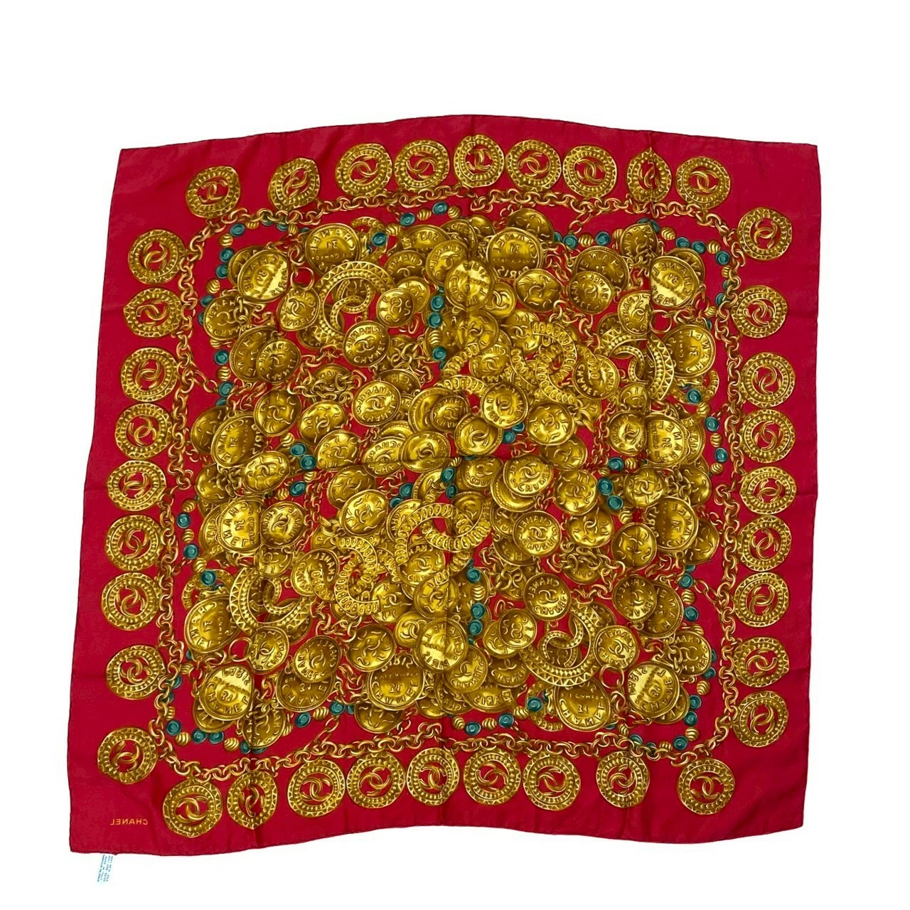 Earn double points! Excellent condition, rare CHANEL Coco Mark motif silk scarf, women's apparel, small item, red, item number 80108 (pre-owned).