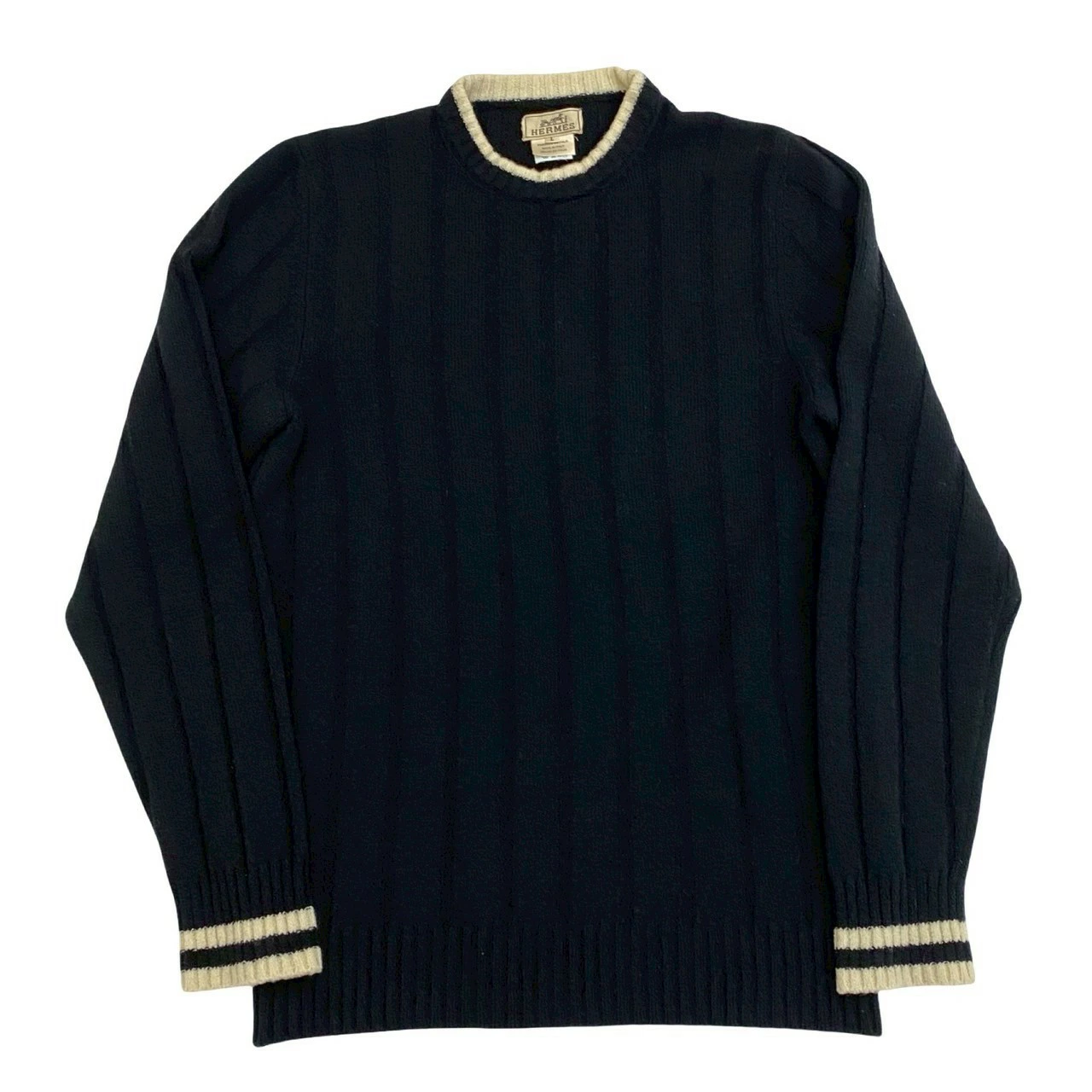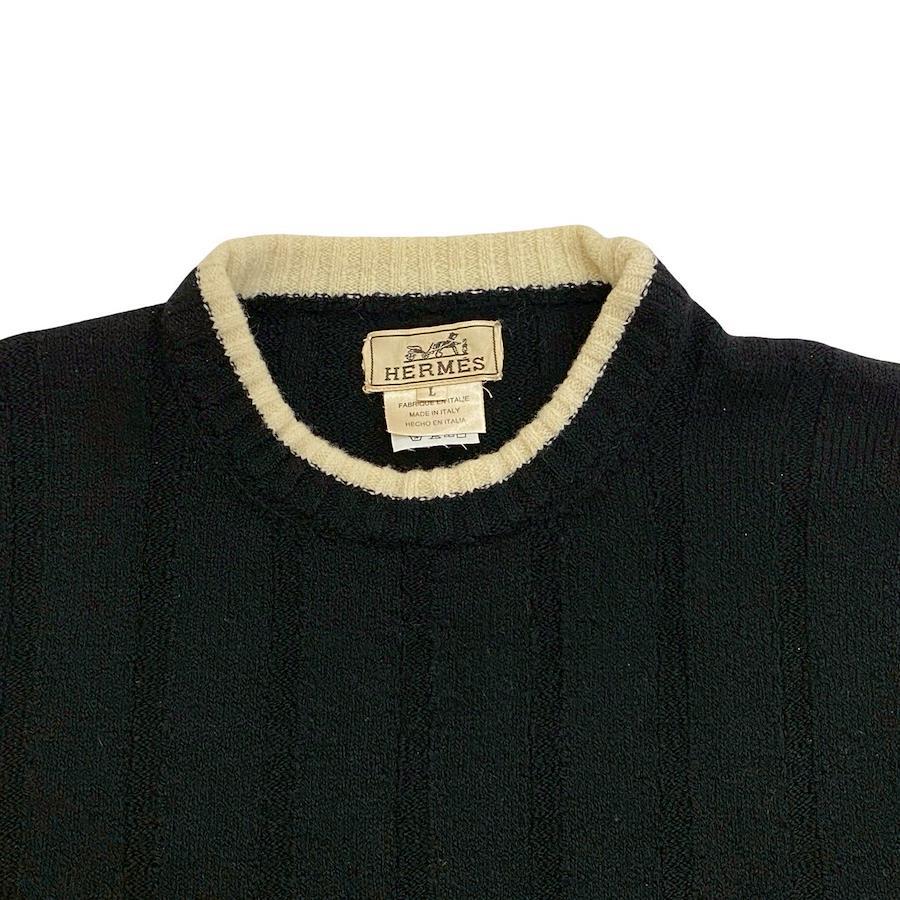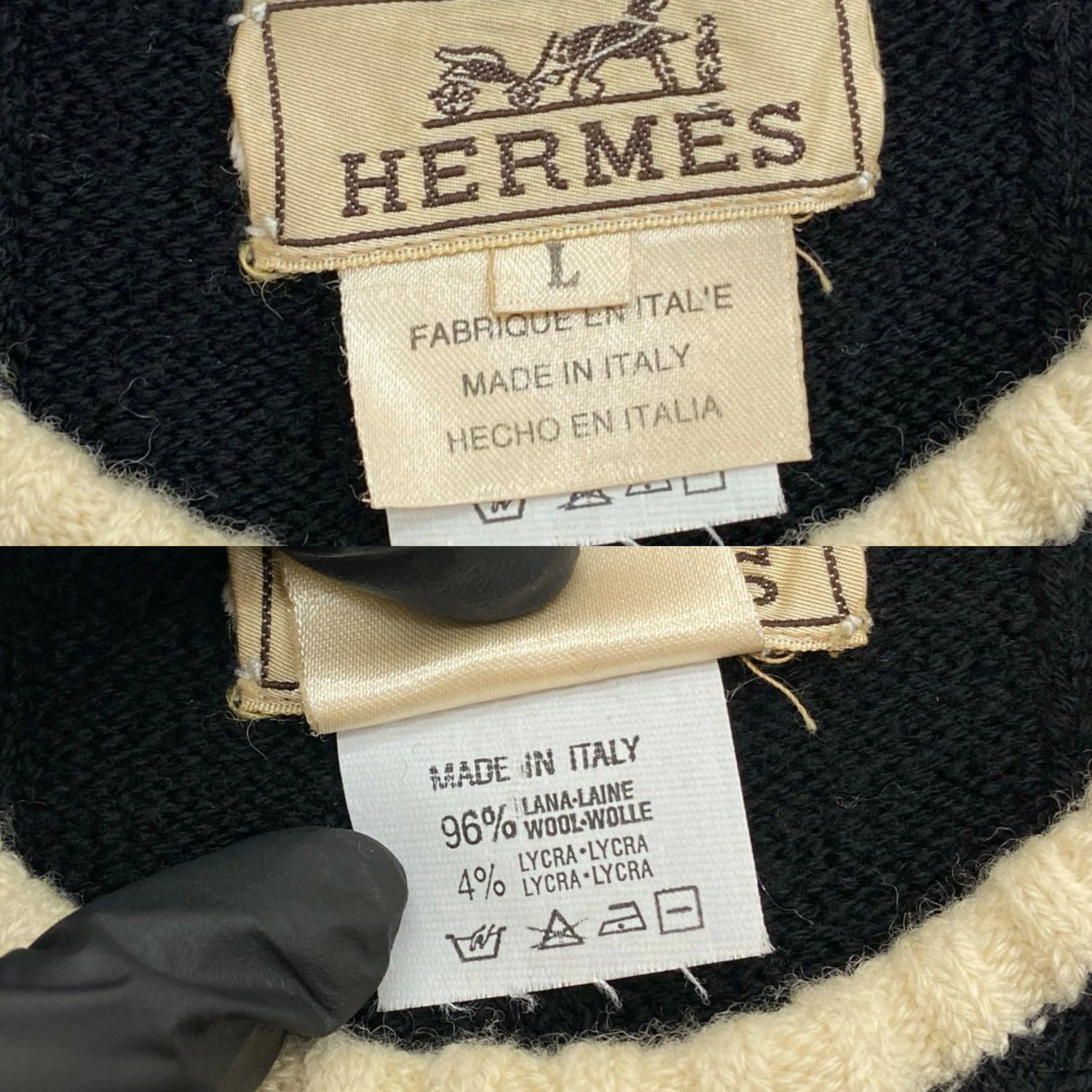 Very rare, mint condition HERMES wool and Lycra sweater, ribbed knit, crew neck, long sleeves, size L, men's, black and ivory, 42912 [pre-owned]