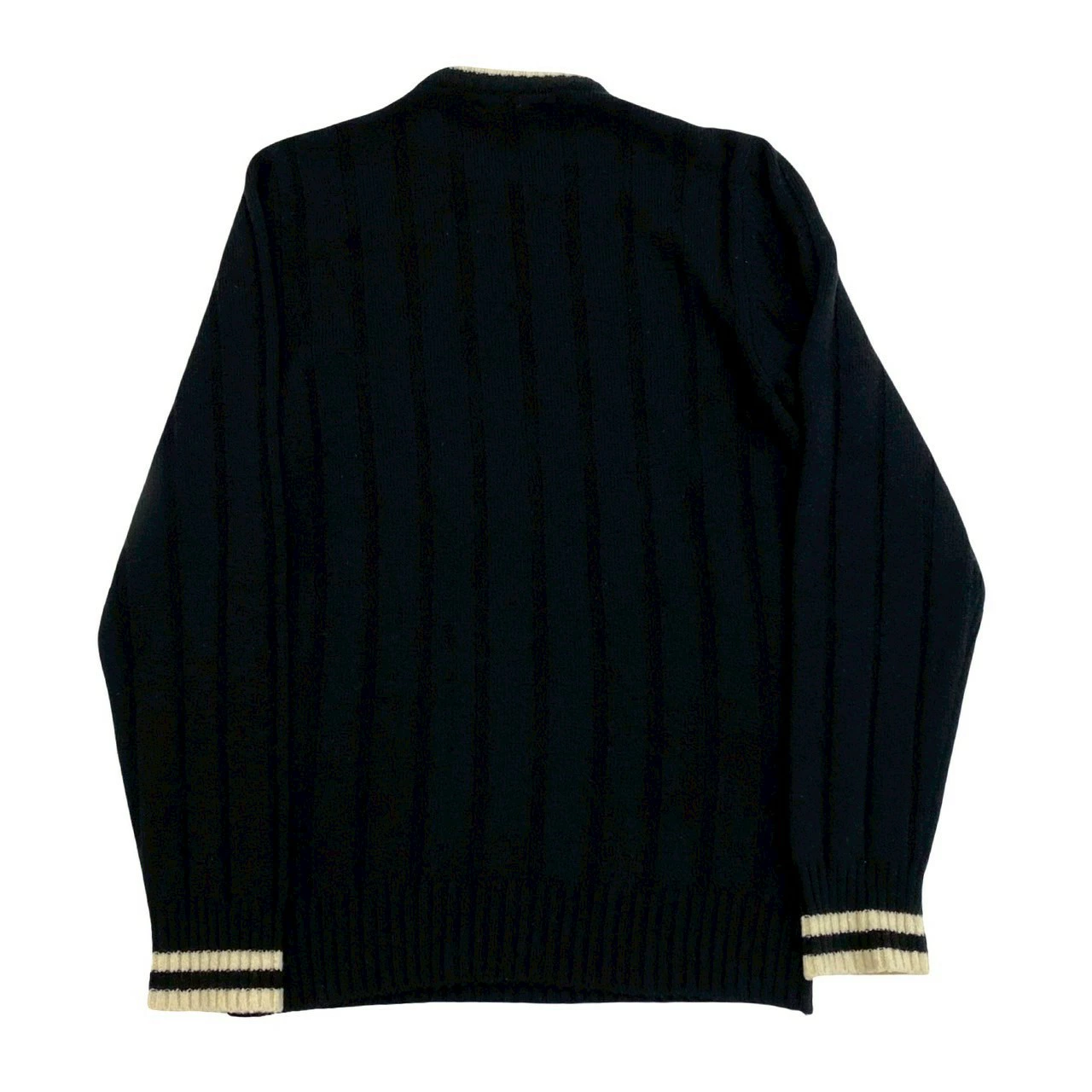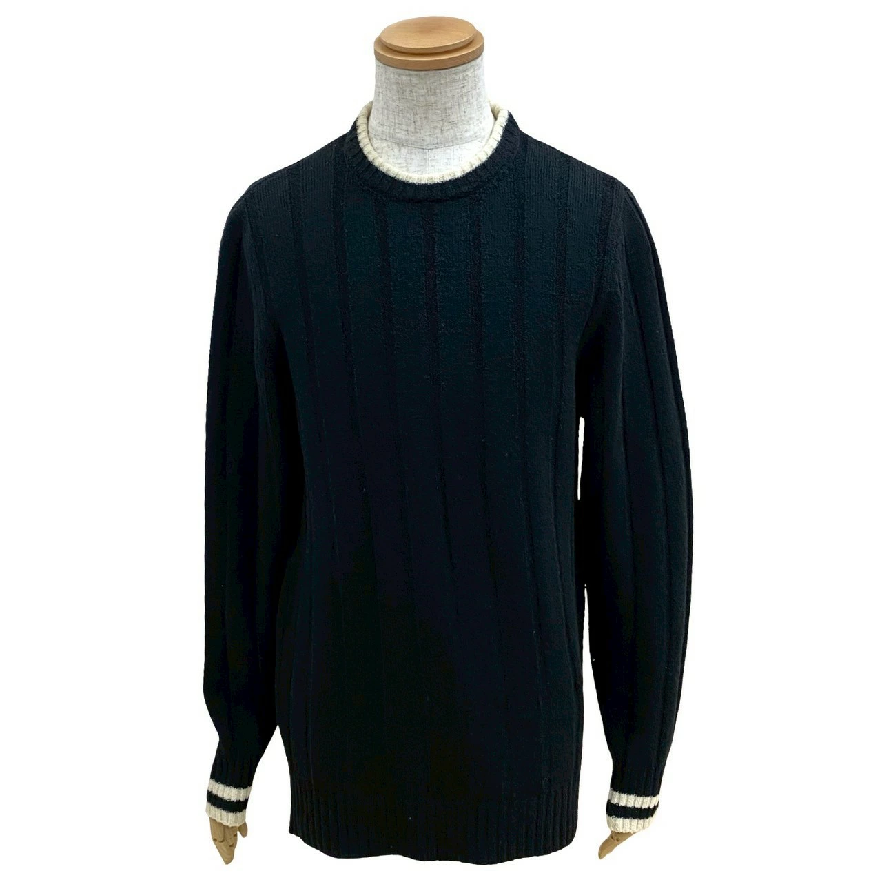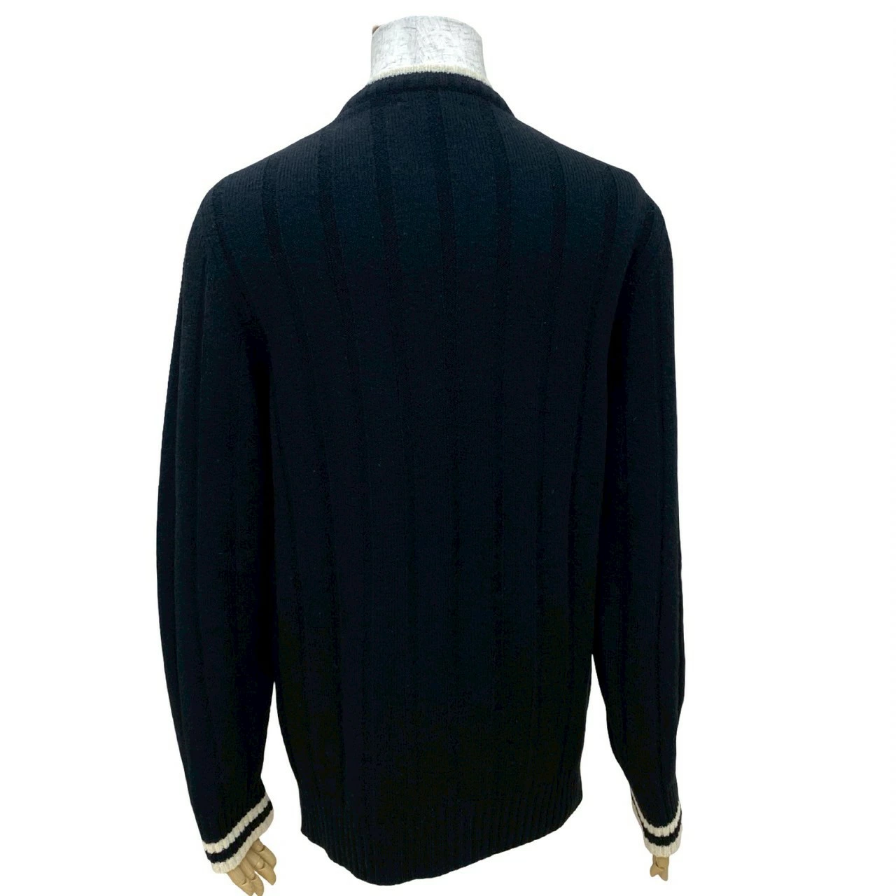 Very rare, mint condition HERMES wool and Lycra sweater, ribbed knit, crew neck, long sleeves, size L, men's, black and ivory, 42912 [pre-owned]