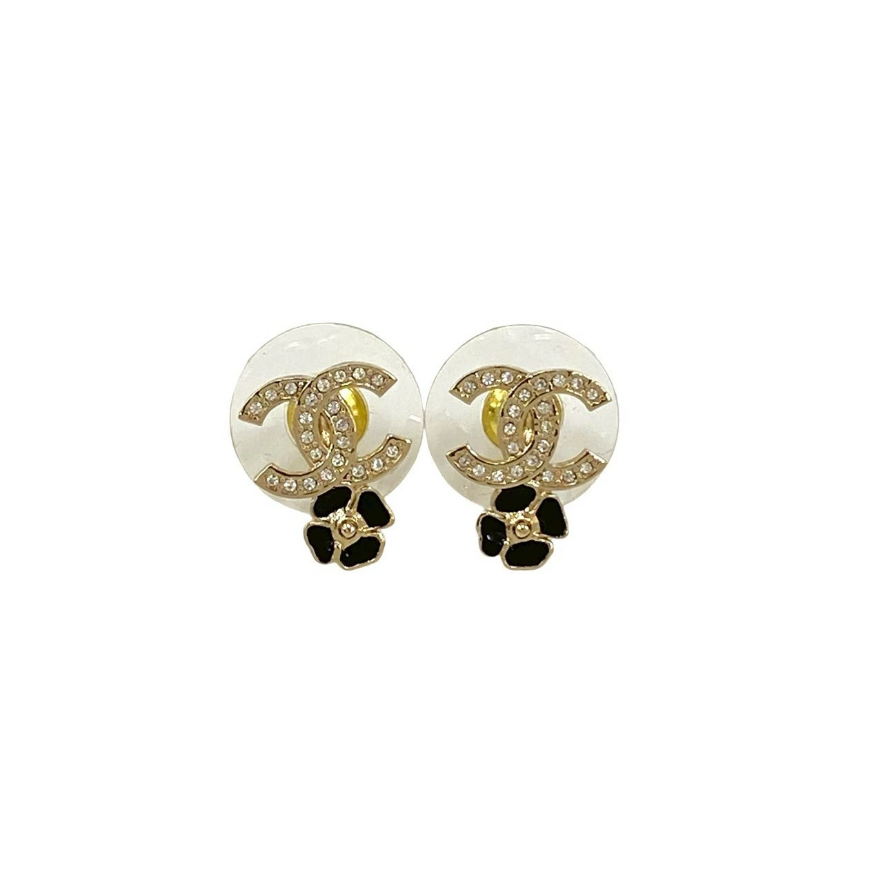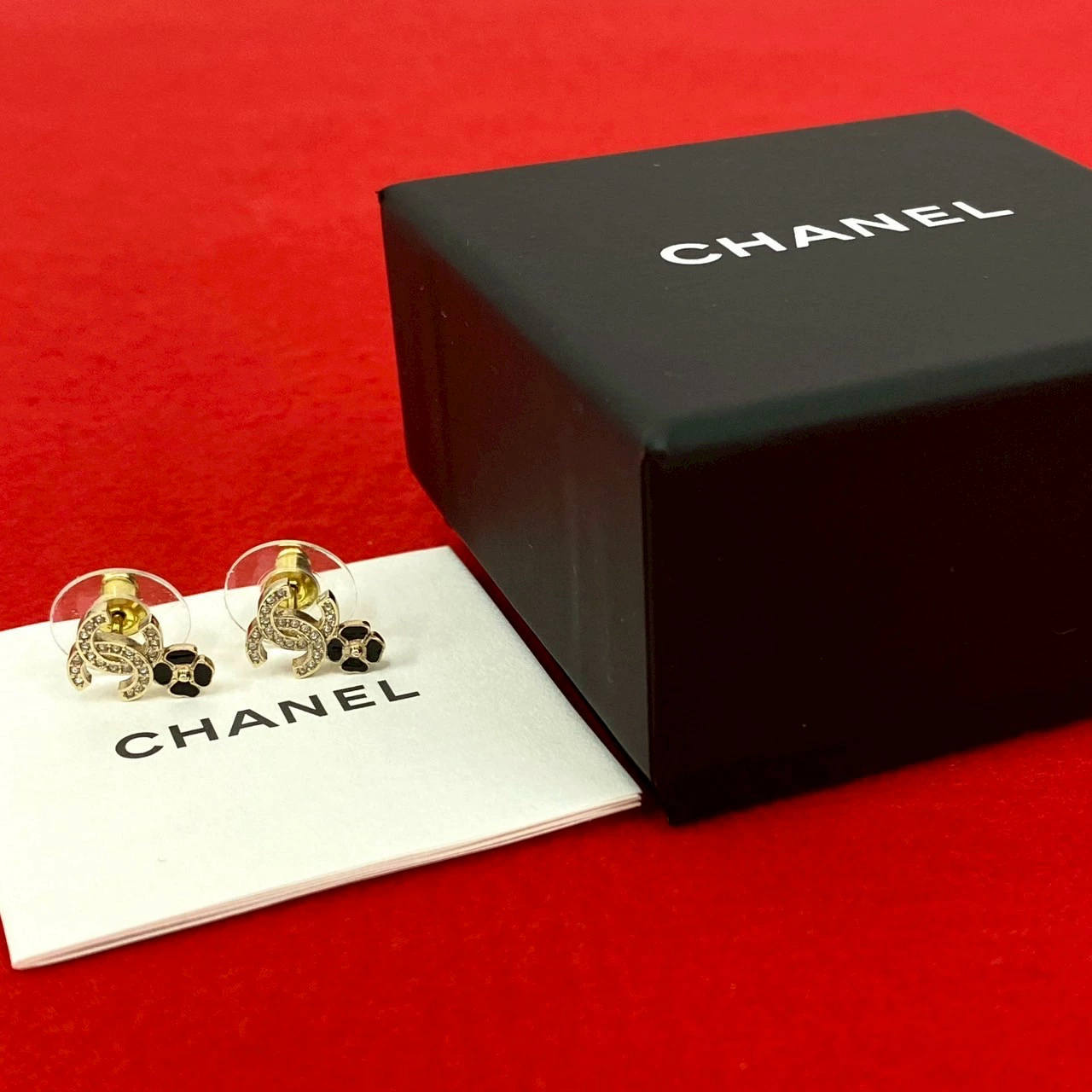 Excellent condition, boxed, with some marks. I25P CHANEL Coco Mark motif GP rhinestone earrings, gold and black, 58250 [pre-owned]