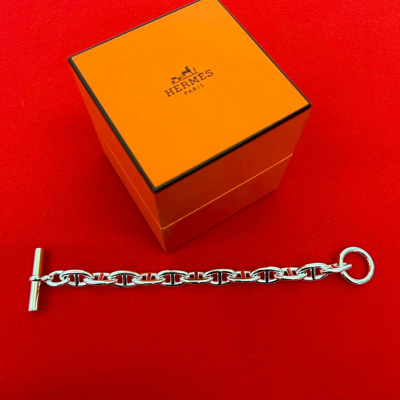 Excellent condition, box included. HERMES Chaine d'Ancre GM 12-link silver 925 chain bracelet/bangle accessory, silver, 62925 [pre-owned].