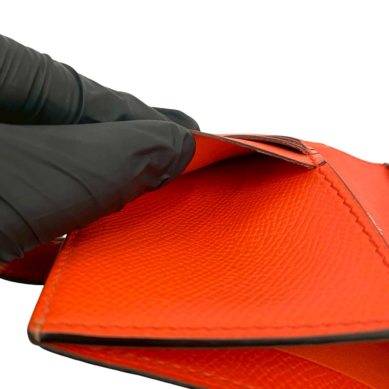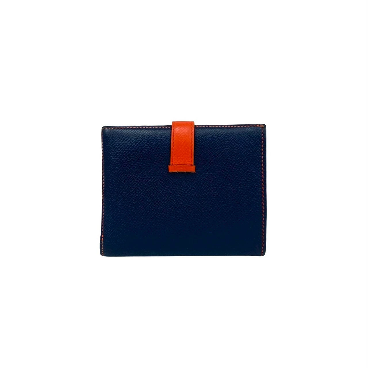 Excellent condition, box included, X stamped, HERMES Bearn Compact Wallet, two-tone, Epsom leather, bifold wallet, navy and orange, 57326 [pre-owned]