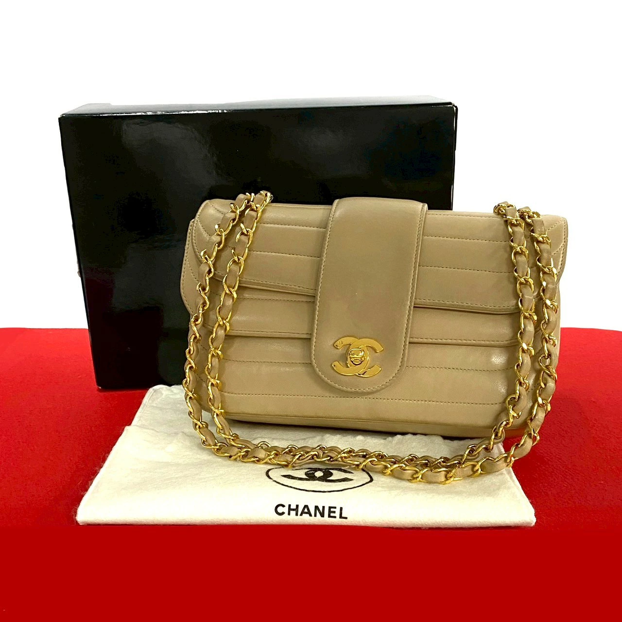 Earn double points! Excellent condition, box and bag included, stickers attached, #2 CHANEL Double-flap Coco Mark lambskin semi-shoulder bag/pouch, beige, 81337 [Pre-owned]