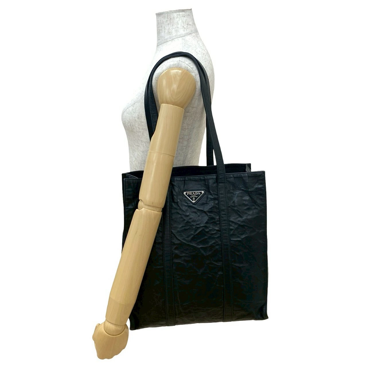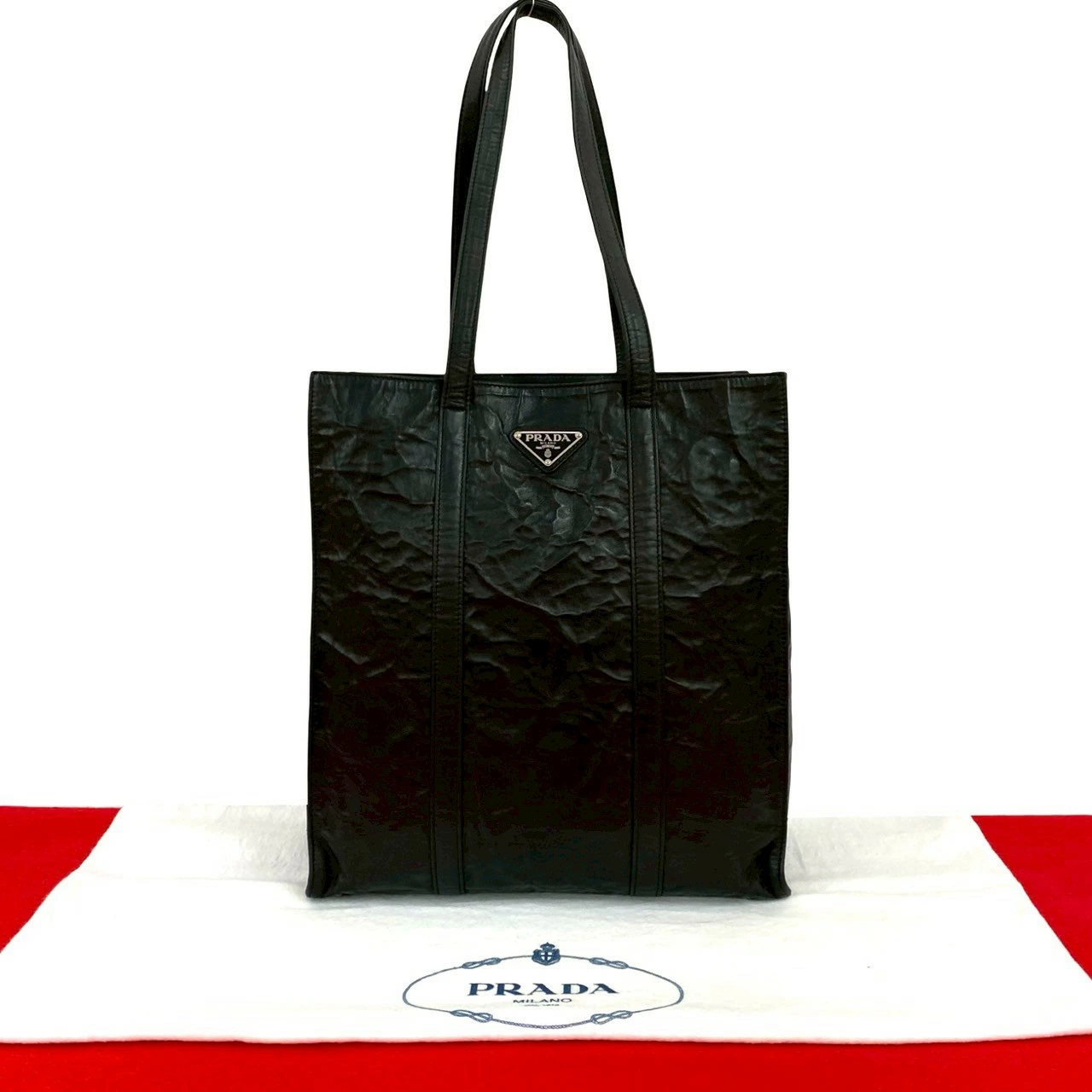 Excellent condition, comes with a bag. PRADA Prada triangle logo, metal hardware, genuine leather tote bag, semi-shoulder bag, handbag, black, 34043 [pre-owned]
