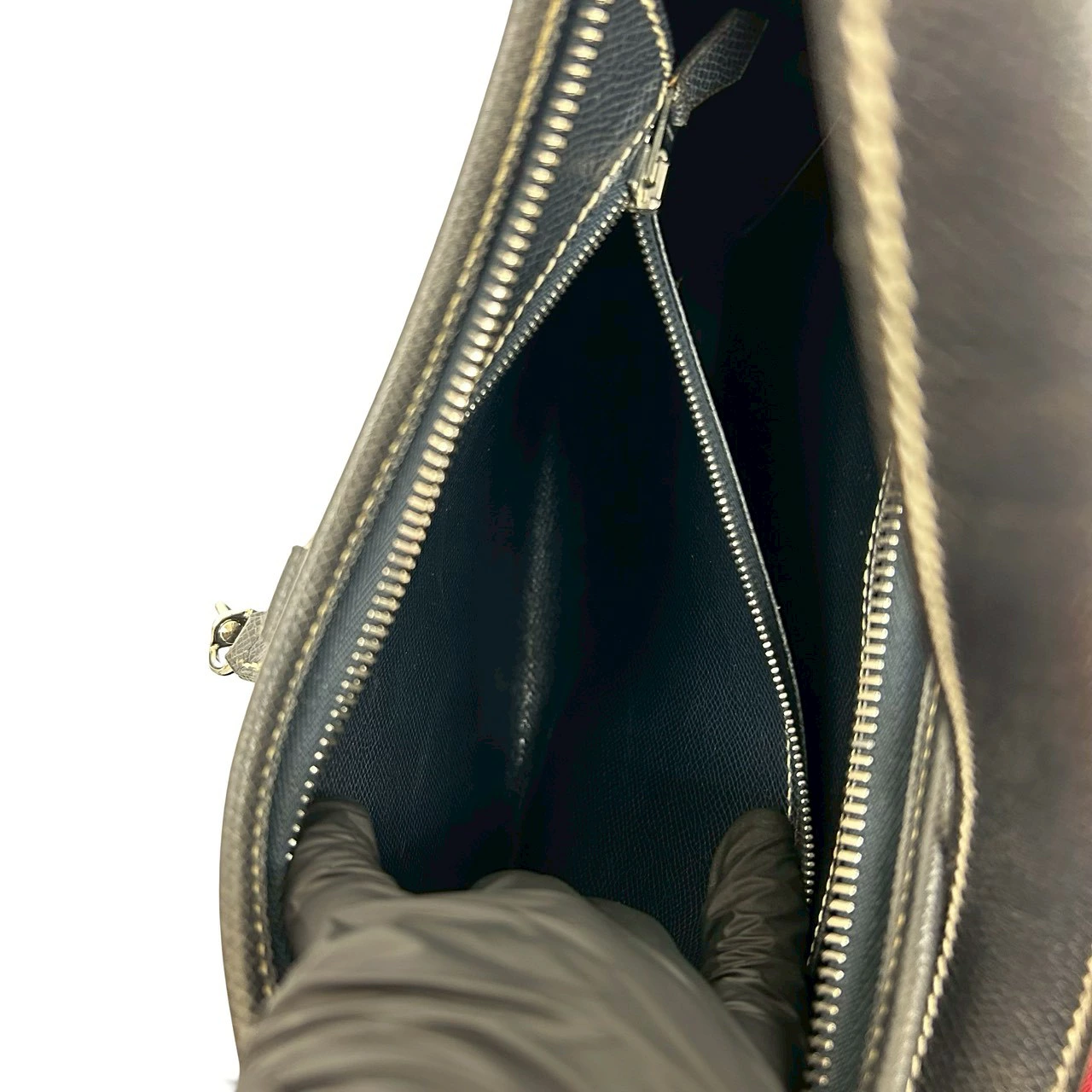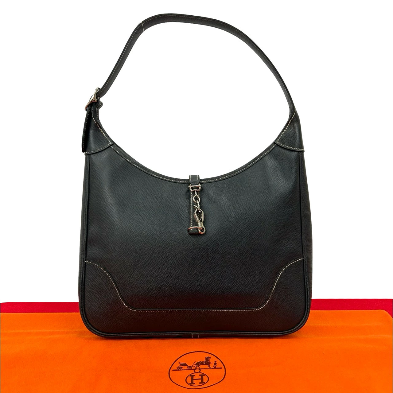 Excellent condition, comes with pouch. □E stamped. HERMES Trim 31 Fjord leather one-shoulder/semi-shoulder bag, navy blue. 37543 [Pre-owned]
