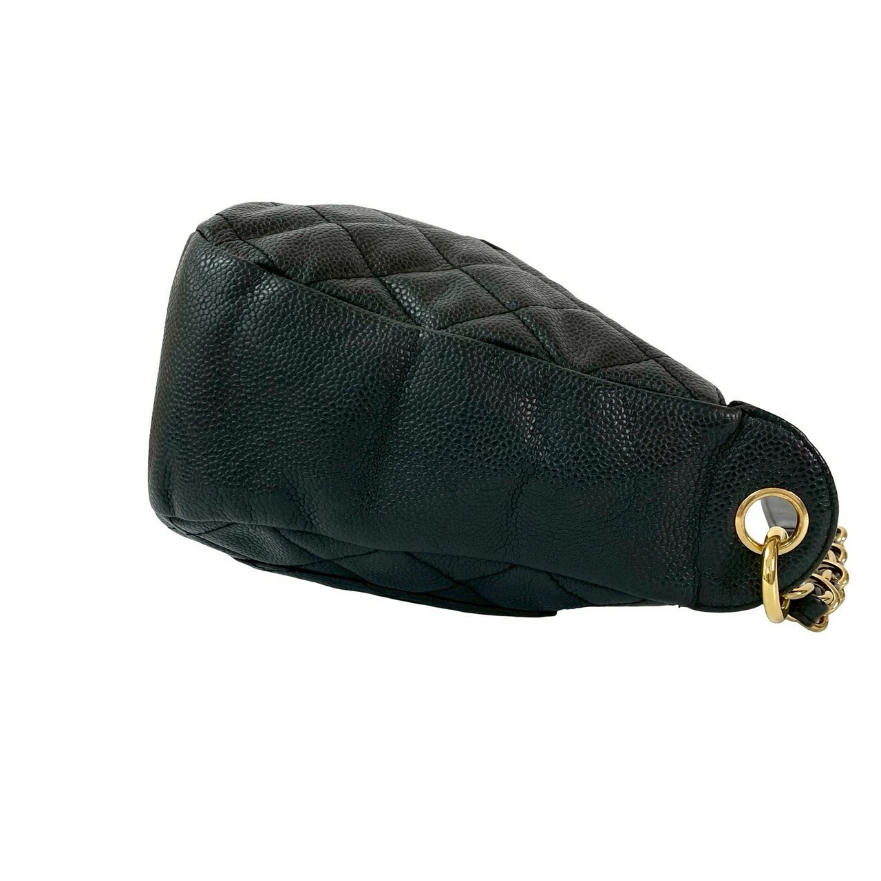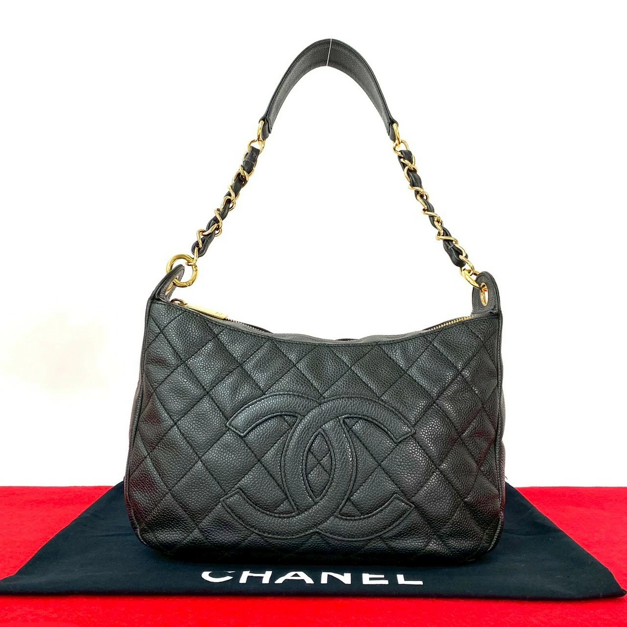 Excellent condition, bag included, sticker attached, CHANEL Matelasse Coco Mark Caviar Skin Semi One Shoulder Bag, Black, 16582 (pre-owned)