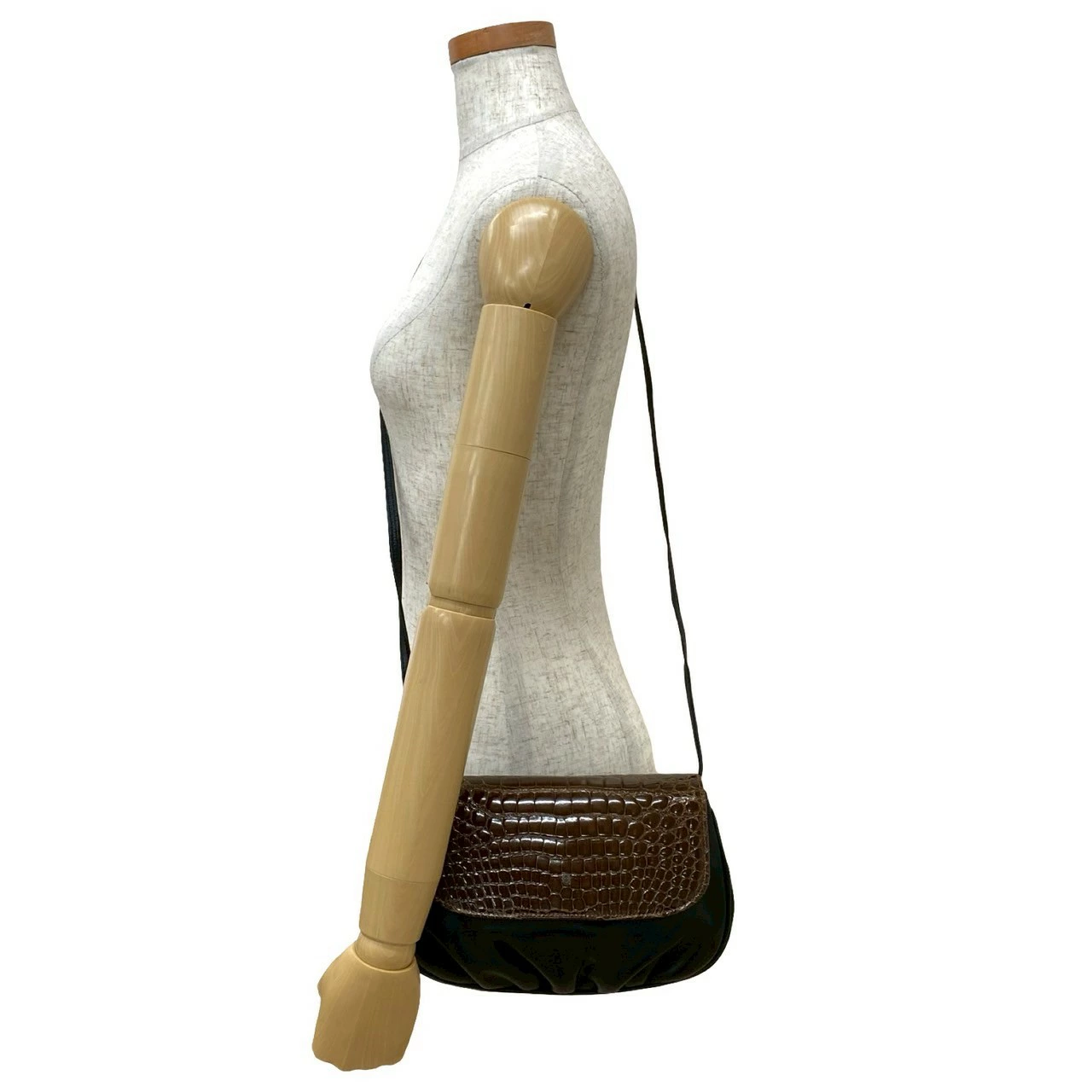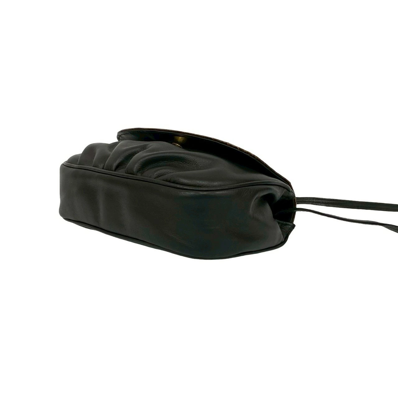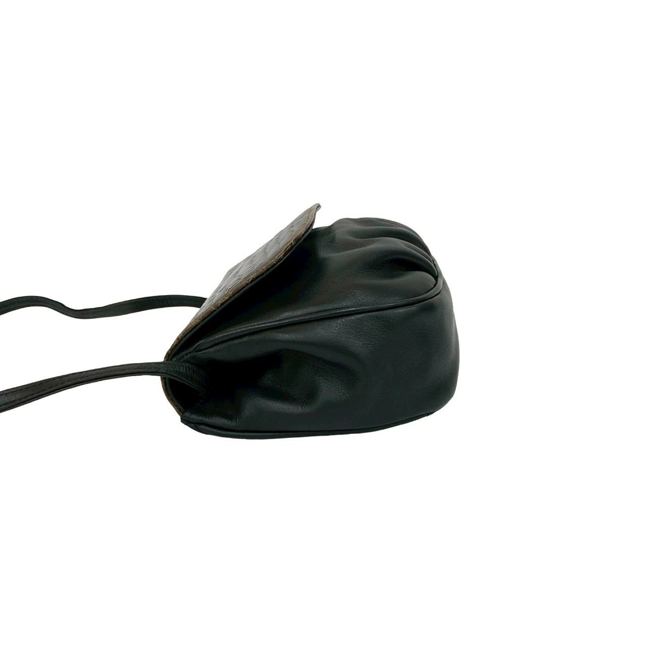 Excellent condition, with pouch. LOEWE Vintage Anagram Logo Leather Shoulder Bag/Pochette/Sacoche in Black and Brown (1415a). Pre-owned.