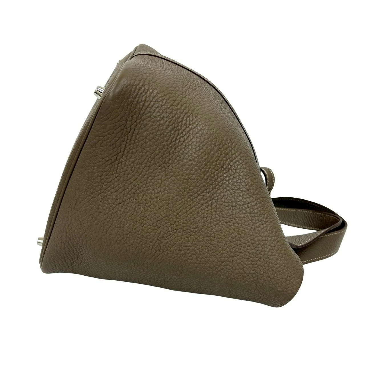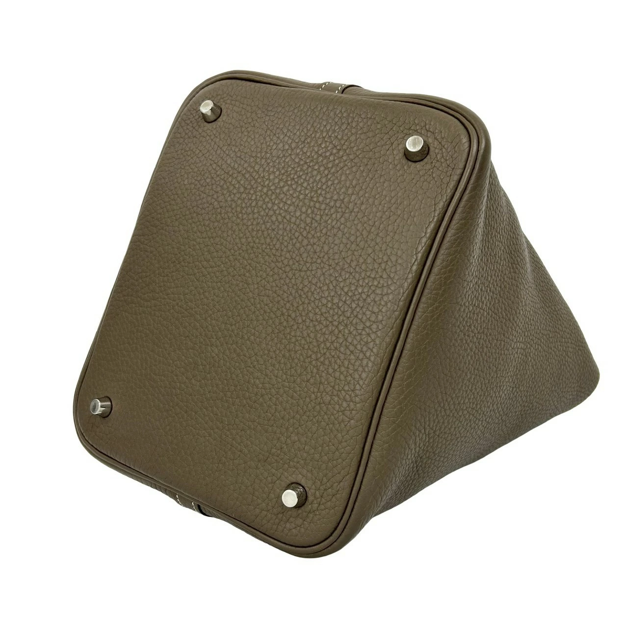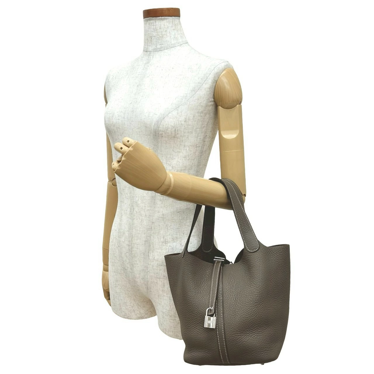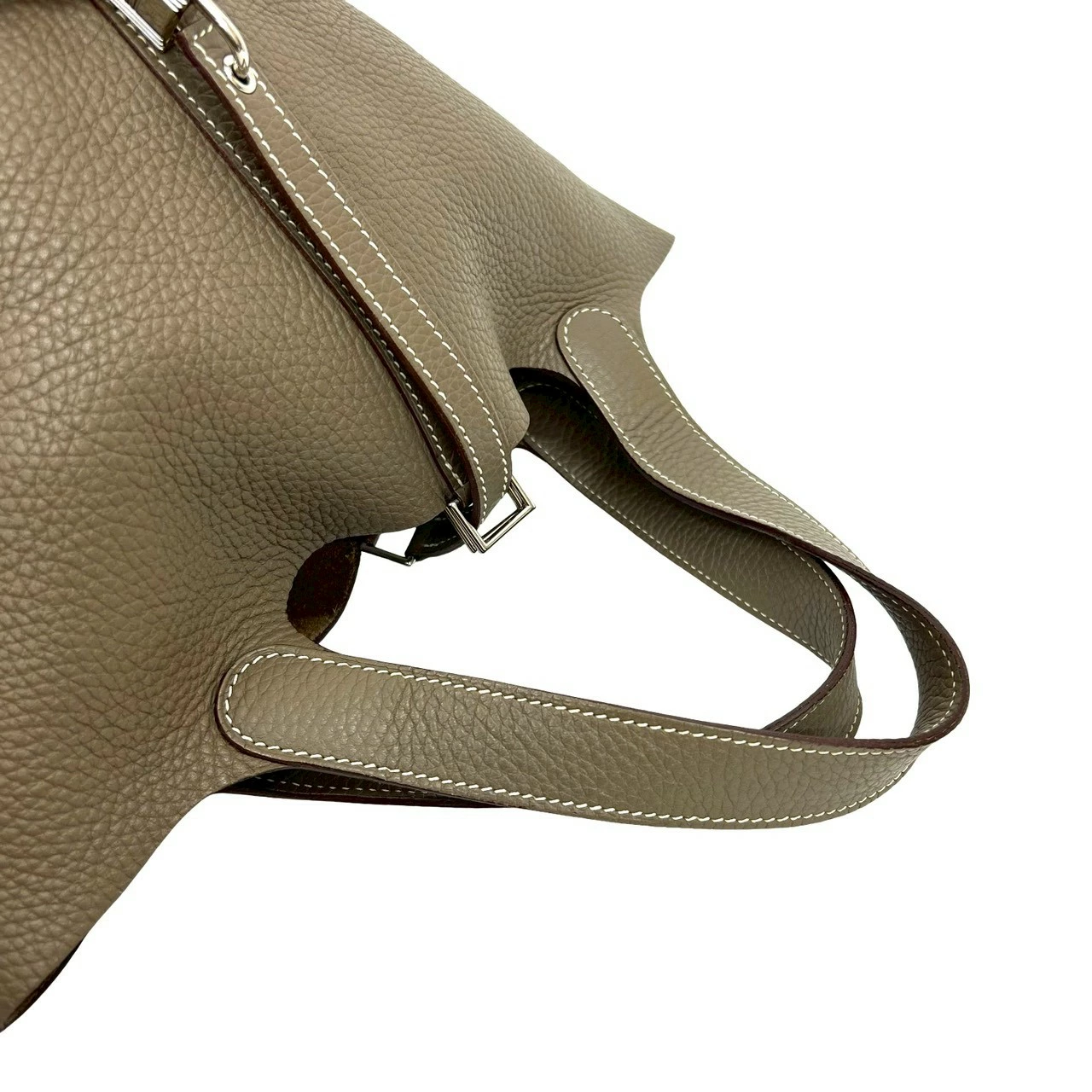 Excellent condition bag with lock. HERMES Picotin Lock MM Taurillon Clemence leather handbag/mini tote bag in Etoupe leather (30567). Pre-owned.
