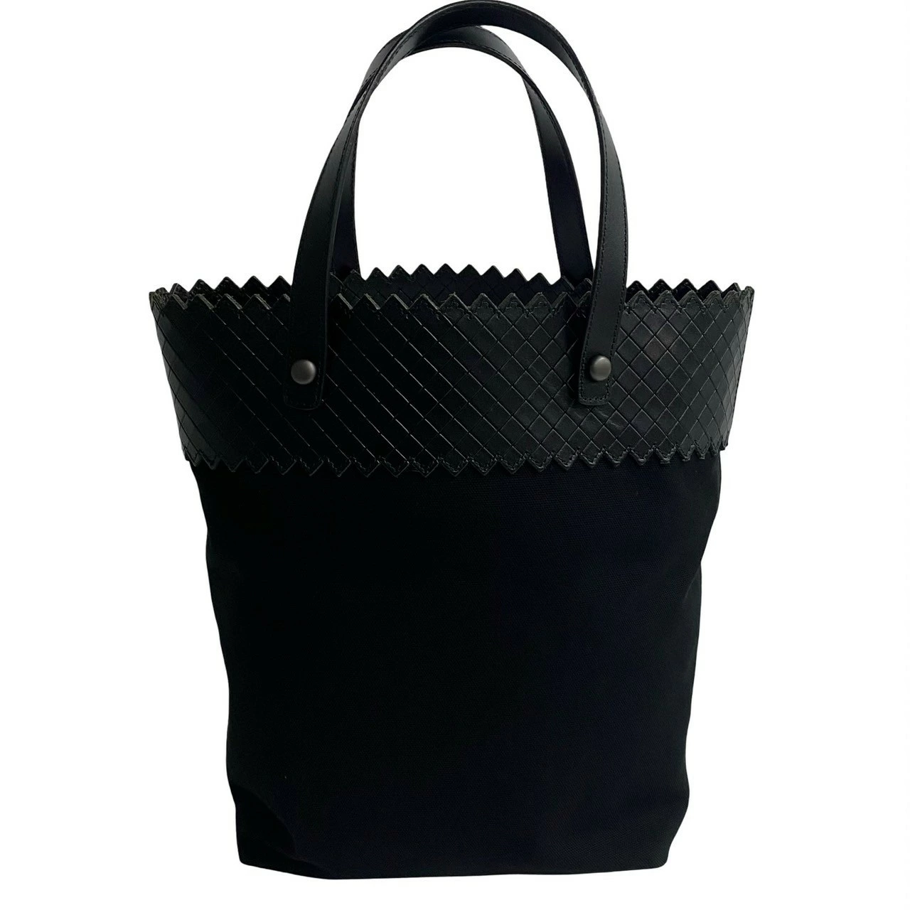 Earn double points! Excellent condition BOTTEGA VENETA Intrecciato leather and genuine leather canvas tote bag, black, model 922-2 (pre-owned).