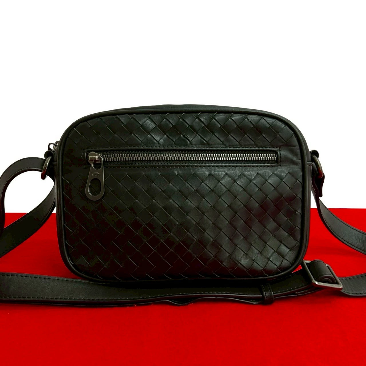 Excellent condition BOTTEGA VENETA genuine leather mini shoulder bag/pouch/sacoche in black (185-9) [pre-owned]