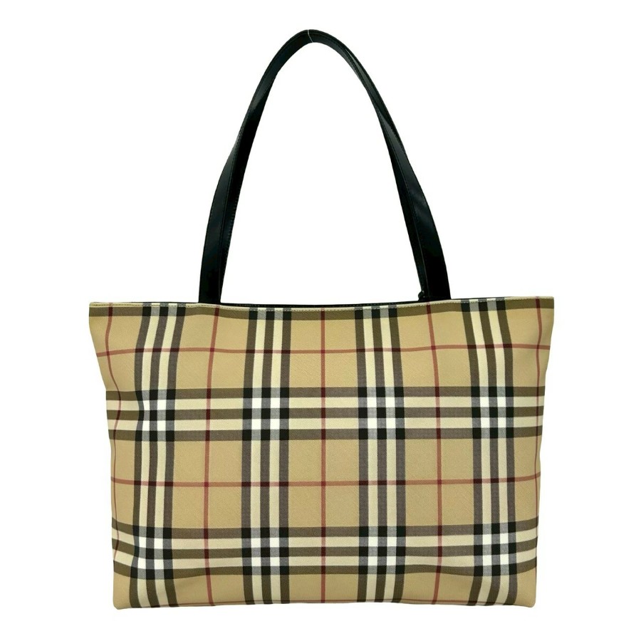 Excellent condition BURBERRY Nova Check pattern leather tote bag, handbag, semi-shoulder bag, beige/black, 32569 [Used]