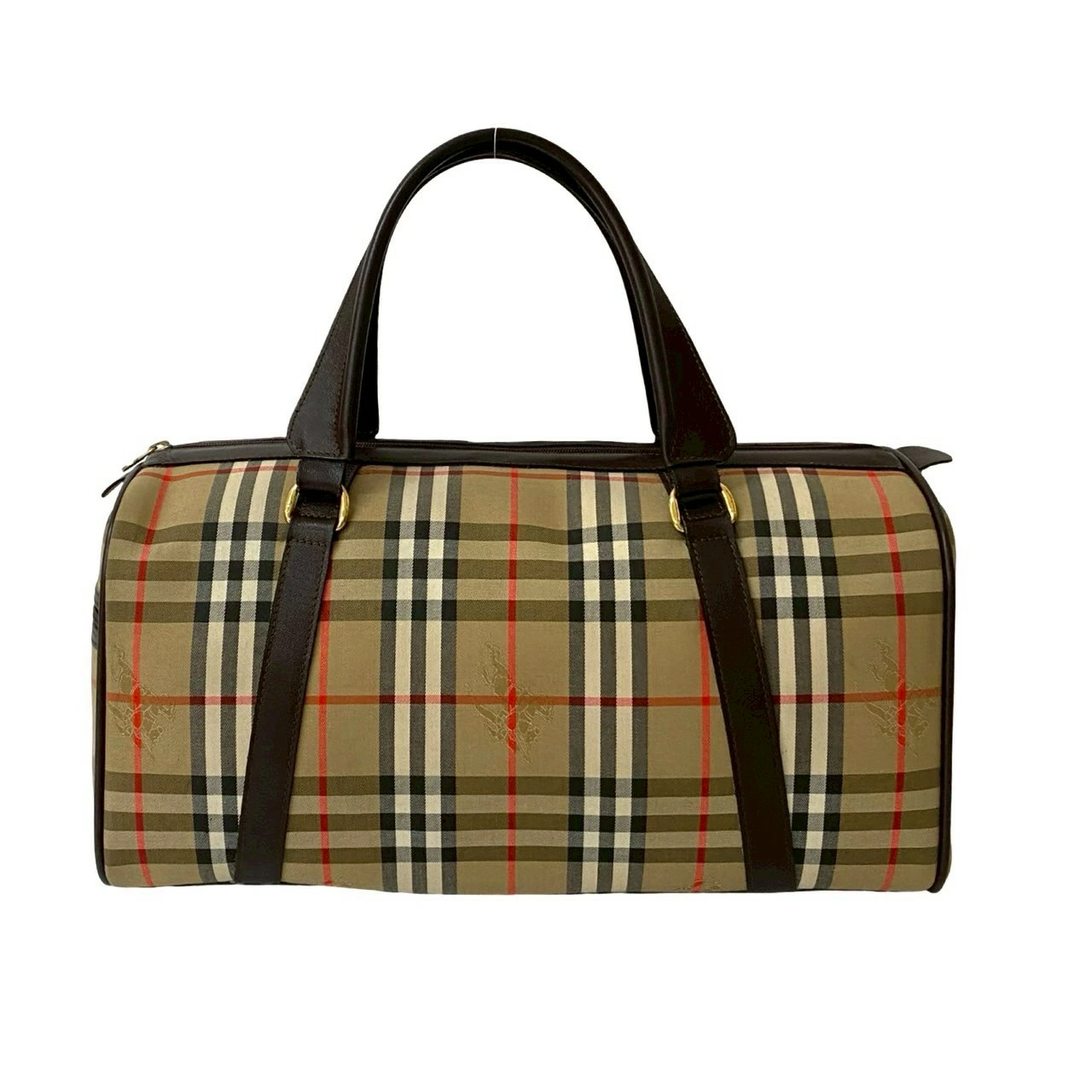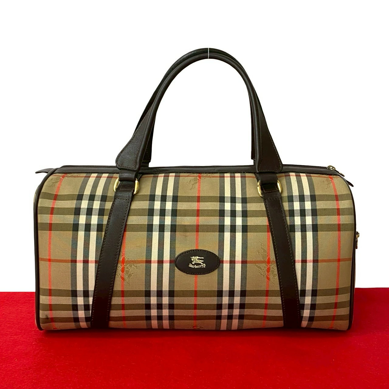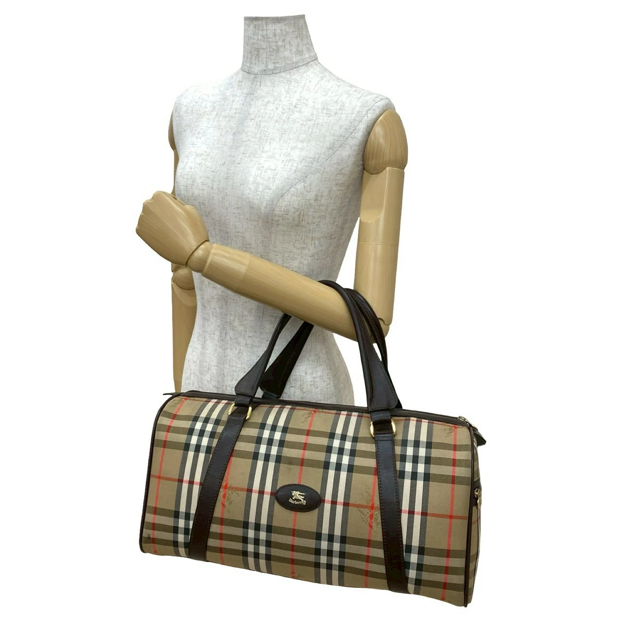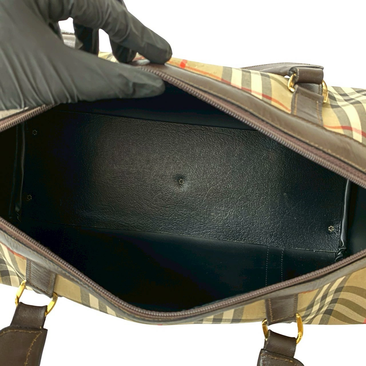 Excellent condition Burberrys vintage Nova check pattern Shadow Horse logo canvas and leather Boston bag, brown, 22559 (pre-owned)