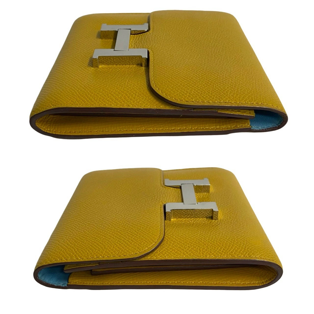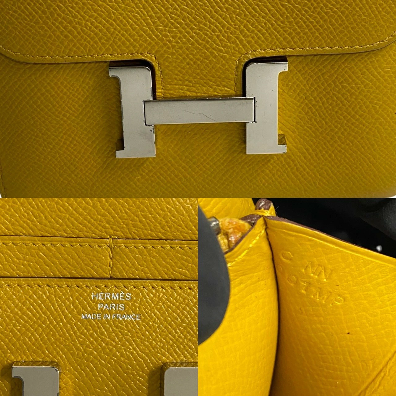 Very good condition, C stamped, rare HERMES Constance Compact Epsom leather bifold wallet with coin purse, yellow, 36846 [pre-owned]