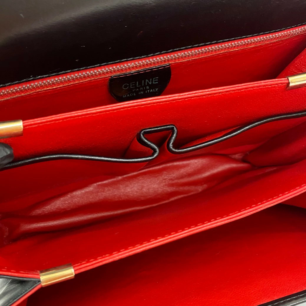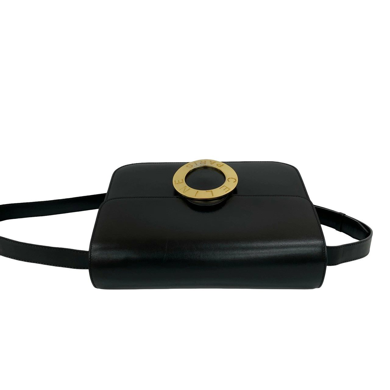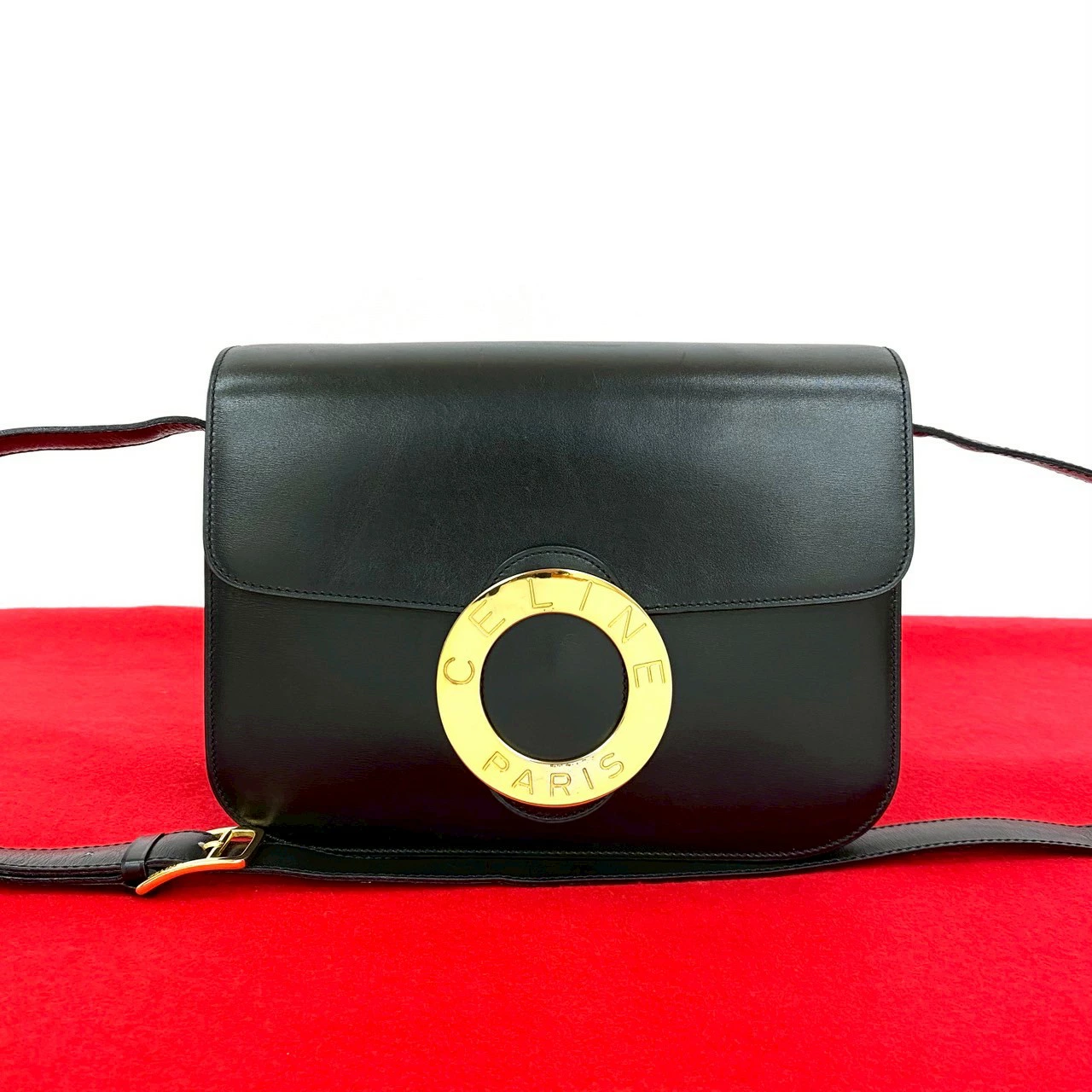 Excellent condition Celine vintage circle logo hardware, calfskin leather shoulder bag/pouch/sacoche, black, 27506 [pre-owned]