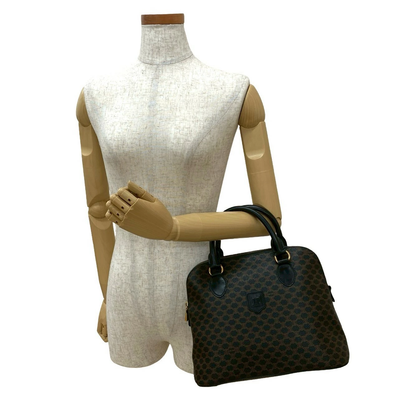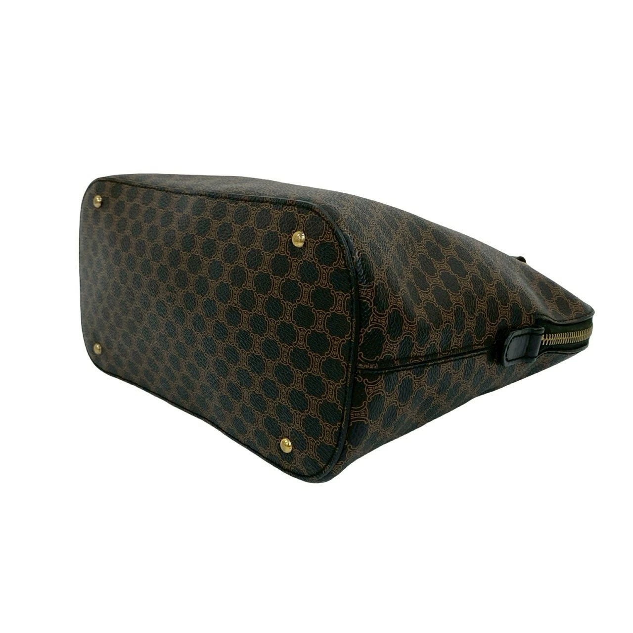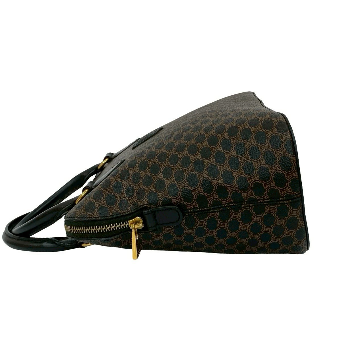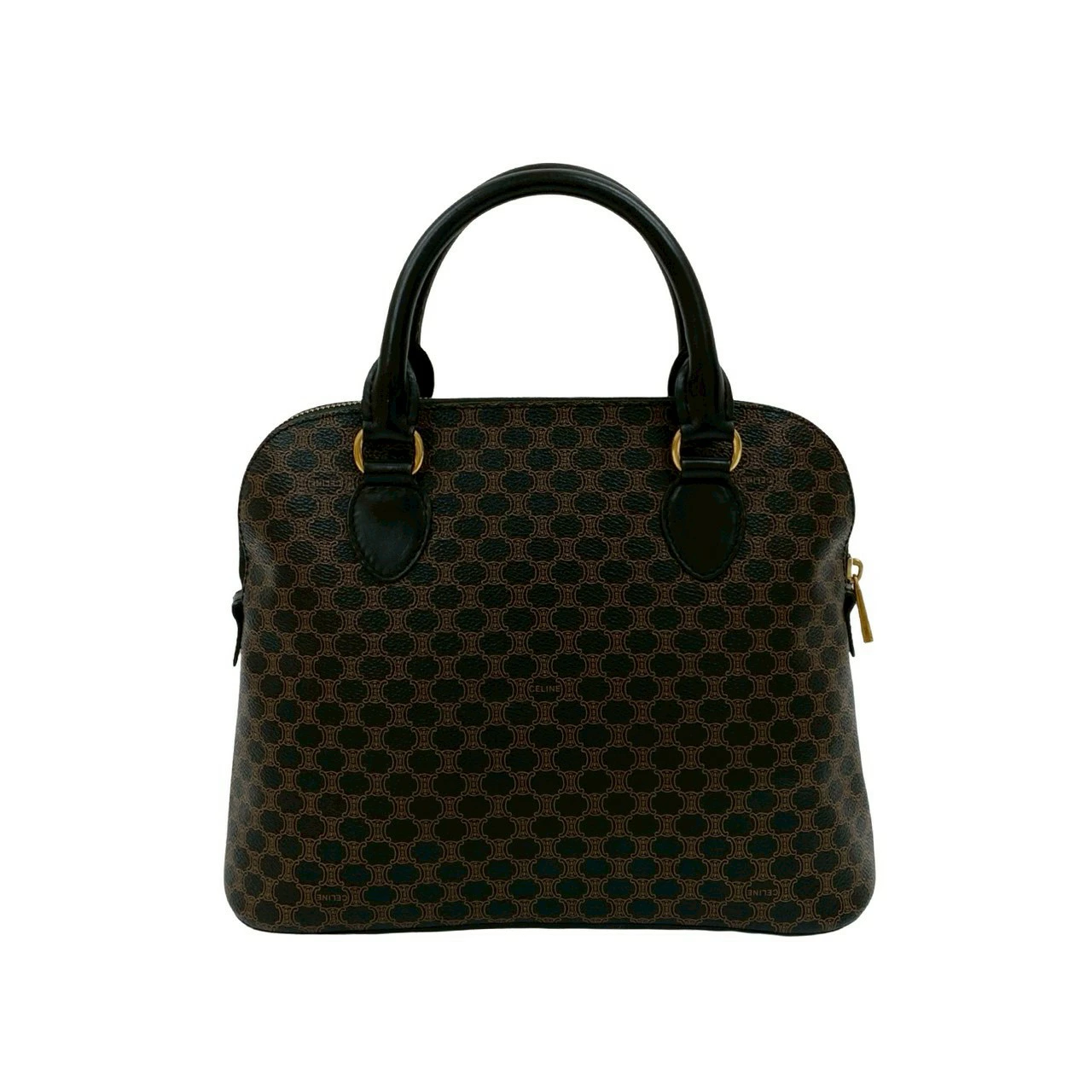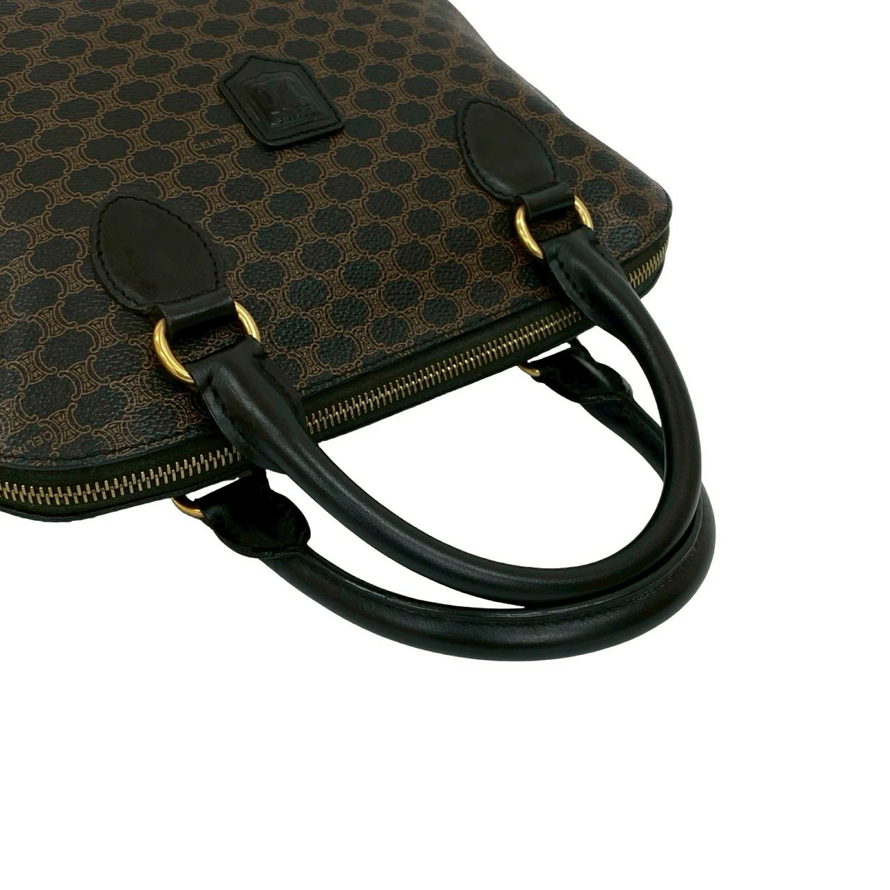 Earn double points! Excellent condition Celine Vintage Macadam Blason Triomphe pattern leather handbag/mini tote bag in black (23005) [Pre-owned]