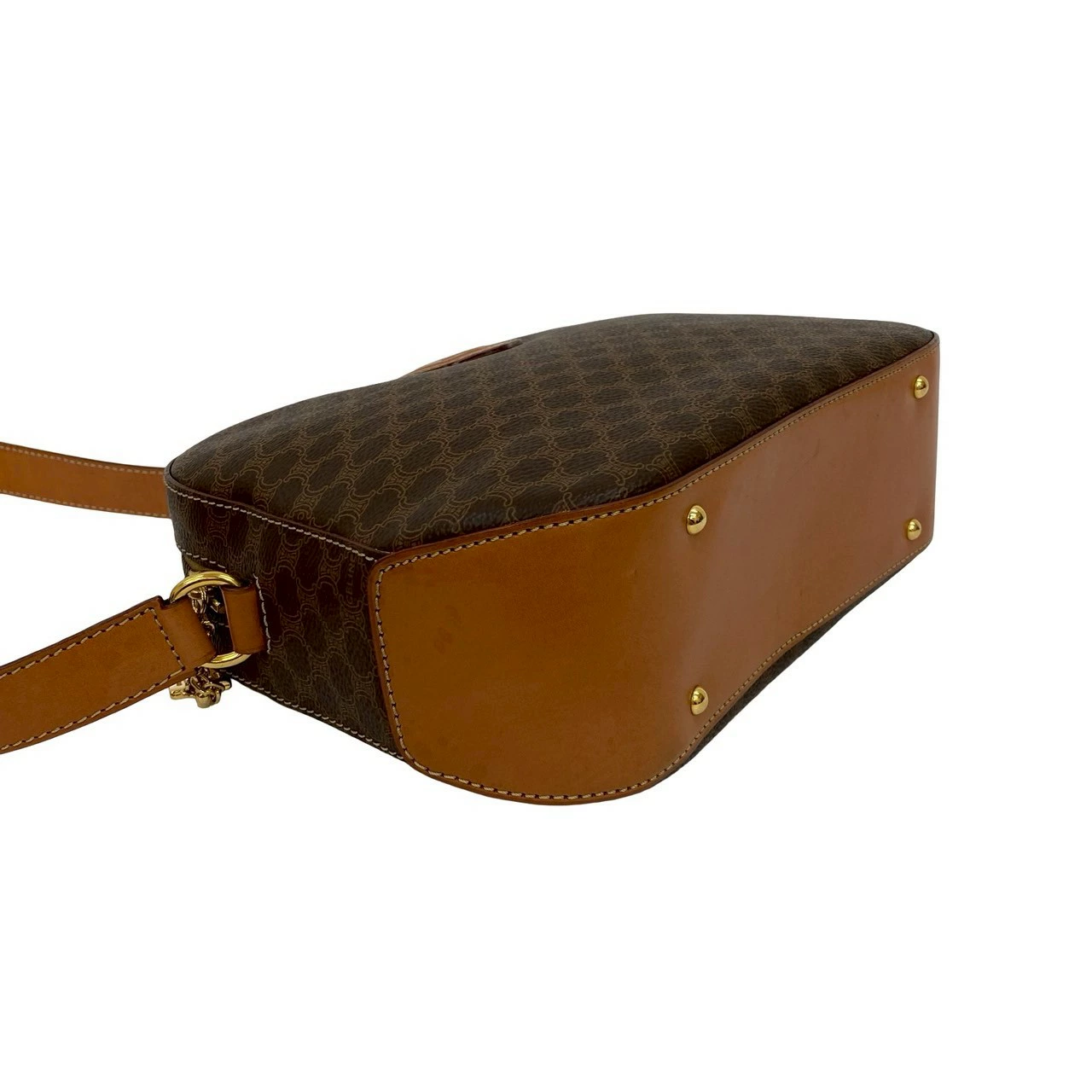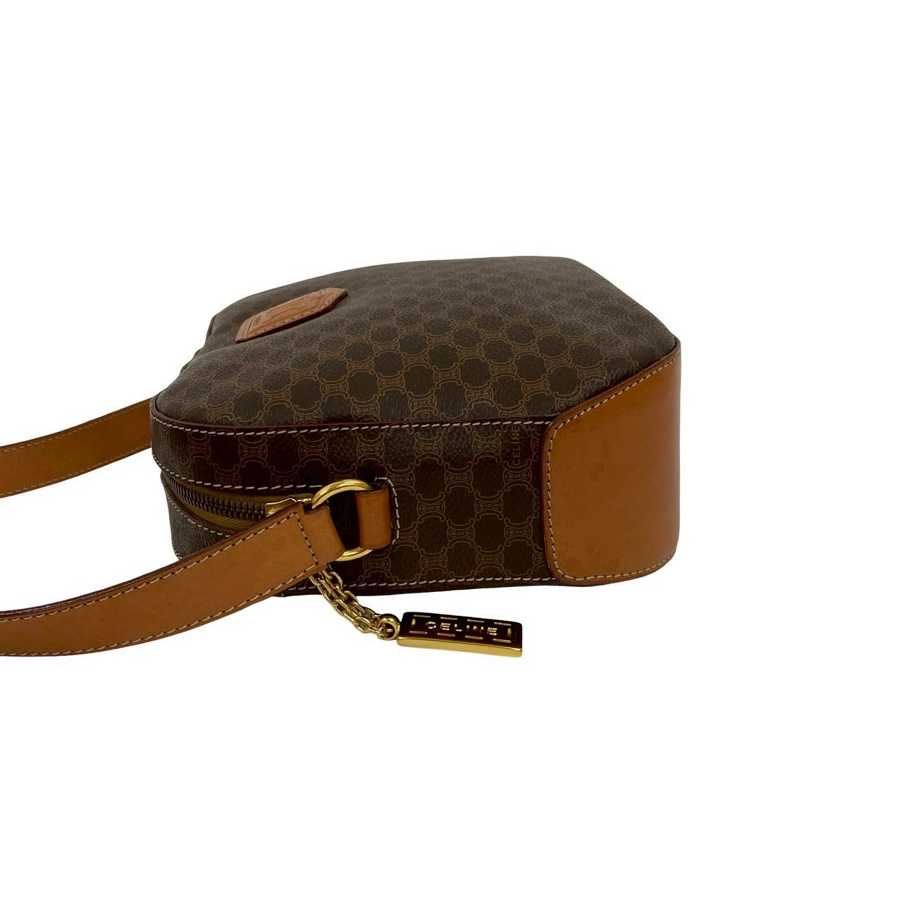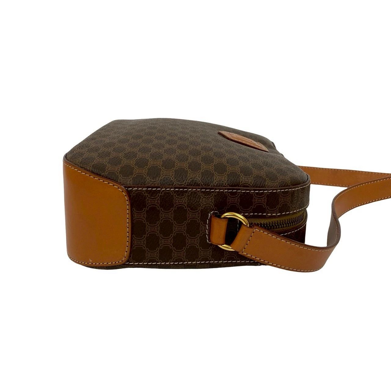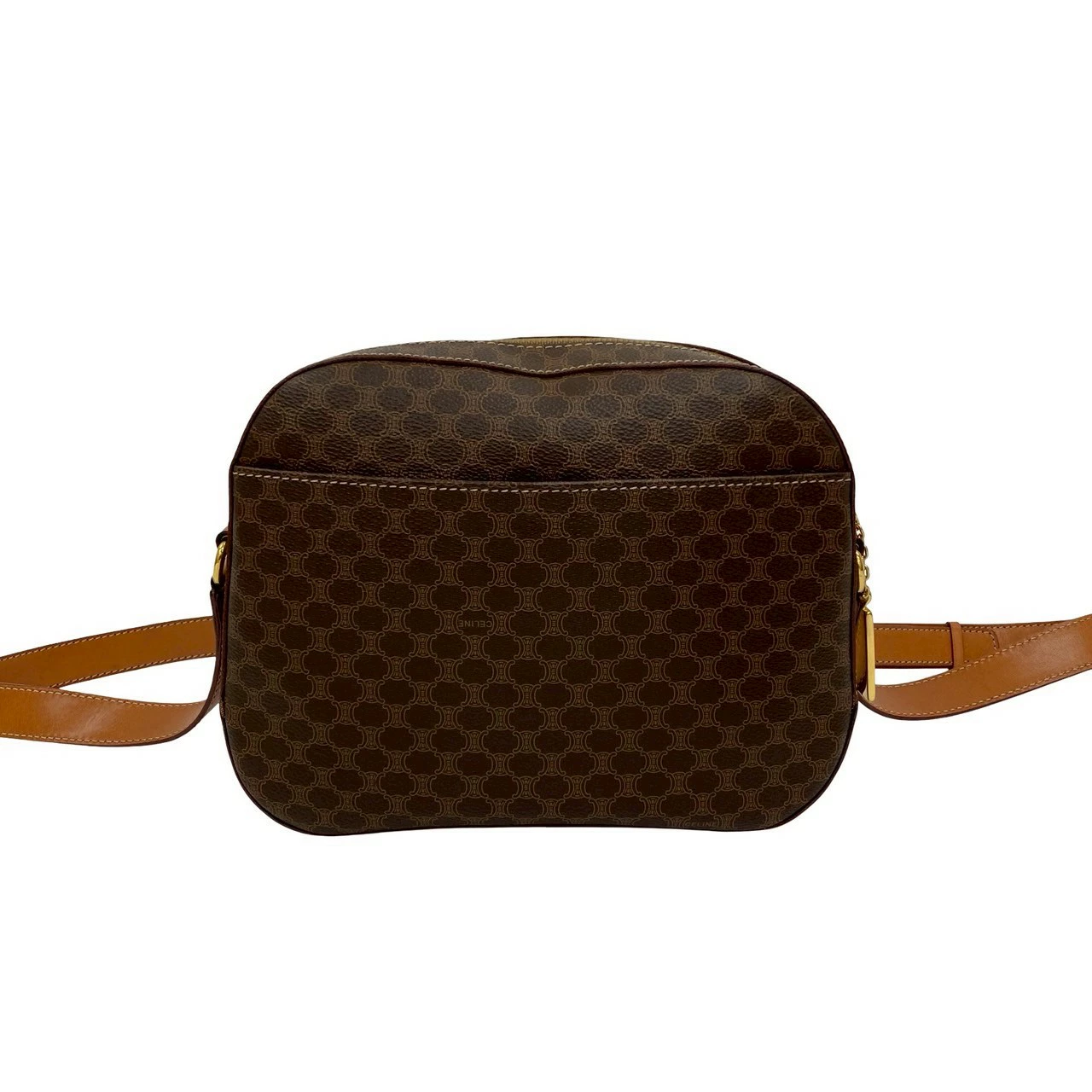 Excellent condition Celine Vintage Macadam Blason Triomphe pattern genuine leather shoulder bag/pouch in brown (33124) [Pre-owned]