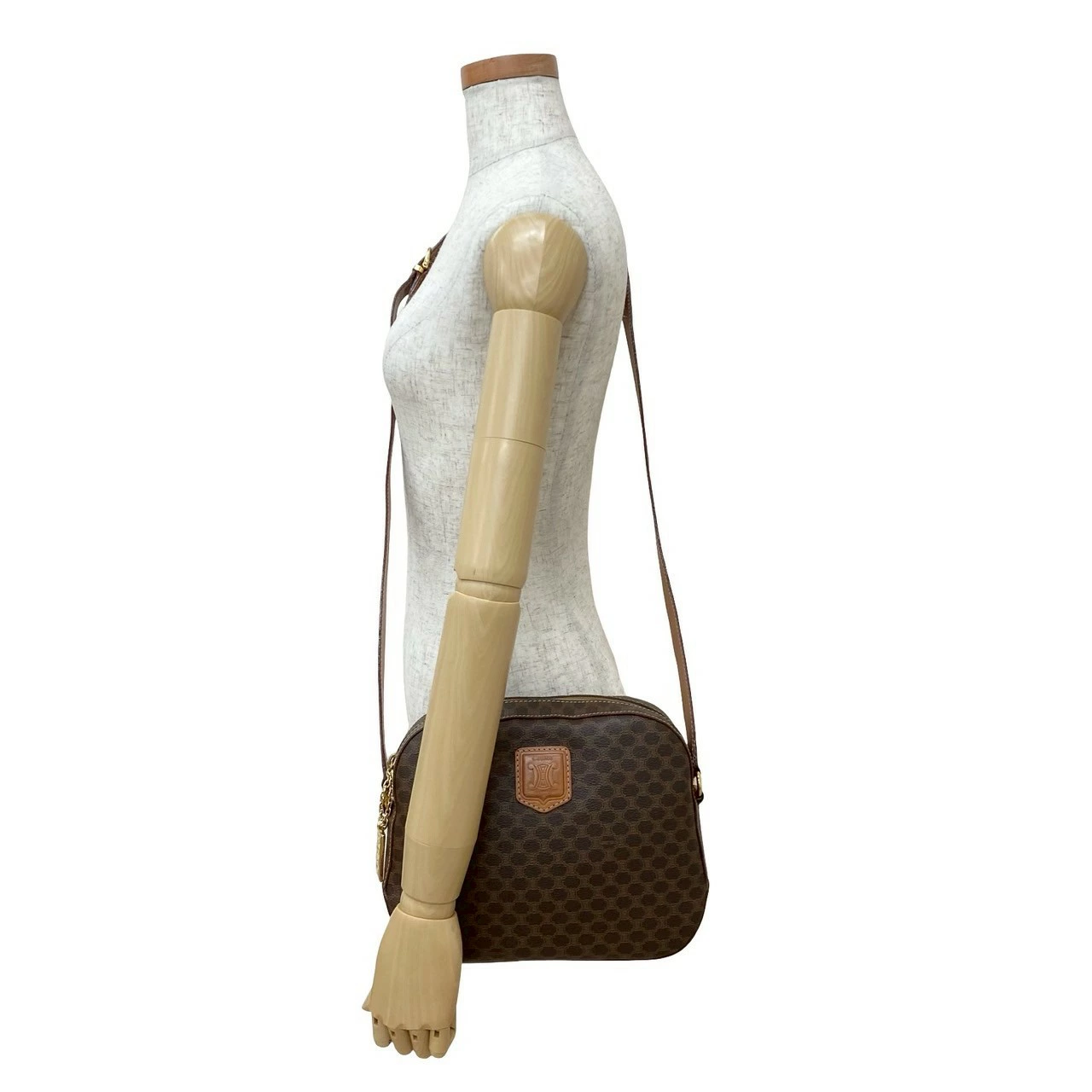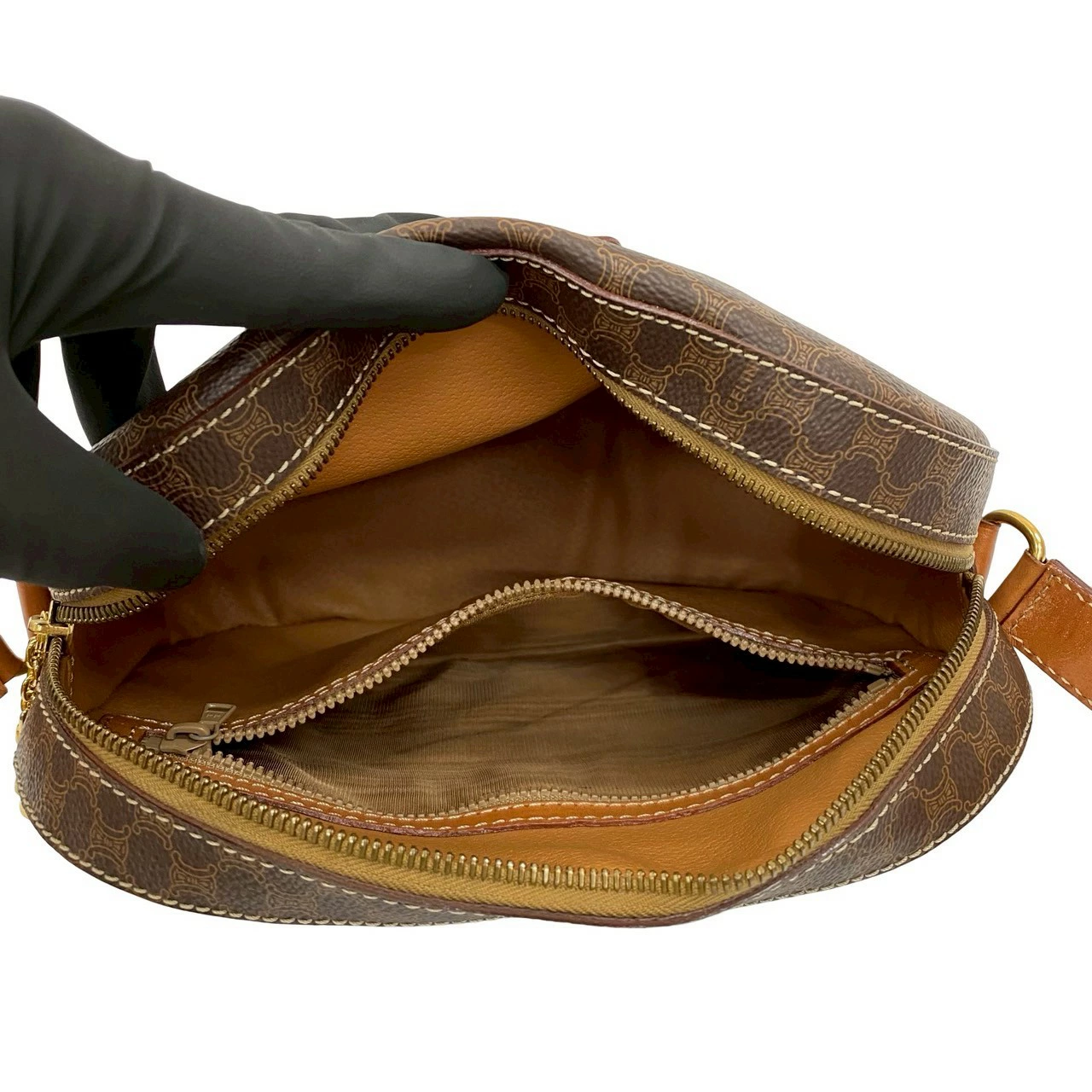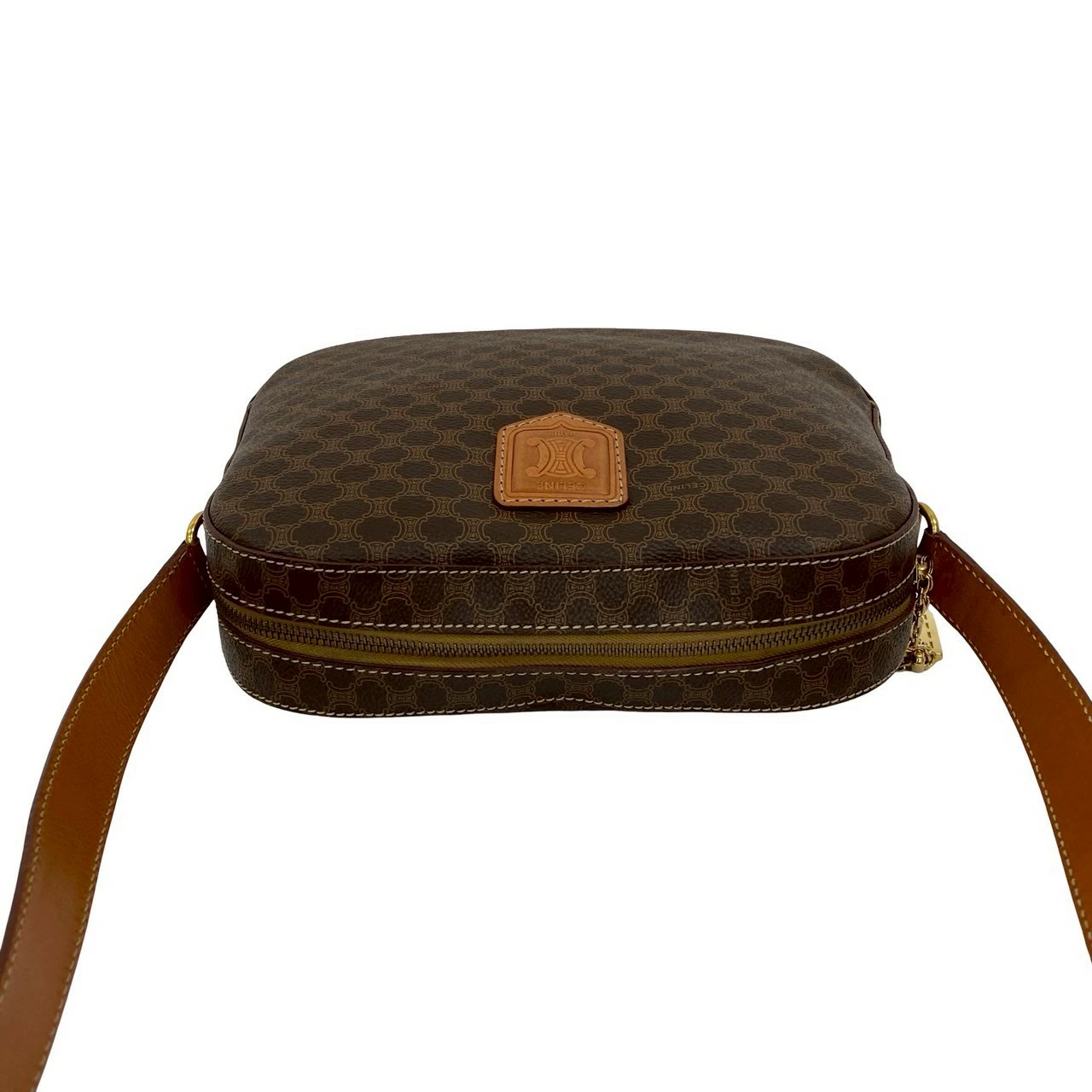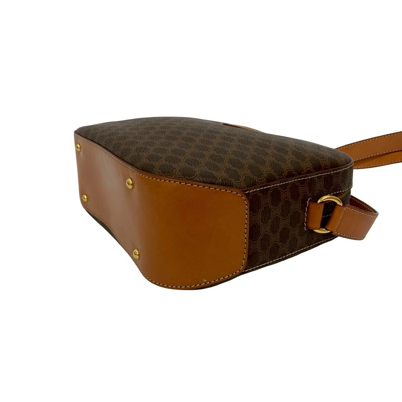 Excellent condition Celine Vintage Macadam Blason Triomphe pattern genuine leather shoulder bag/pouch in brown (33124) [Pre-owned]