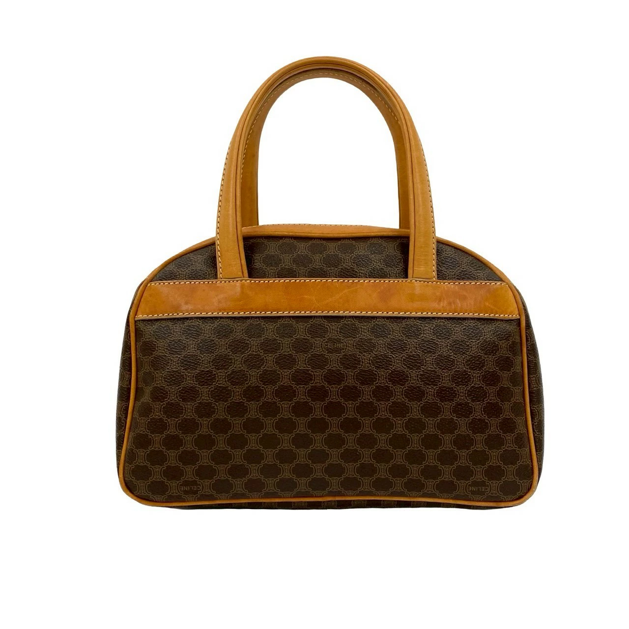 Excellent condition Celine vintage Macadam Blason patterned logo leather handbag/mini Boston bag in brown (41441) [pre-owned]