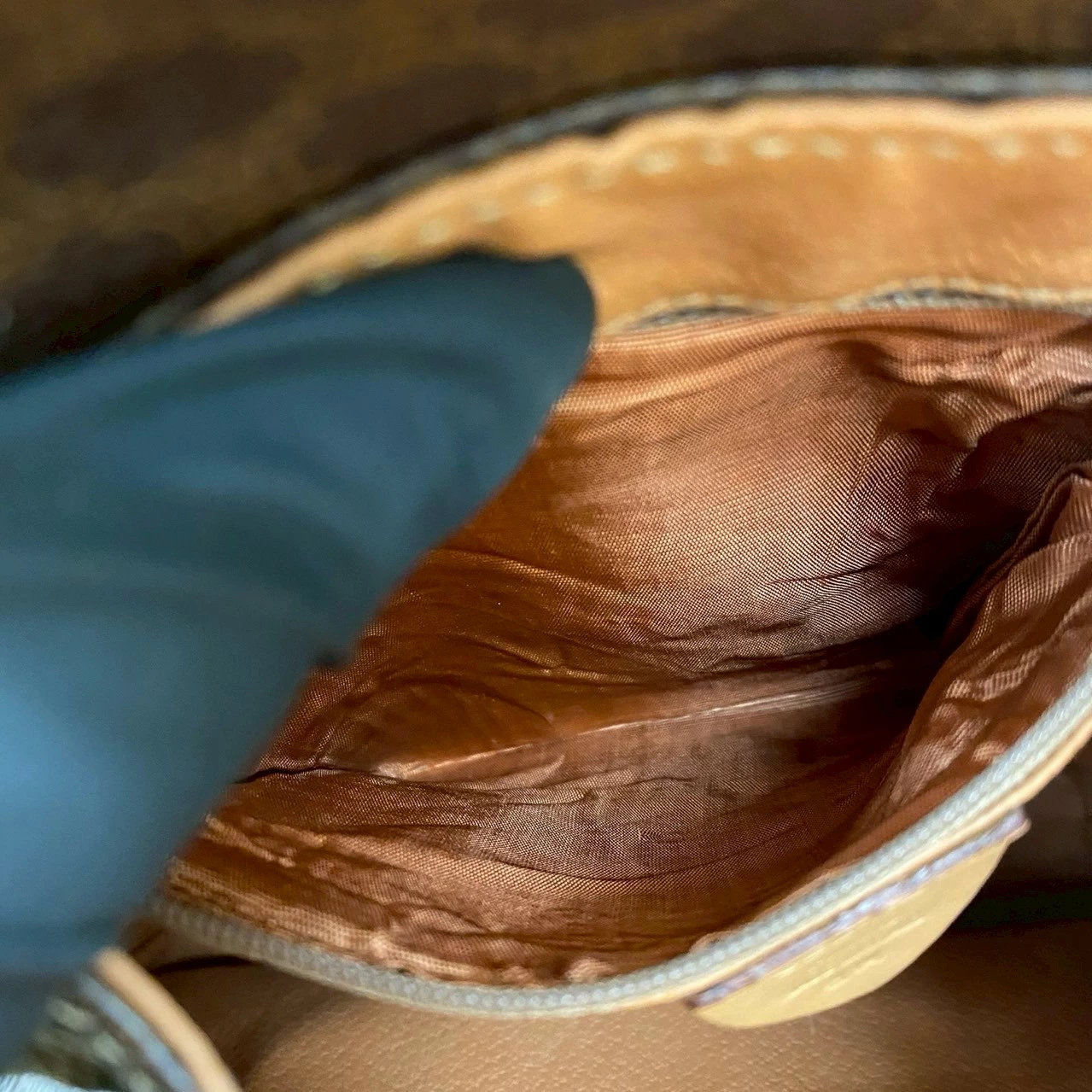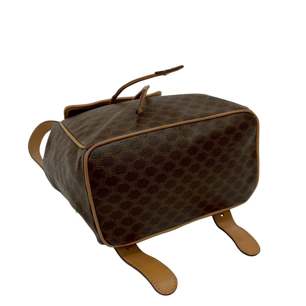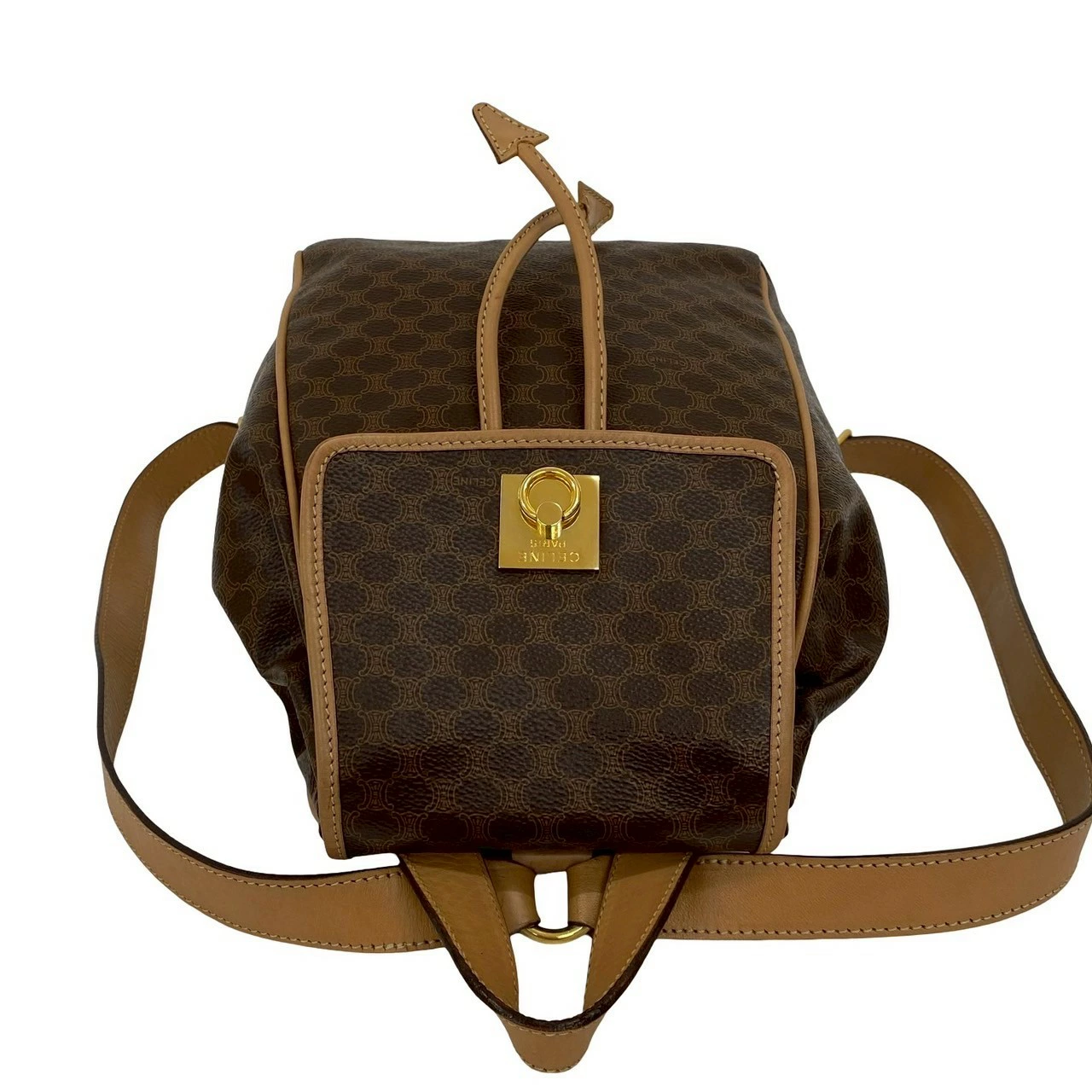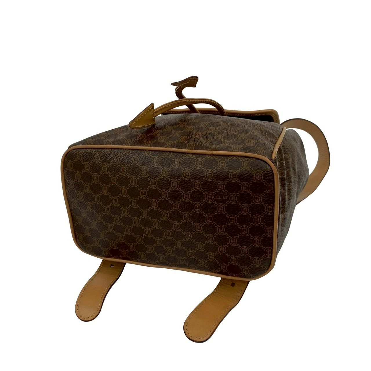 [Double Points] Excellent Condition Celine Vintage Macadam Pattern Logo Ring Hardware Genuine Leather Backpack Brown -6027 [Pre-owned]