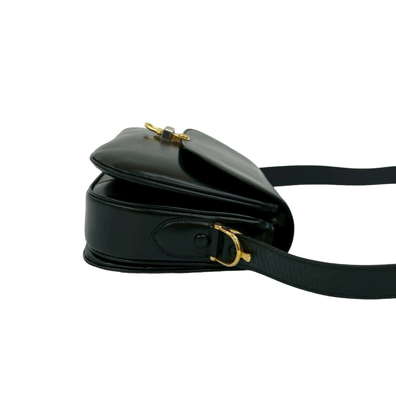 Very good condition Celine vintage carriage hardware calfskin leather shoulder bag/pouch/sacoche in black (product number 41537) [pre-owned]