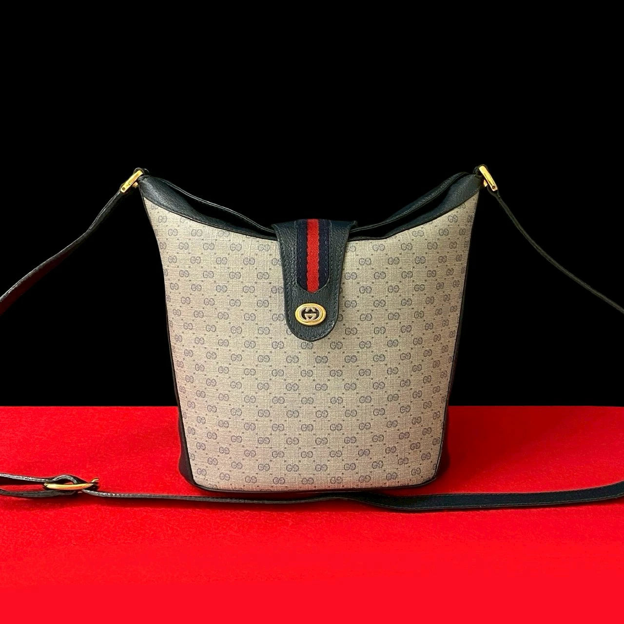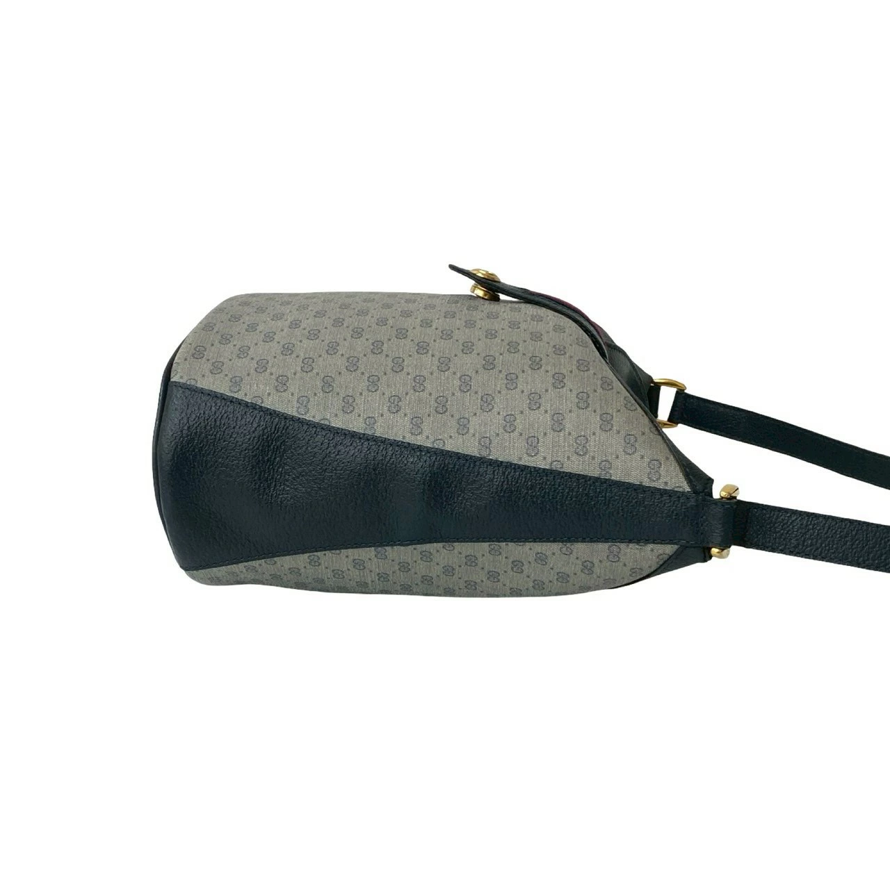 [Double Points] Excellent Condition GUCCI Vintage Sherry Line Micro GG Logo Hardware Leather Shoulder Bag in Navy Blue (33749) [Pre-owned]
