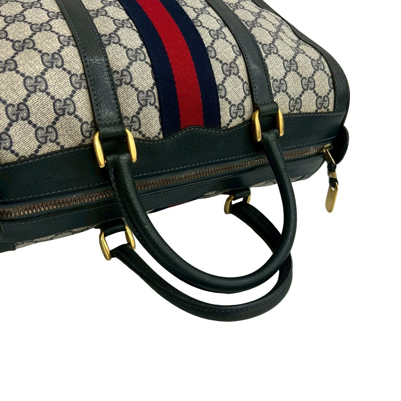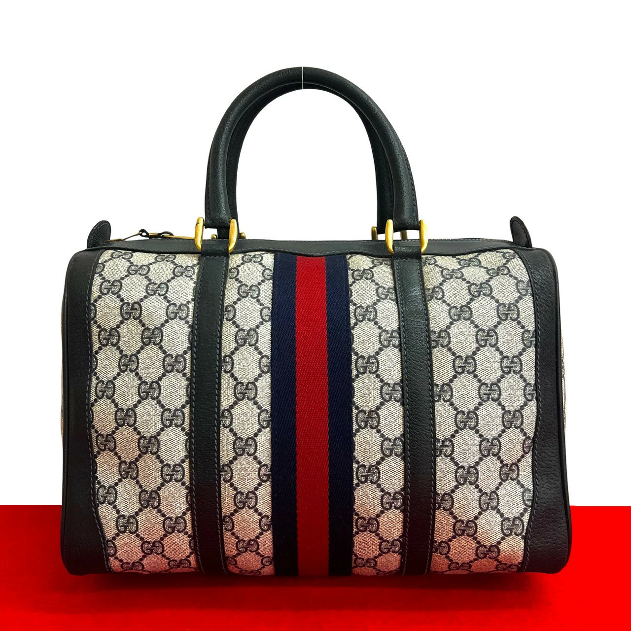 Excellent condition GUCCI vintage Sherry line leather handbag/mini Boston bag in navy blue (78455) [pre-owned]