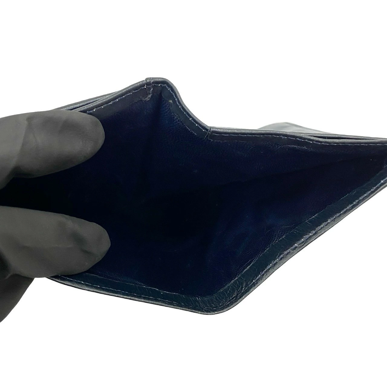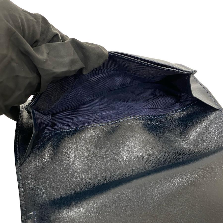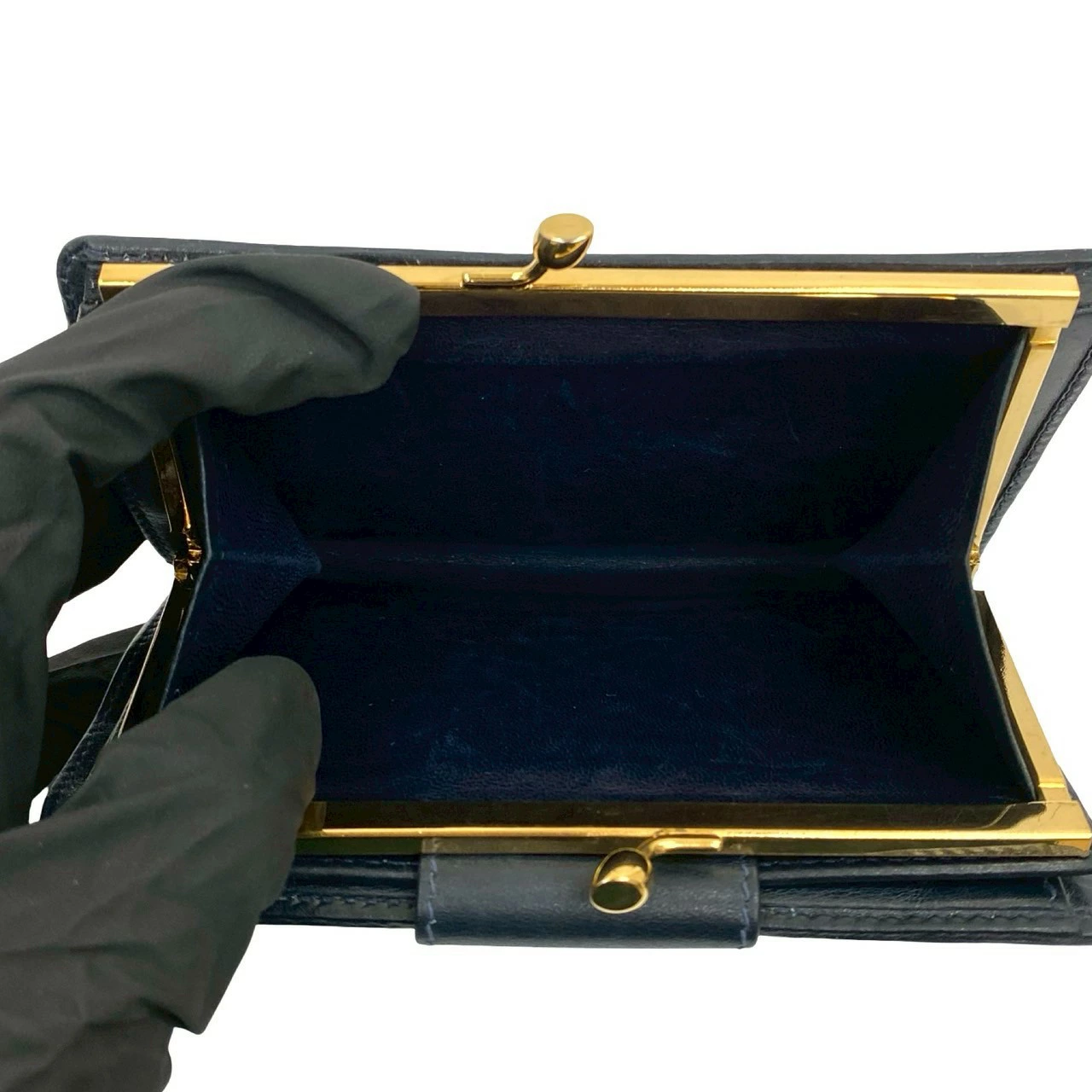 Earn double points! Excellent condition GUCCI vintage Sherry line logo, metal hardware, leather clasp closure, bifold wallet, navy blue, 29765. Pre-owned.