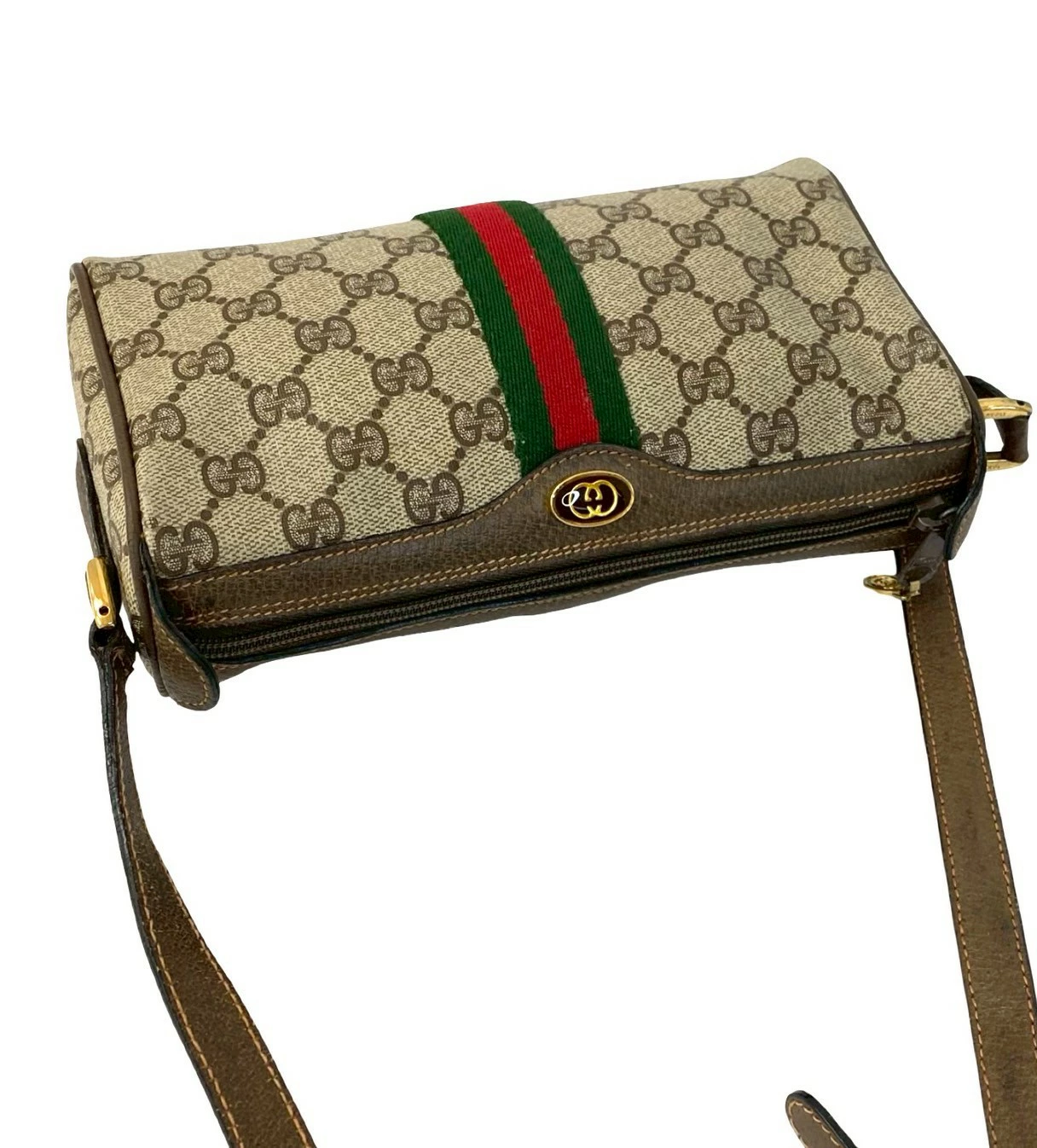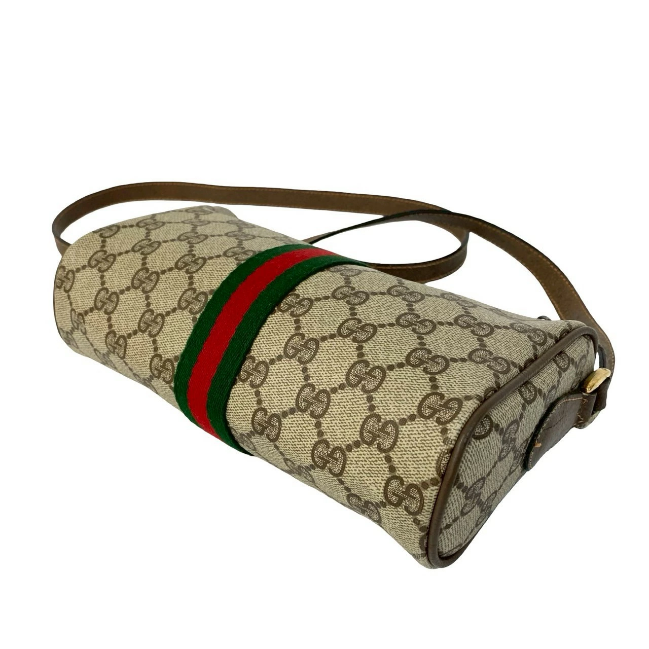 Excellent condition GUCCI vintage Sherry line GG logo hardware leather shoulder bag/pouch in brown (20090) [pre-owned]