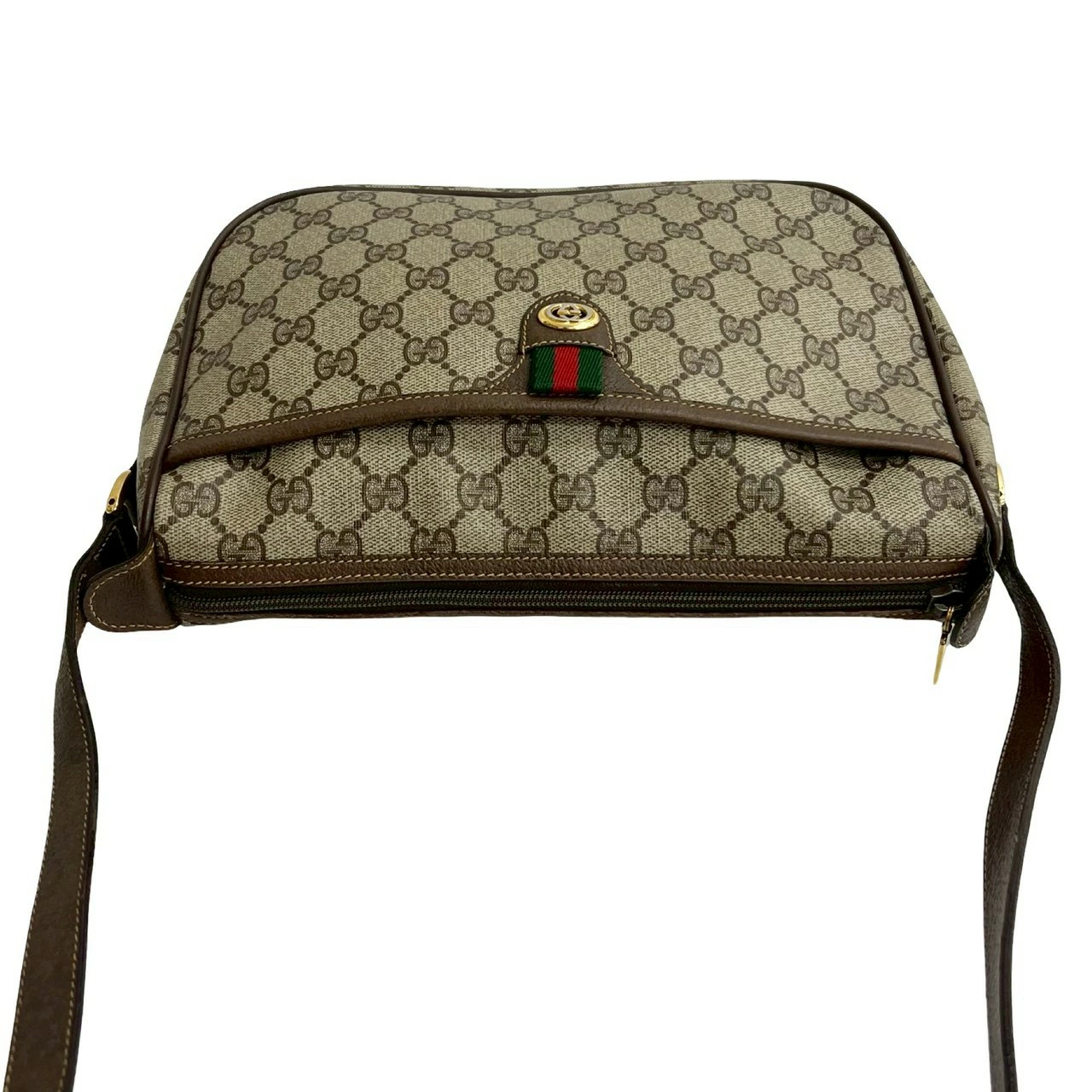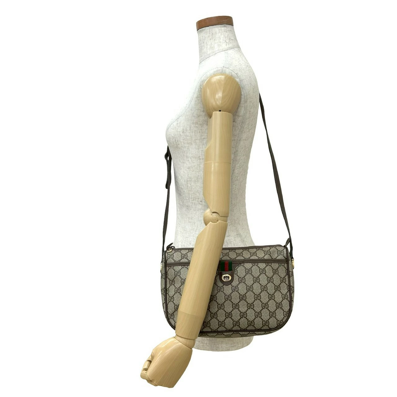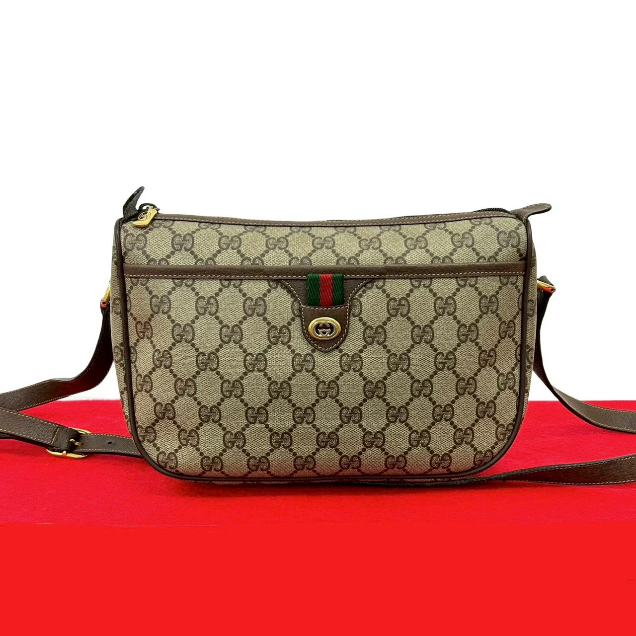 Earn double points! Excellent condition GUCCI vintage Sherry line GG logo hardware leather shoulder bag/pouch in brown (26996) [Pre-owned]