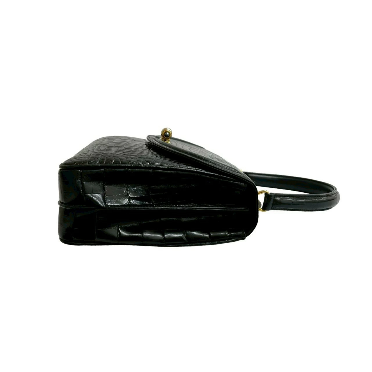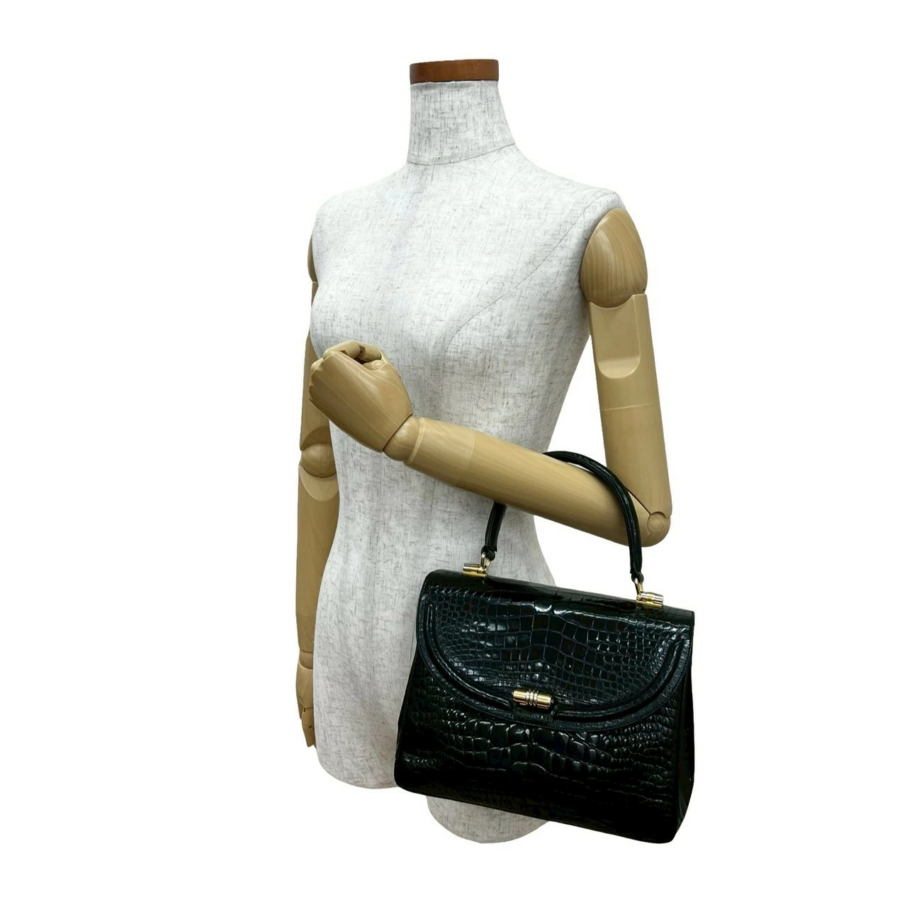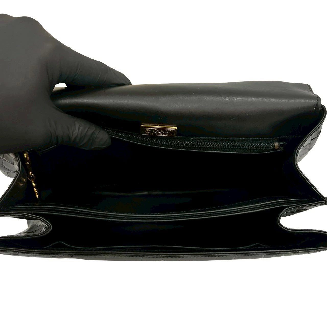 Excellent condition GUCCI vintage turnlock hardware crocodile-embossed genuine leather handbag in black (product number 38216) [pre-owned]