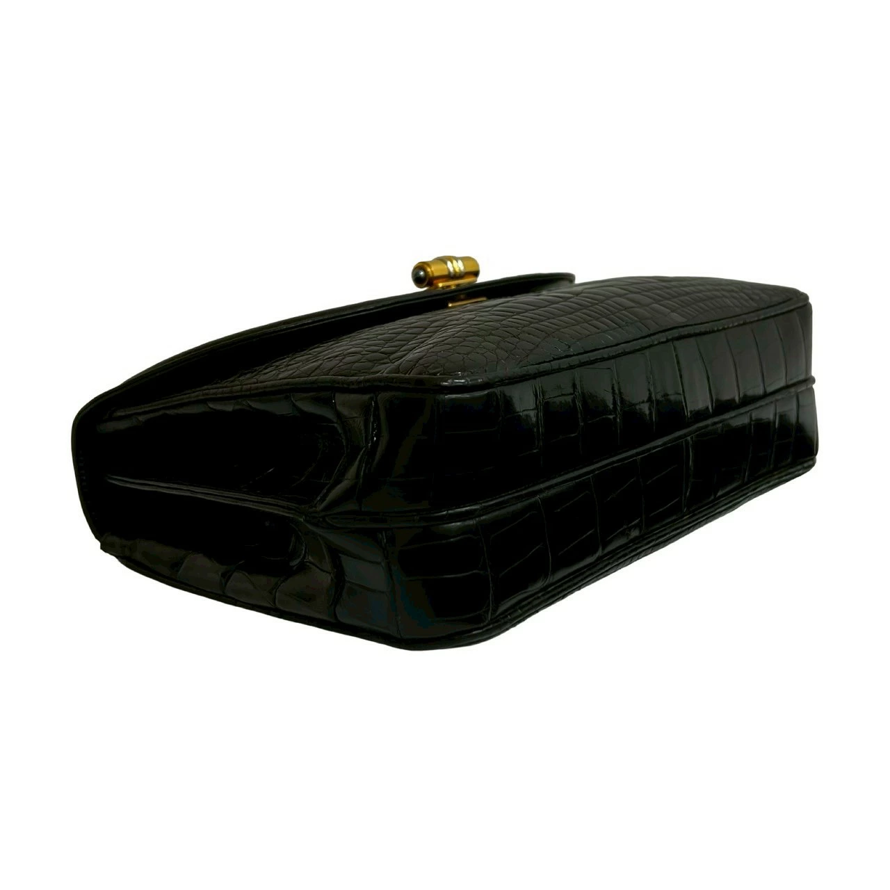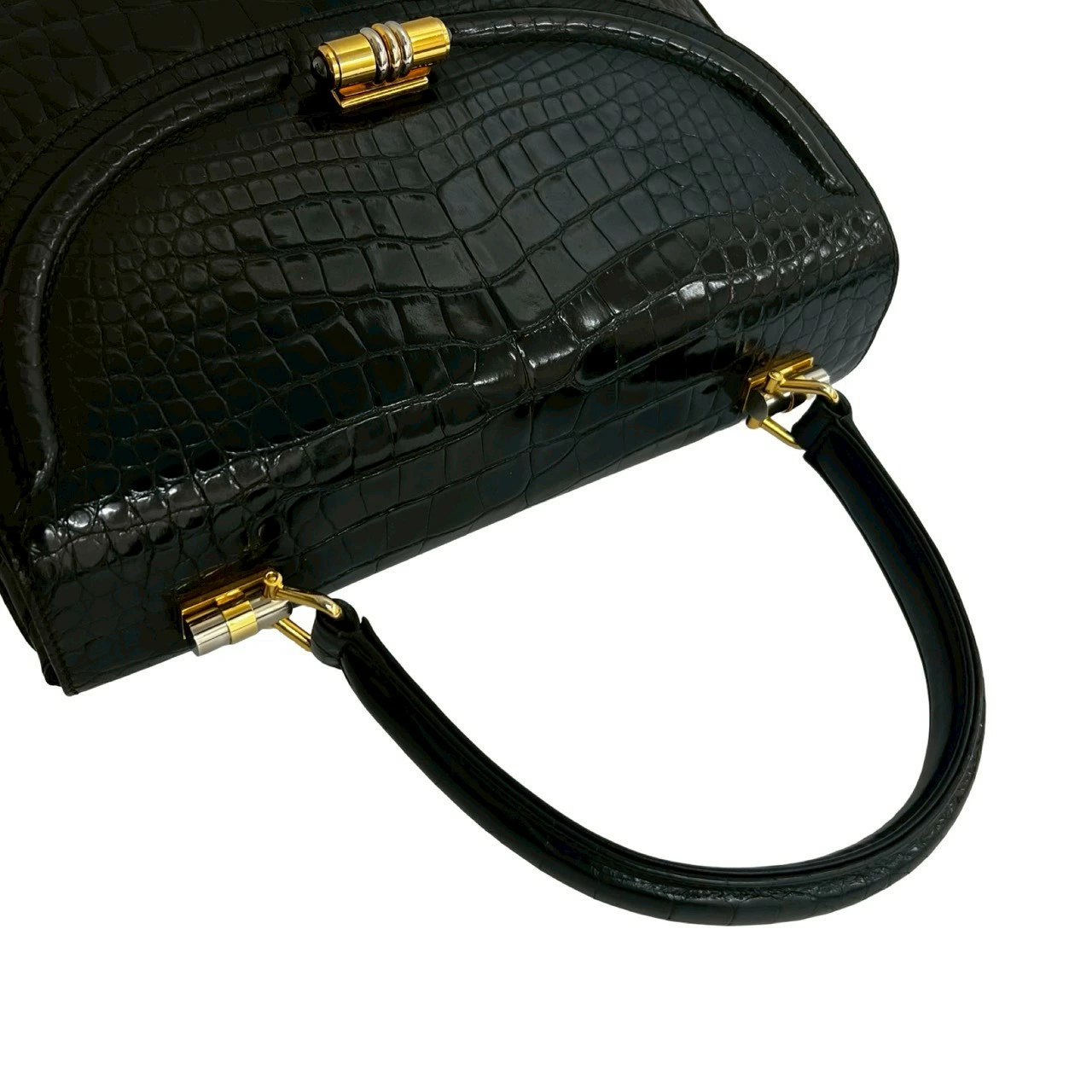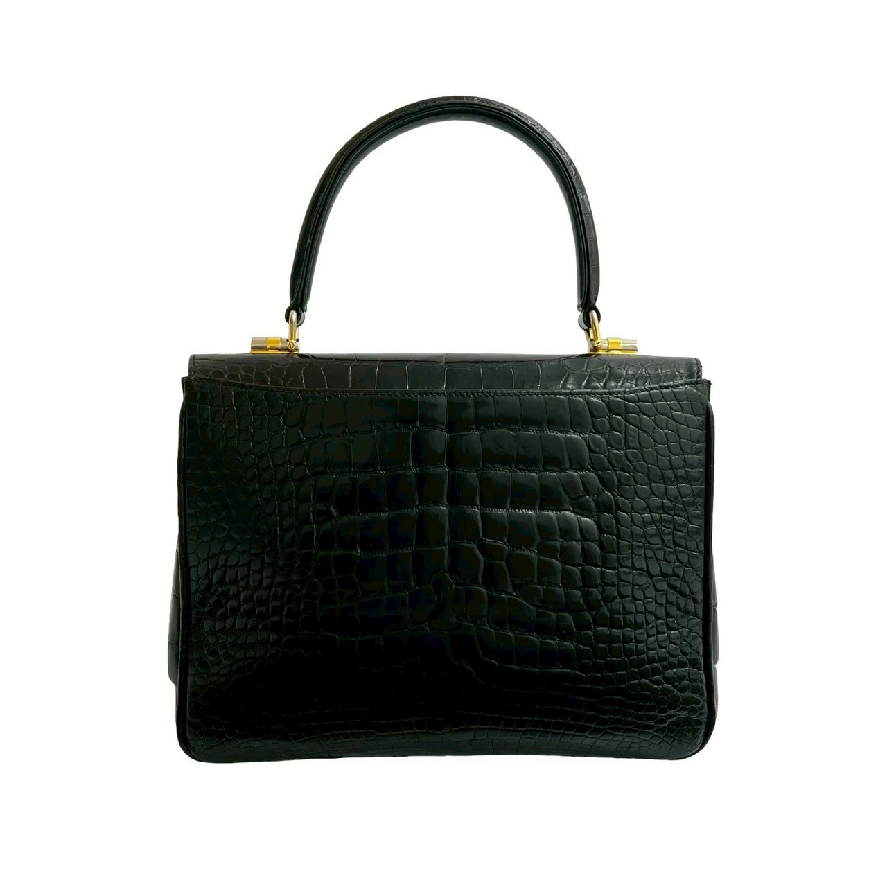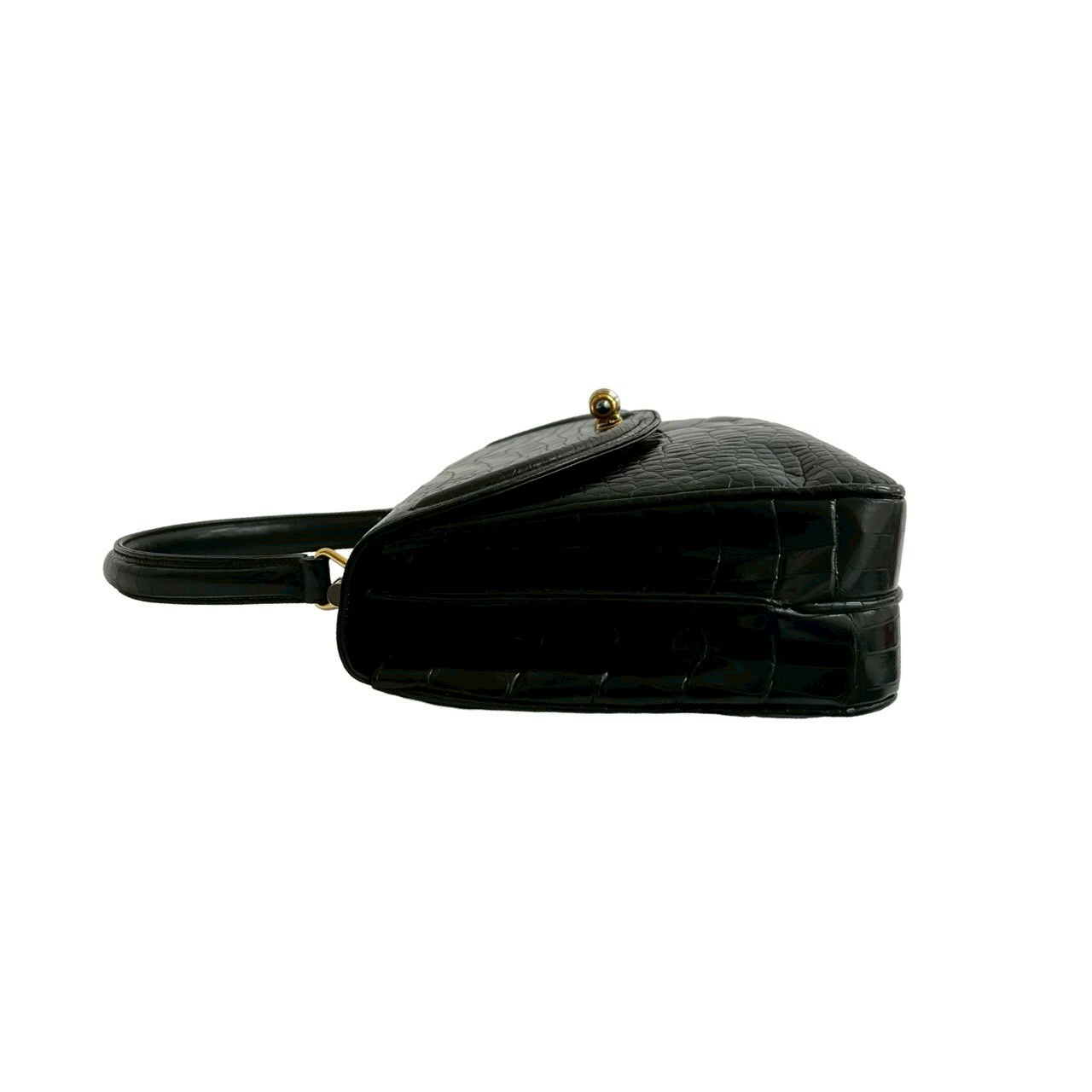 Excellent condition GUCCI vintage turnlock hardware crocodile-embossed genuine leather handbag in black (product number 38216) [pre-owned]
