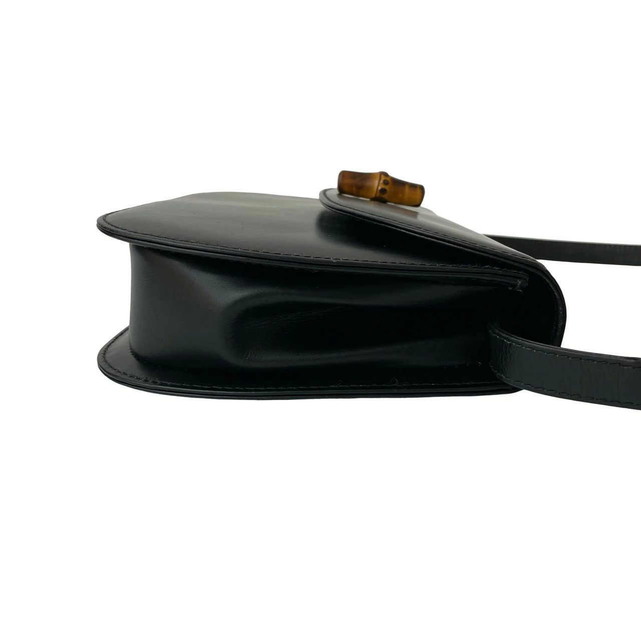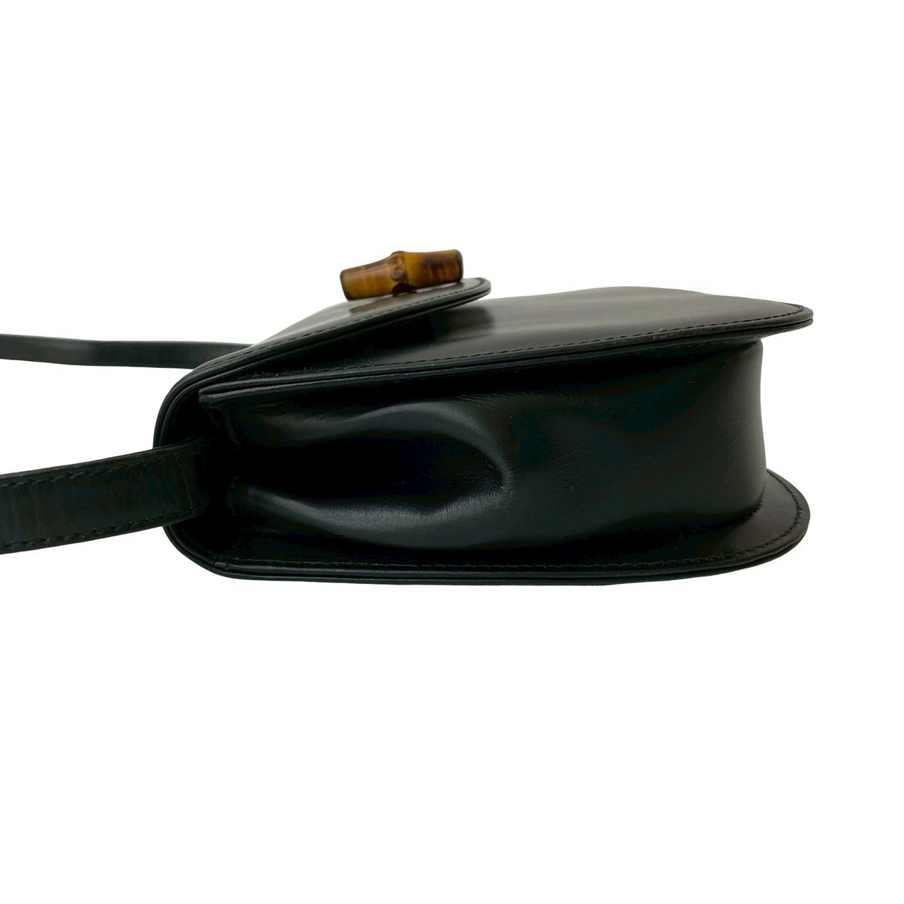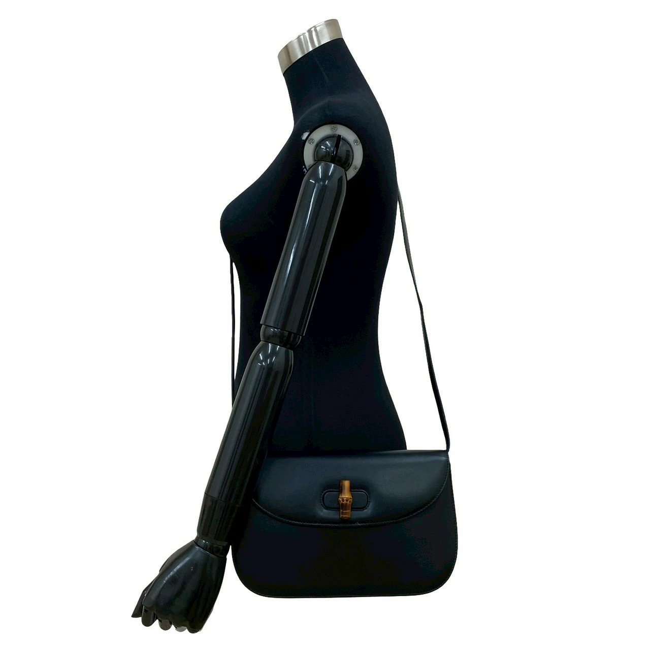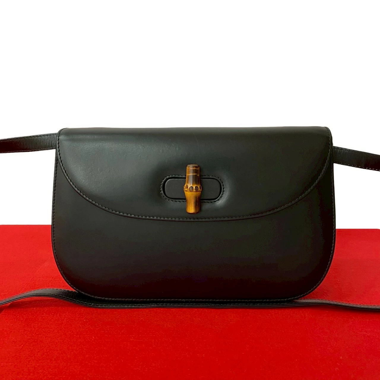 Earn double points! Excellent condition GUCCI vintage bamboo turnlock bamboo leather shoulder bag/pouch in black (24869) [pre-owned]