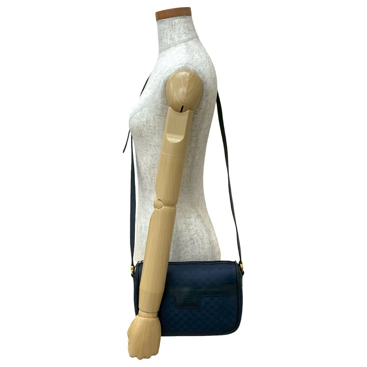 Excellent condition GUCCI vintage micro GG logo leather shoulder bag/pouch in navy and black (29502) [pre-owned]