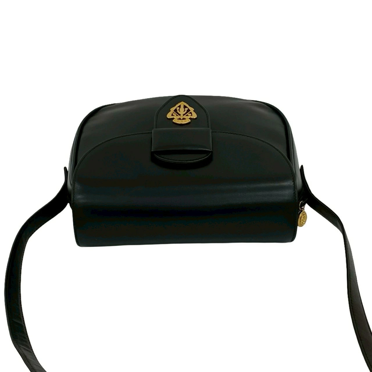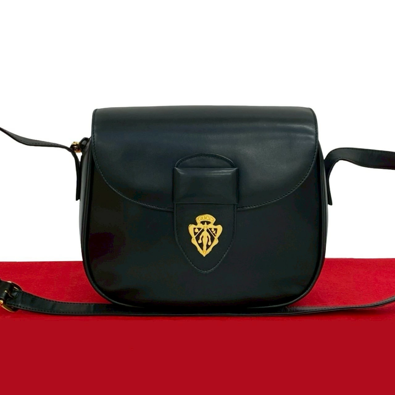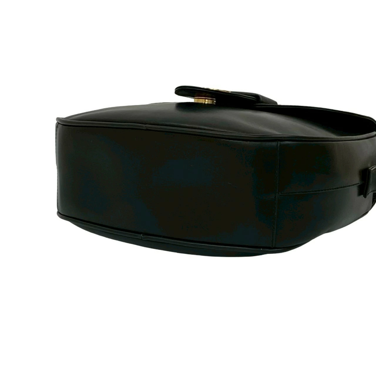 Excellent condition GUCCI vintage Gucci logo hardware calfskin leather shoulder bag/pouch in black (24029) [pre-owned]
