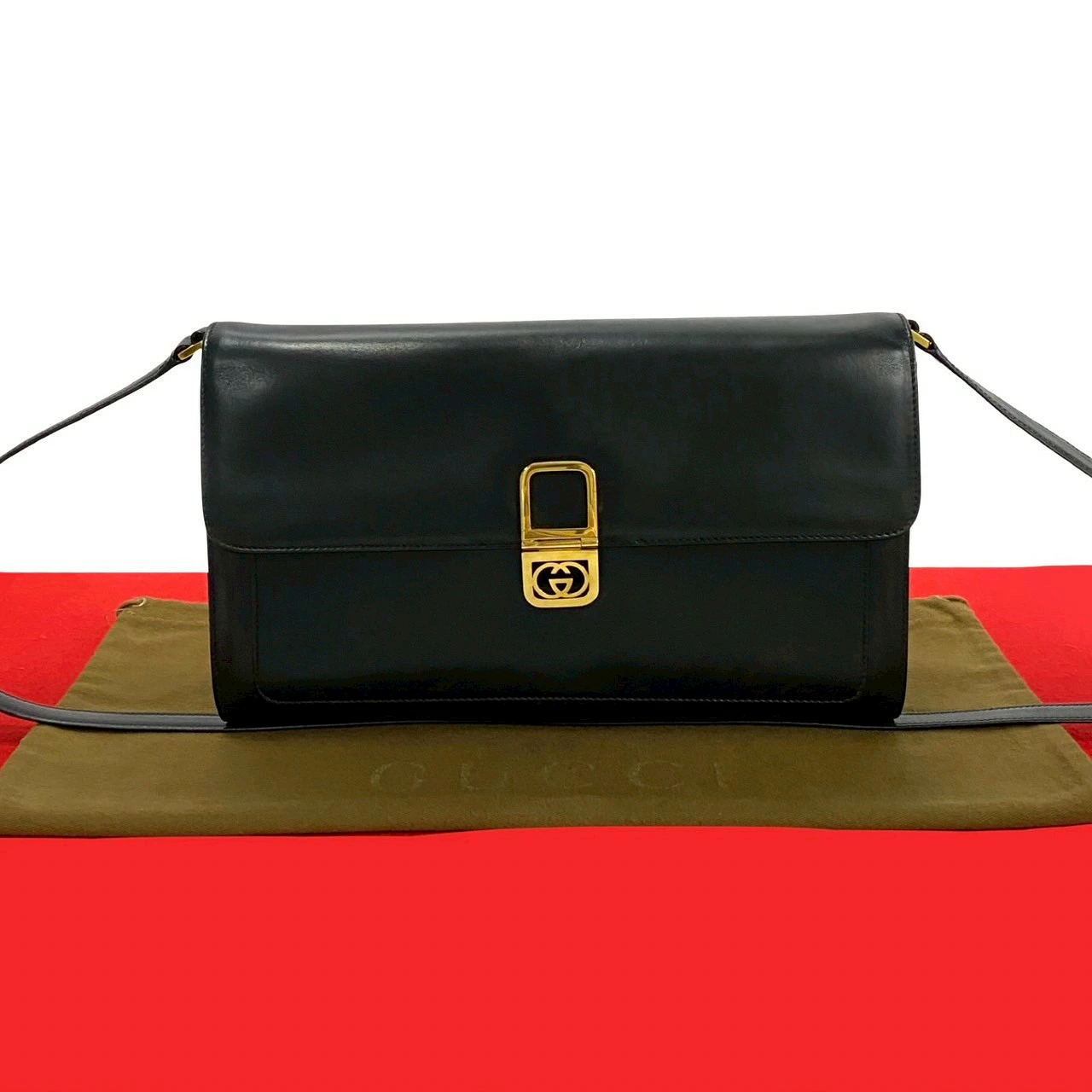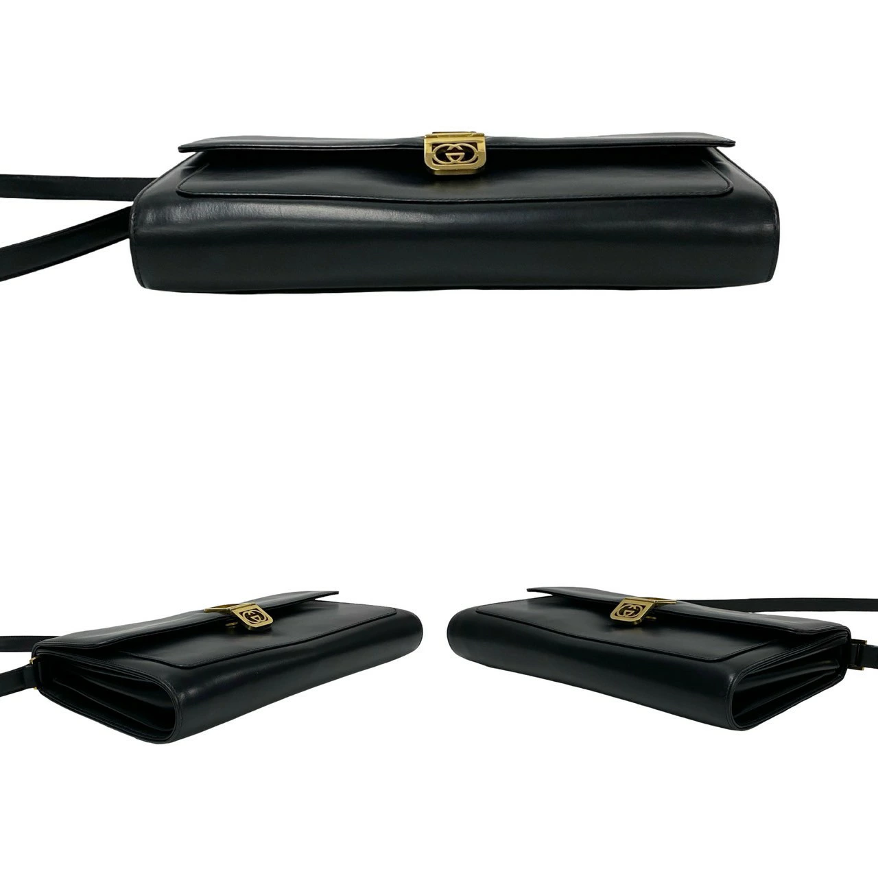 Earn double points! Excellent condition GUCCI vintage GG logo hardware leather shoulder bag/clutch bag in black (product number 80100). Pre-owned.