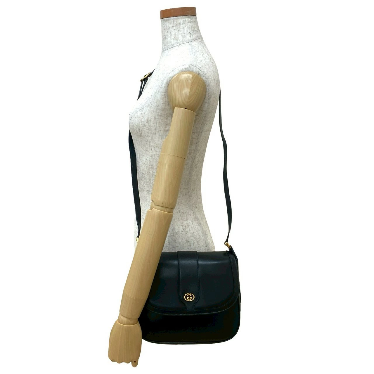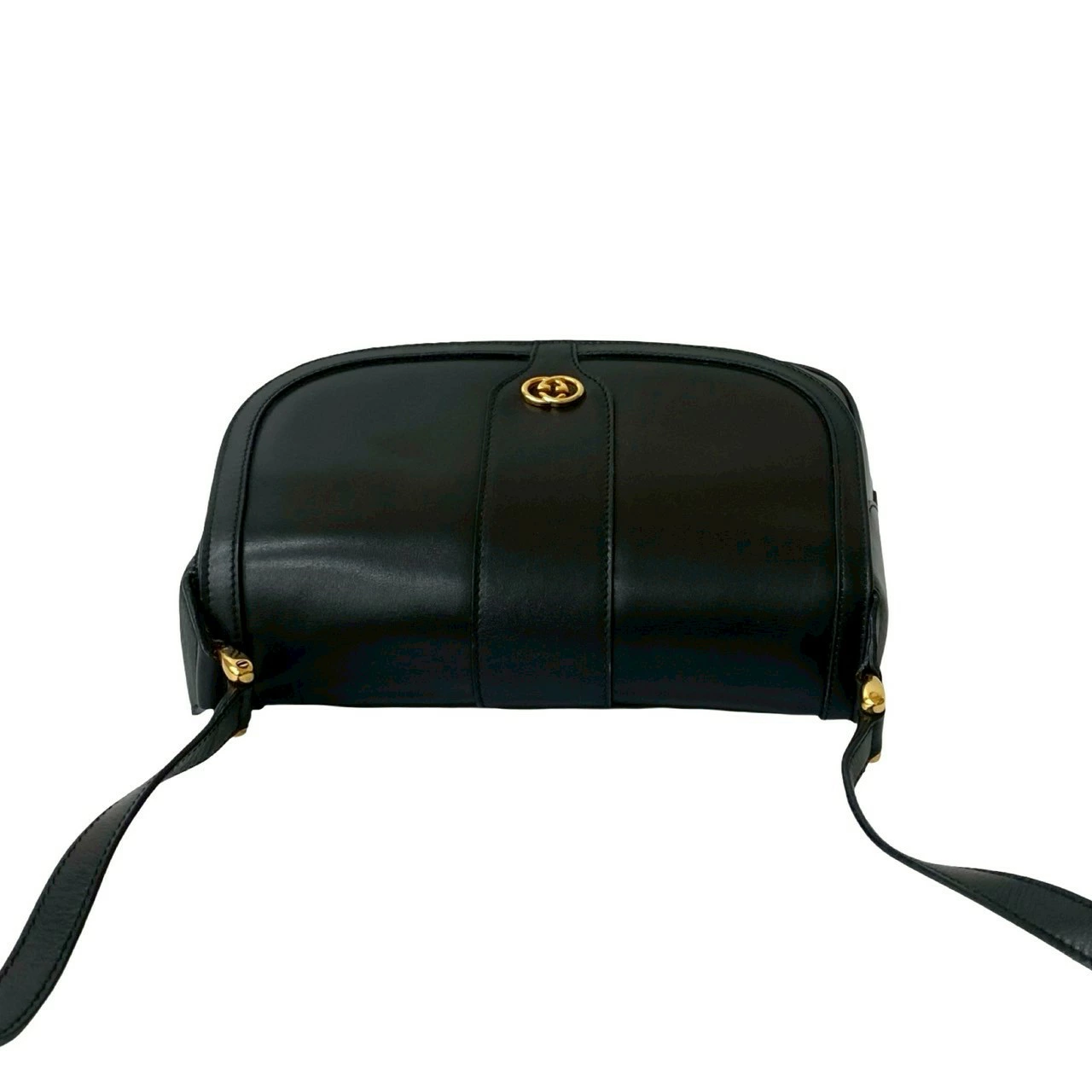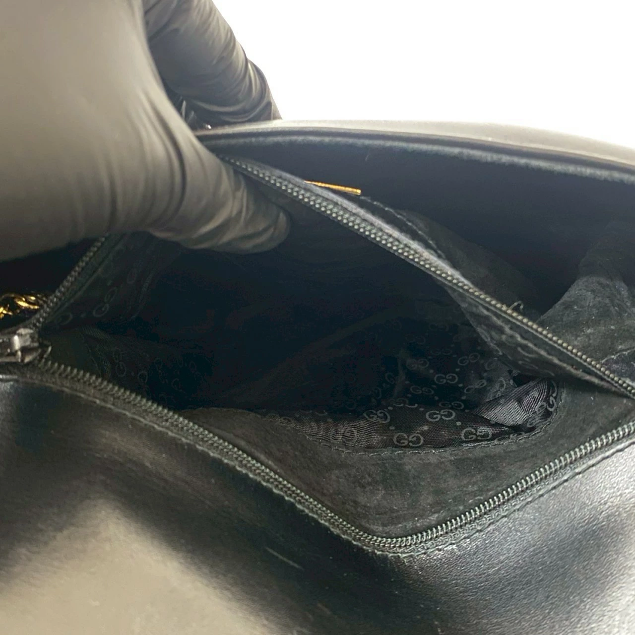 Earn double points! Excellent condition GUCCI vintage GG logo hardware leather shoulder bag/pouch/sacoche in black (19851) [Pre-owned]