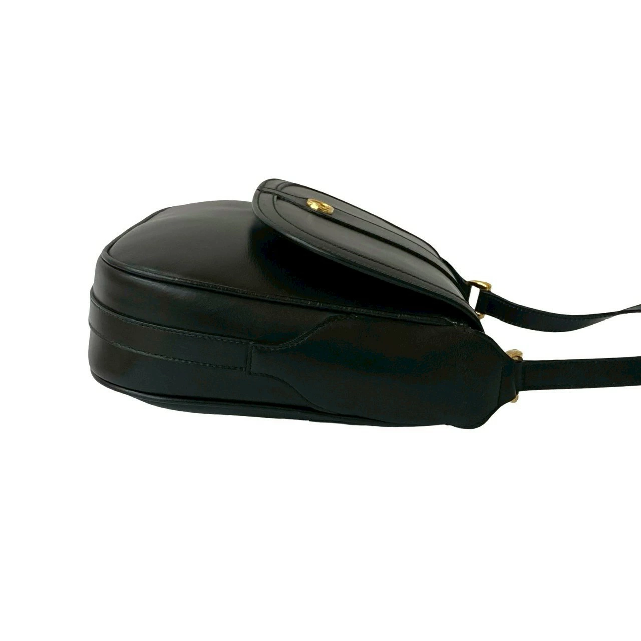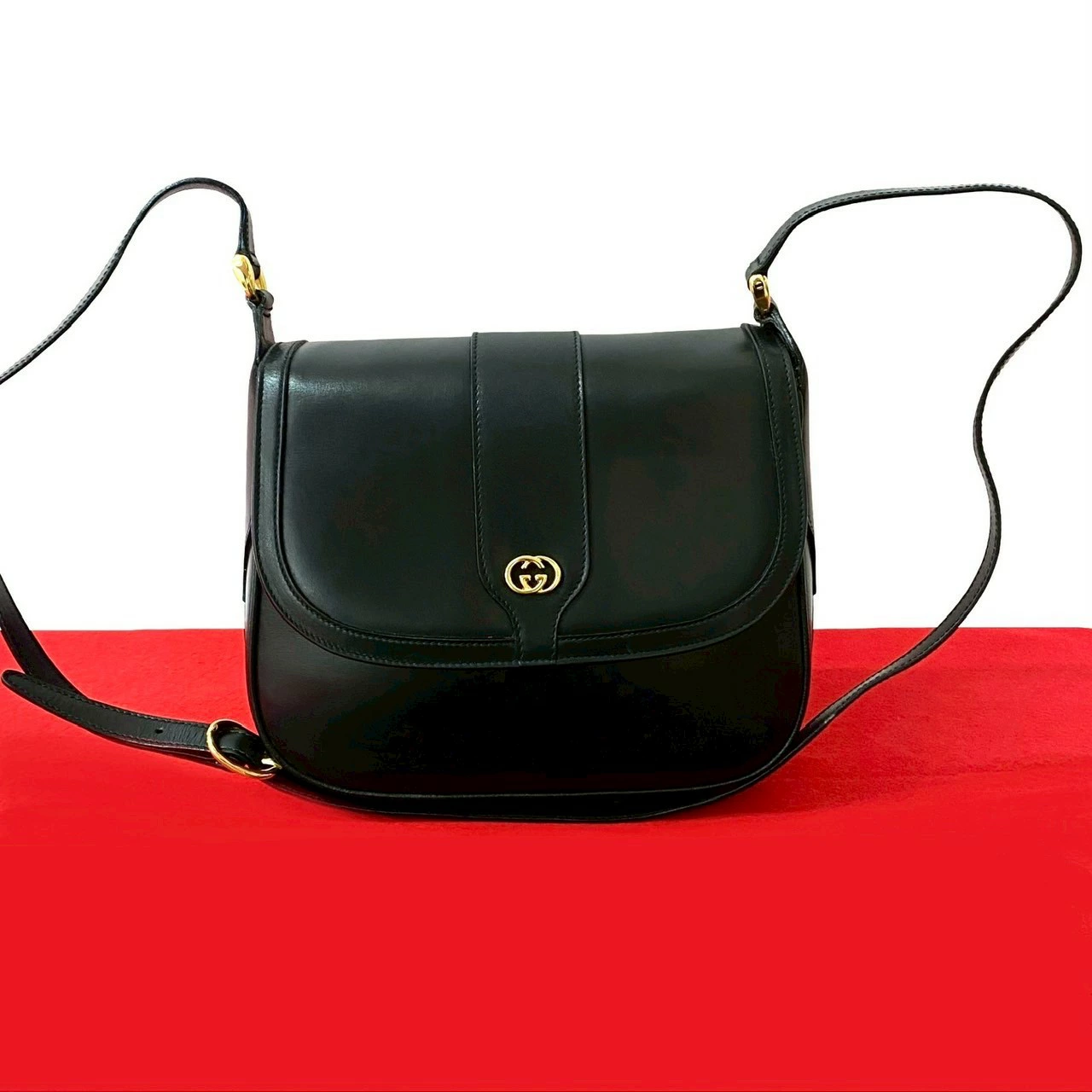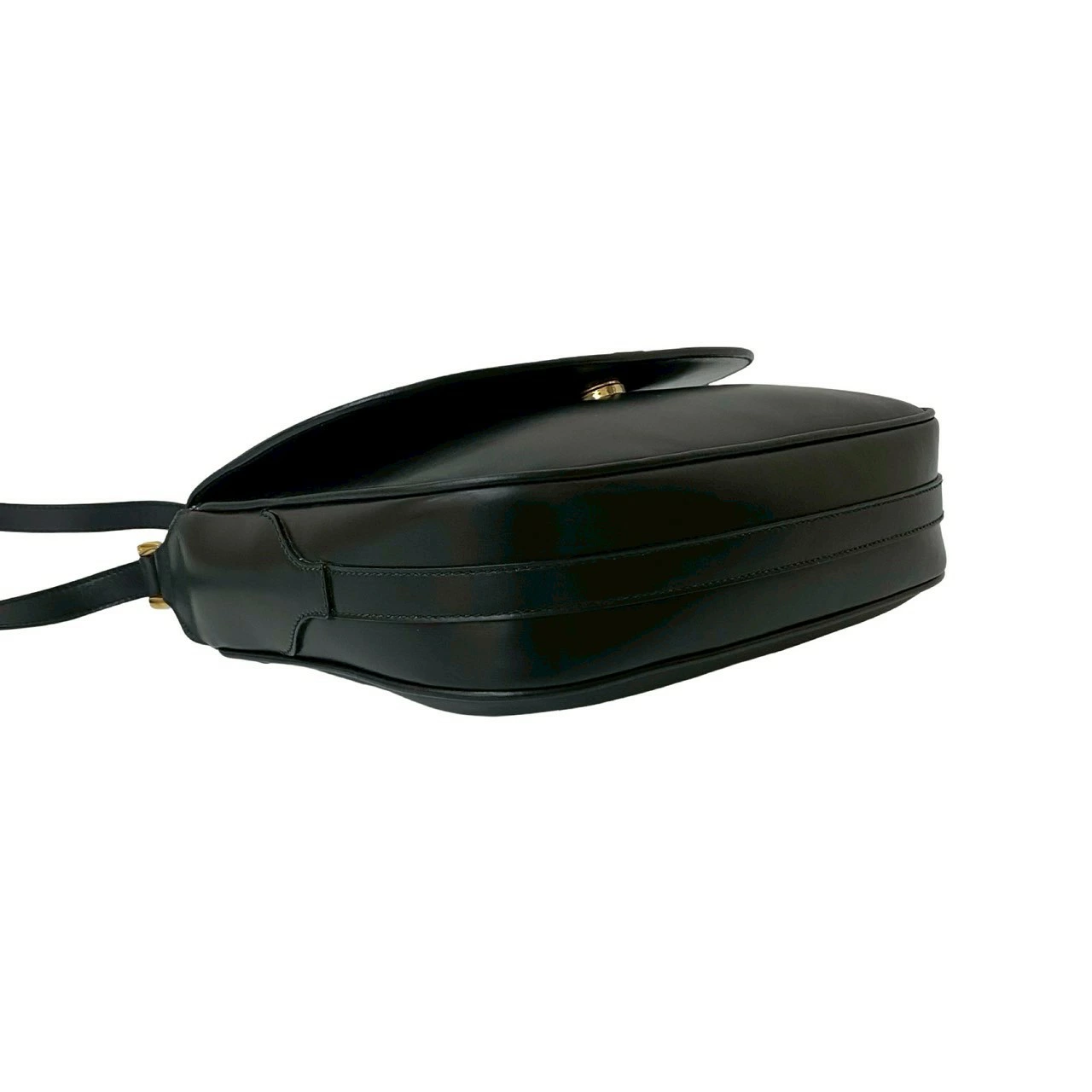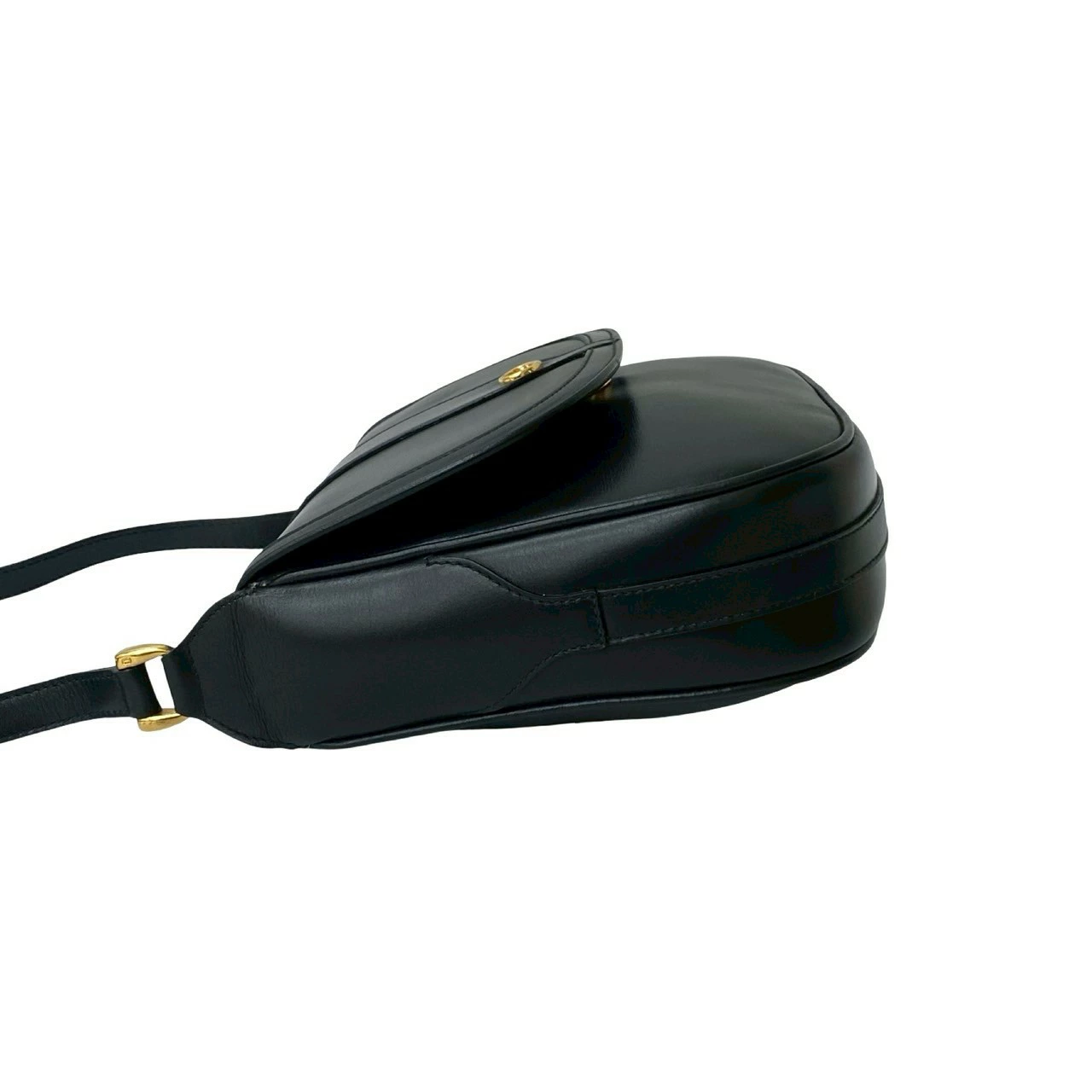 Earn double points! Excellent condition GUCCI vintage GG logo hardware leather shoulder bag/pouch/sacoche in black (19851) [Pre-owned]