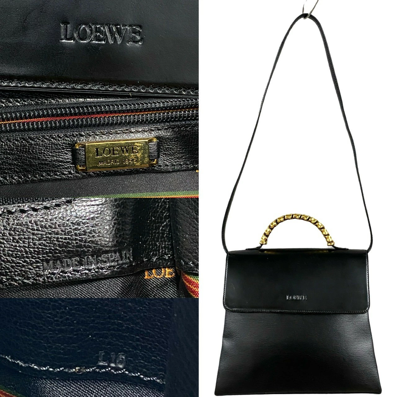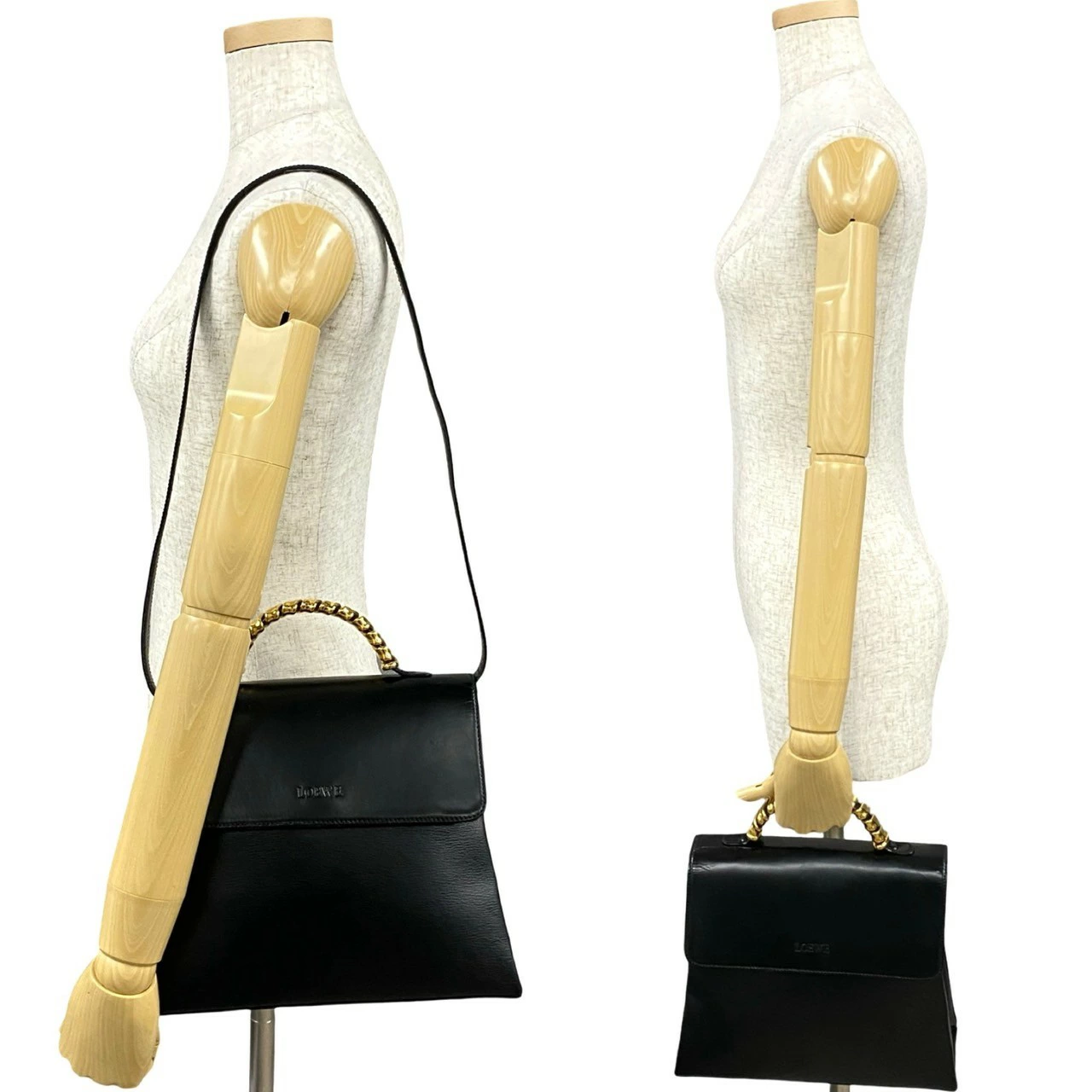 Excellent condition LOEWE Vintage Velázquez Twist Handle Leather 2-Way Handbag/Shoulder Bag, Black, 36398 (Pre-owned)
