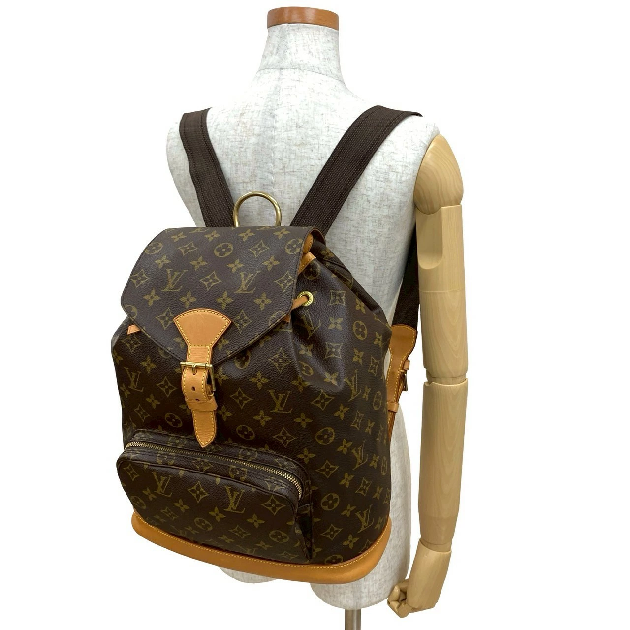 Excellent condition LOUIS VUITTON Vintage Montsouris Monogram Leather Drawstring Backpack/Daypack Brown 35242 [Pre-owned]