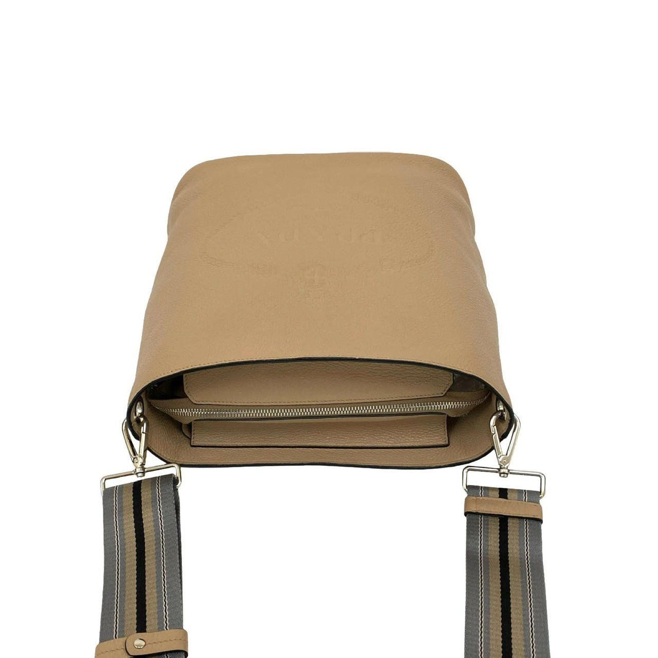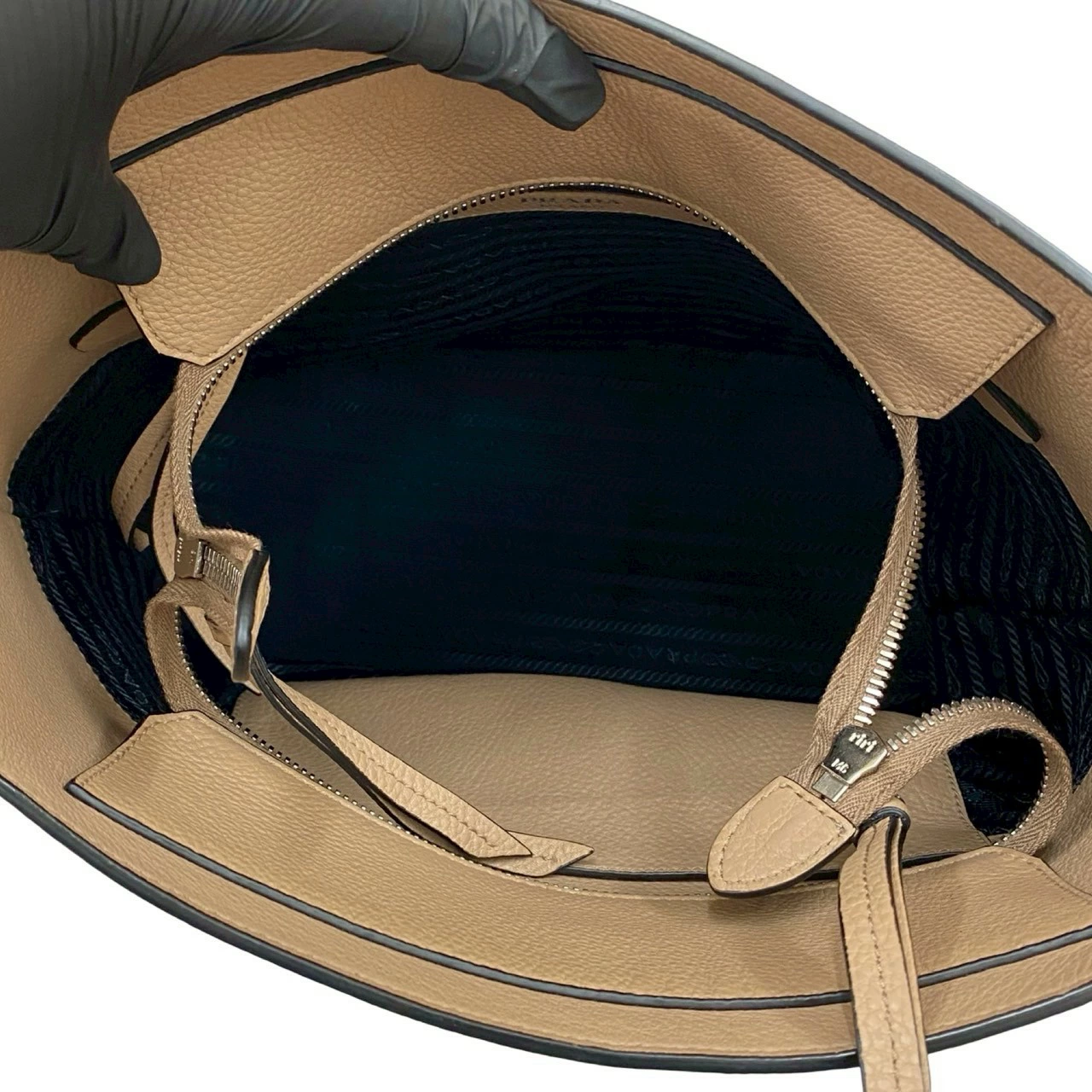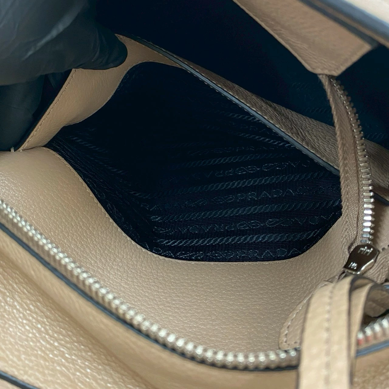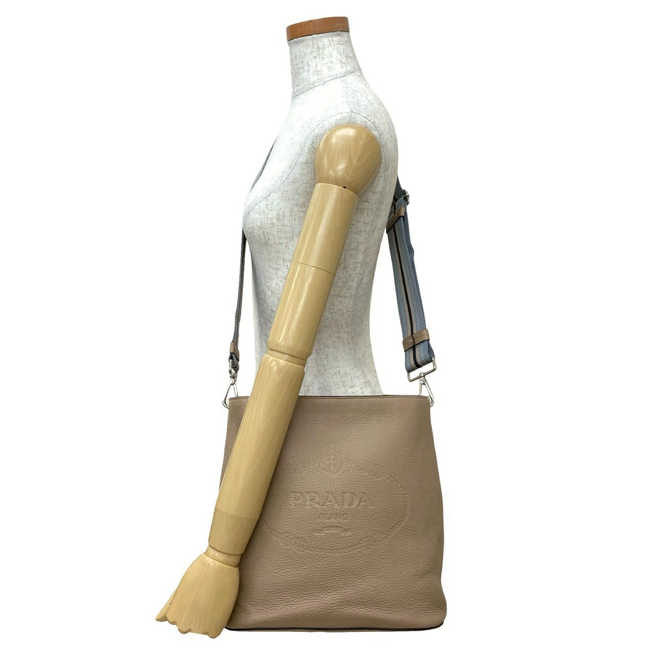 Excellent condition Prada logo-embossed Vitello Phoenix leather shoulder bag/sacoche/pouch in beige (product number 39599) [pre-owned]